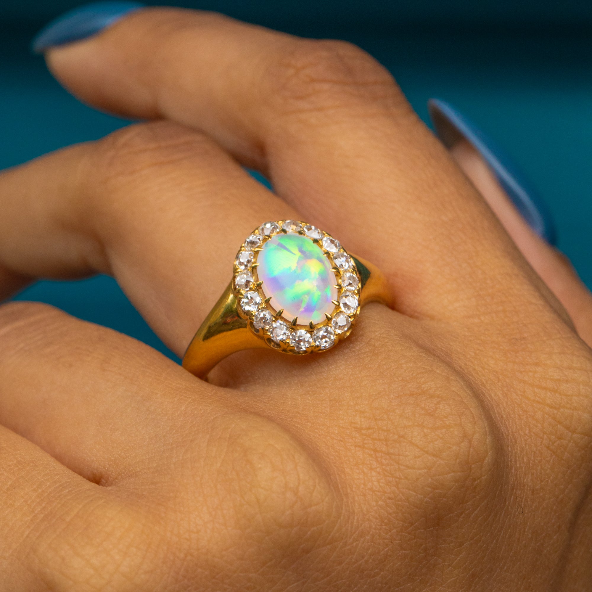 Antique 18ct Gold Opal Diamond Cluster Ring, 2.50ct Opal.