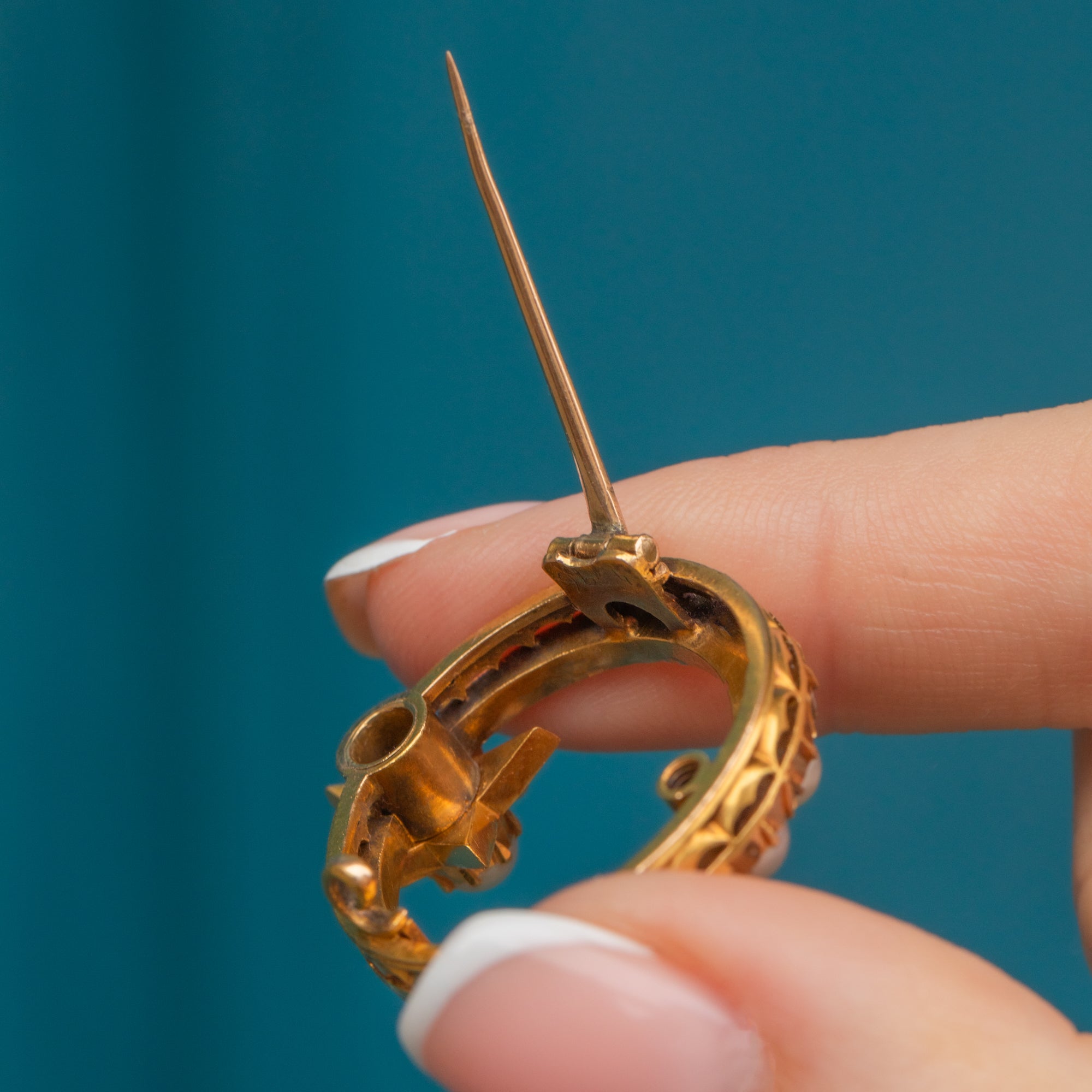 The perfect Victorian brooch for celestial lovers, crescent moons are historically symbolic of female empowerment, and the star is thought to provide a sense of direction. You simply cannot beat the combination of richly saturated 18ct Gold and creamy Pearls, and comes homed in her own perfectly fitted box allowing you to proudly display her on your dressing table!