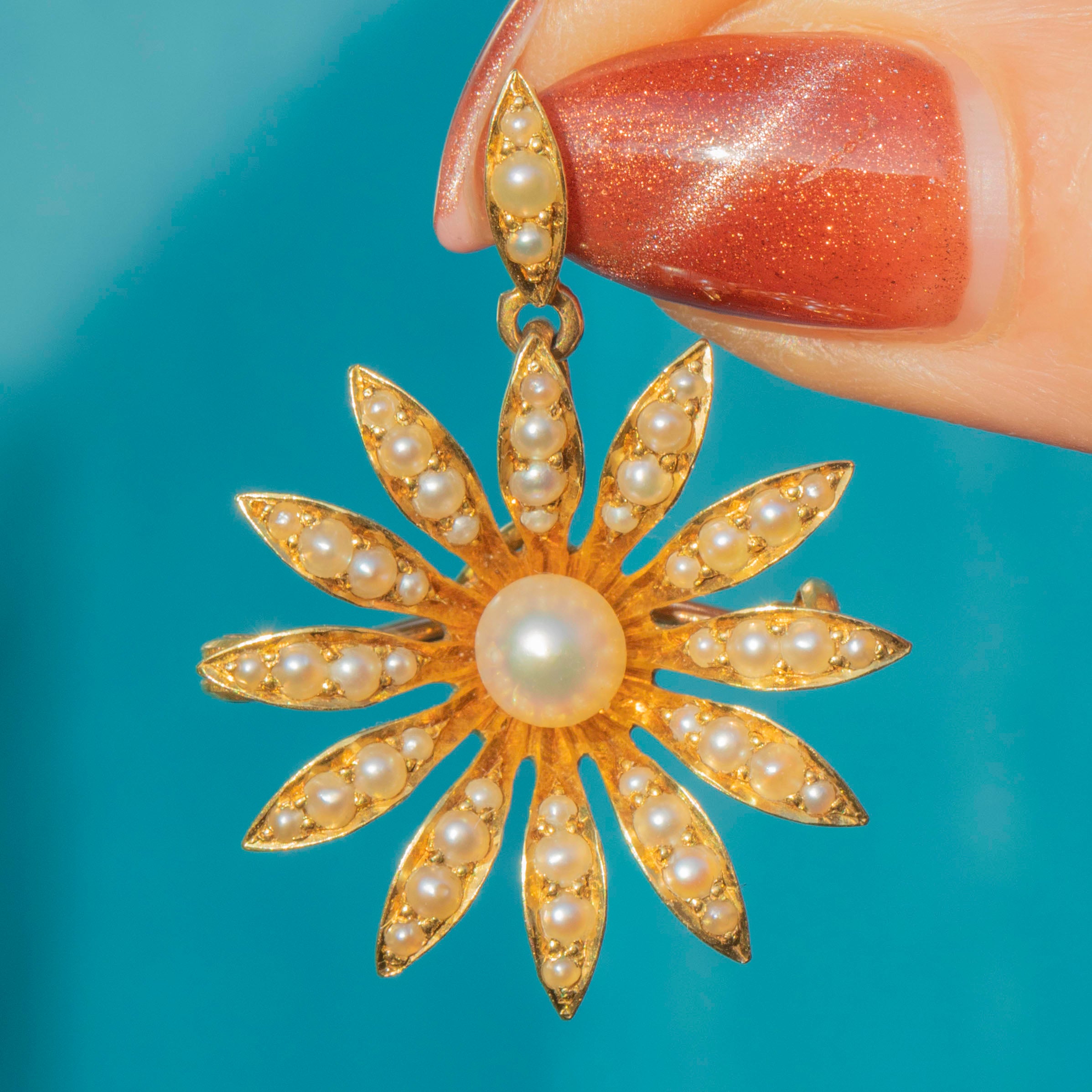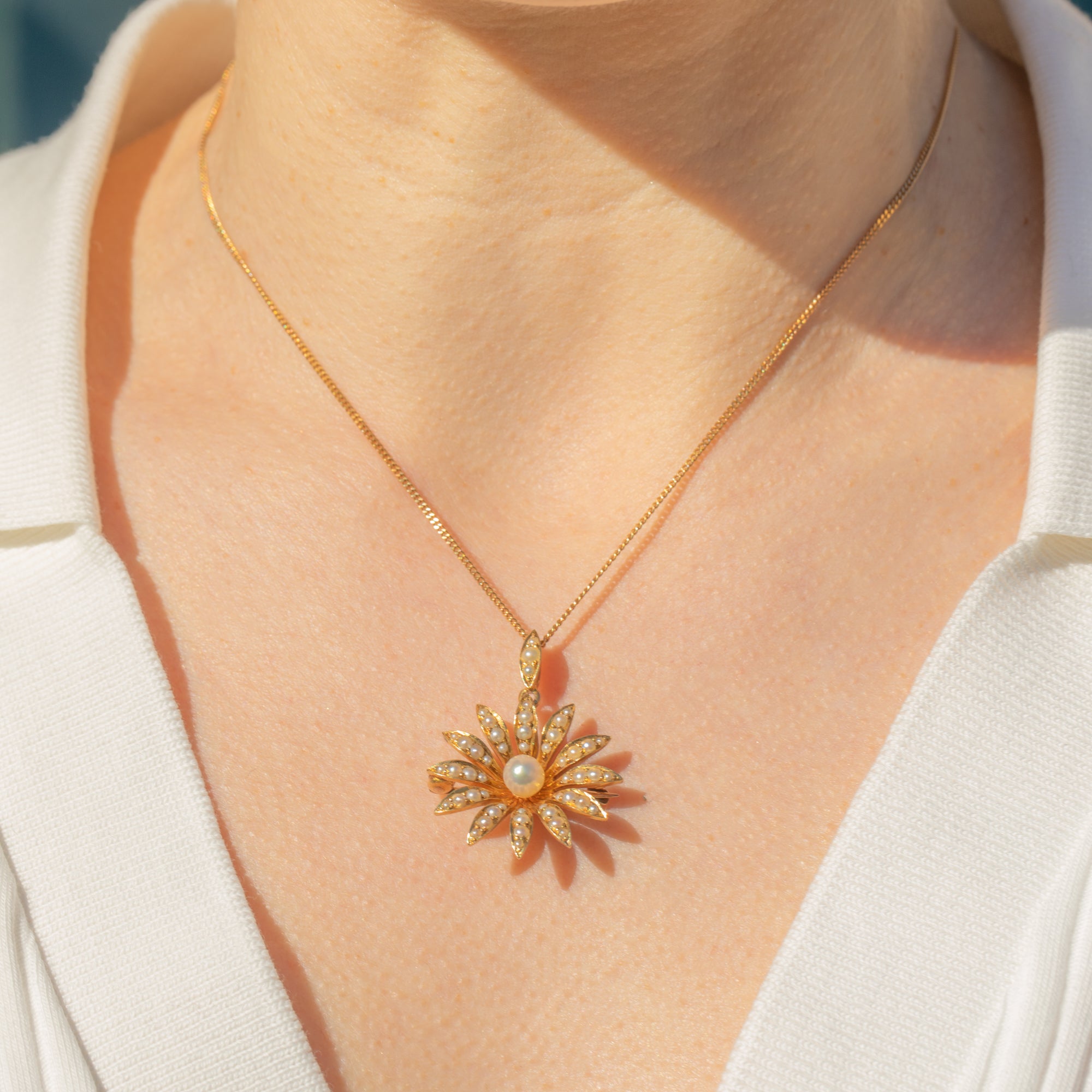 Antique 18ct Gold Pearl Daisy Flower Pendant, Brooch Fittings