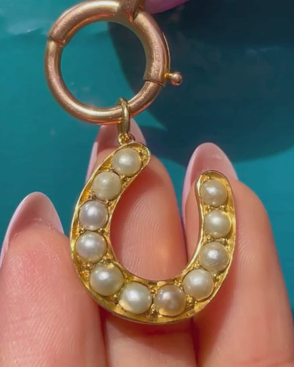Antique 18ct Gold Pearl Horseshoe Pendant