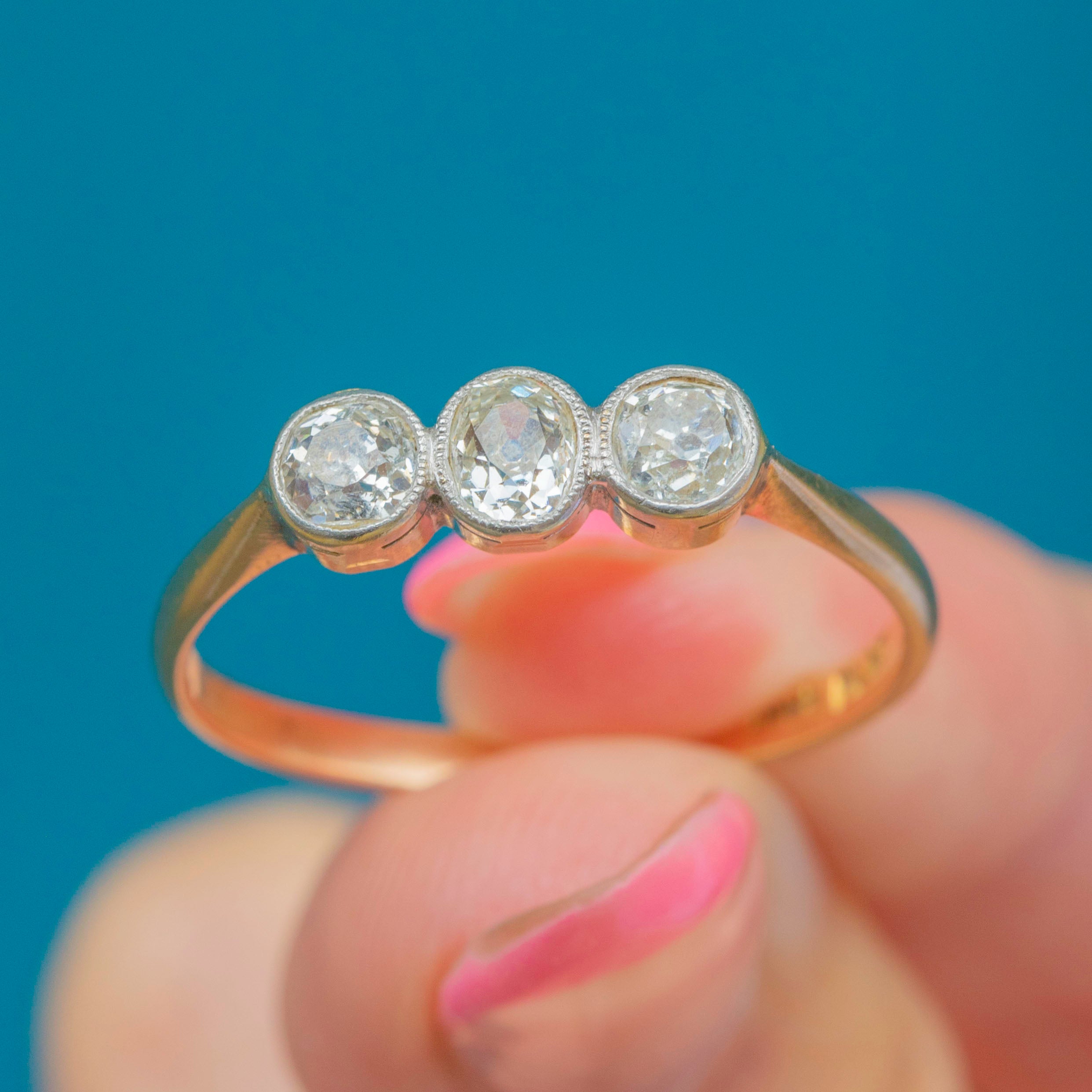 Antique 18ct Gold & Platinum Bezel-Set Old Mine Cut Diamond Trilogy Ring, 0.54ct Item added