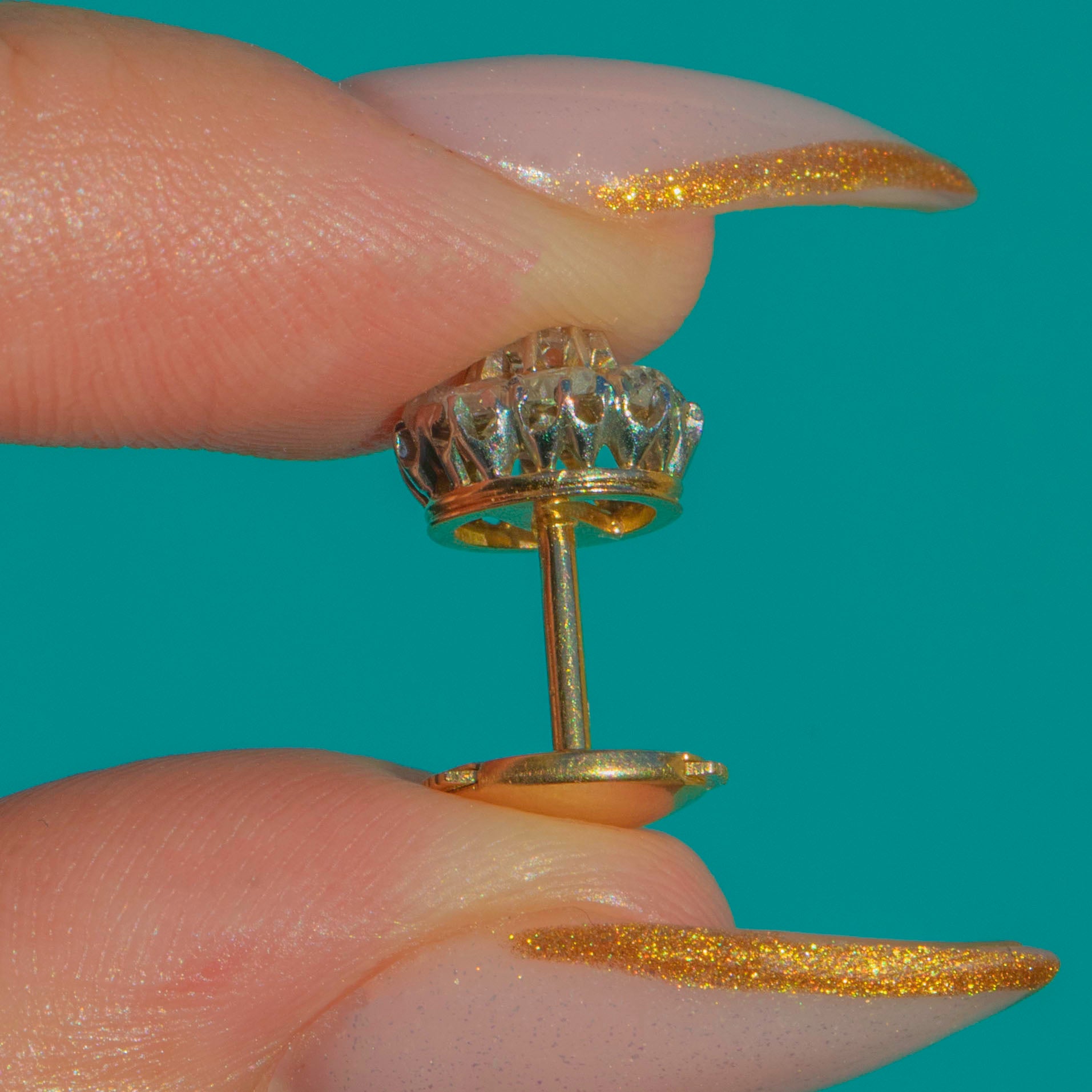 EXCELLENT: The rose-cut Diamonds are bright, lively and securely set with no noticeable chips or abrasions to the stones. The Gold settings and posts are smooth and comfortable with only light surface wear commensurate with age. The secure backs have been added later for modern wear, and the earrings remain in wonderful overall condition.