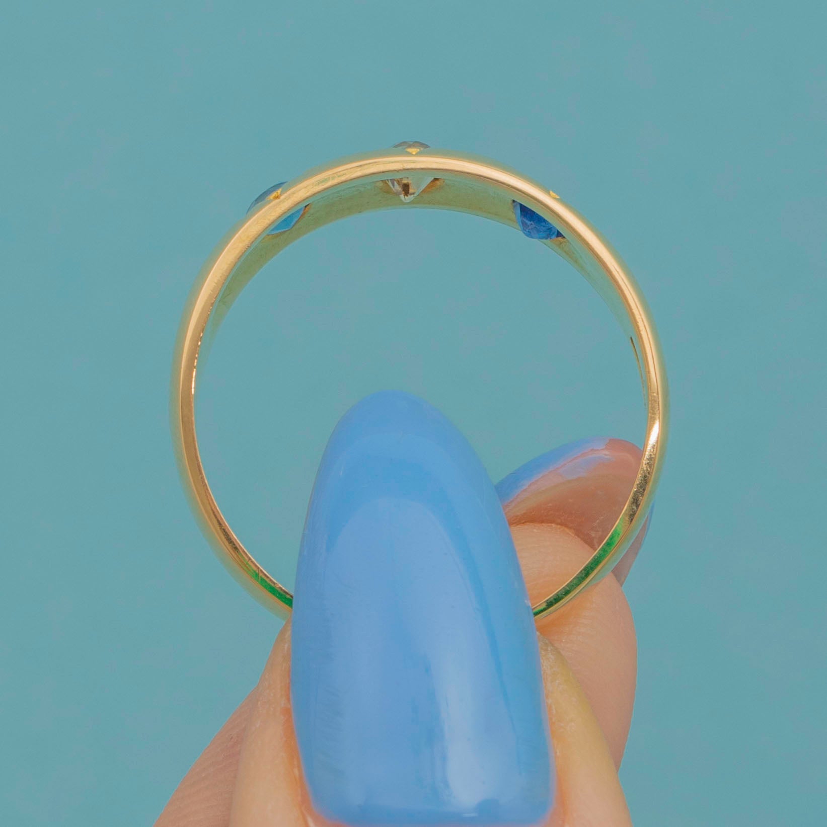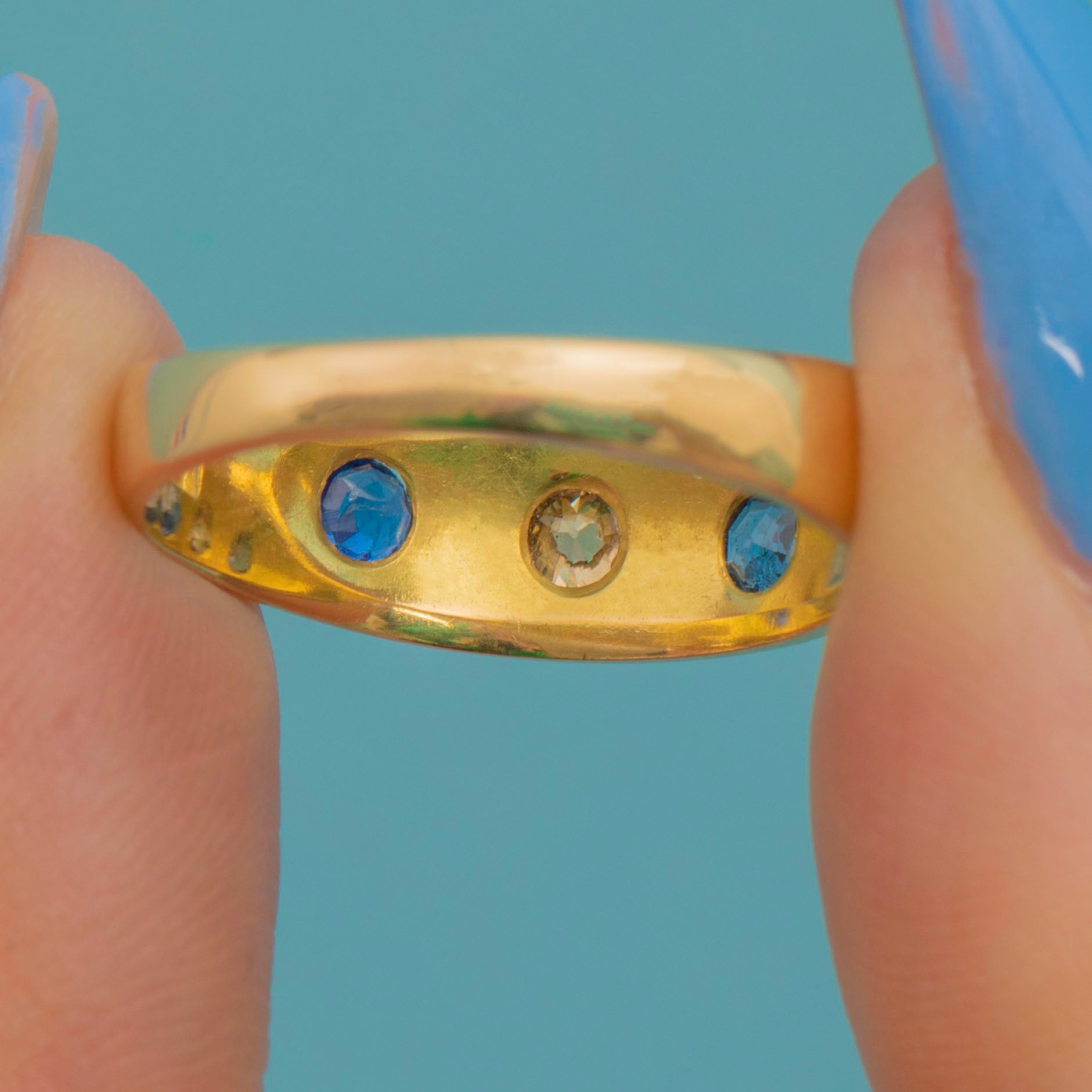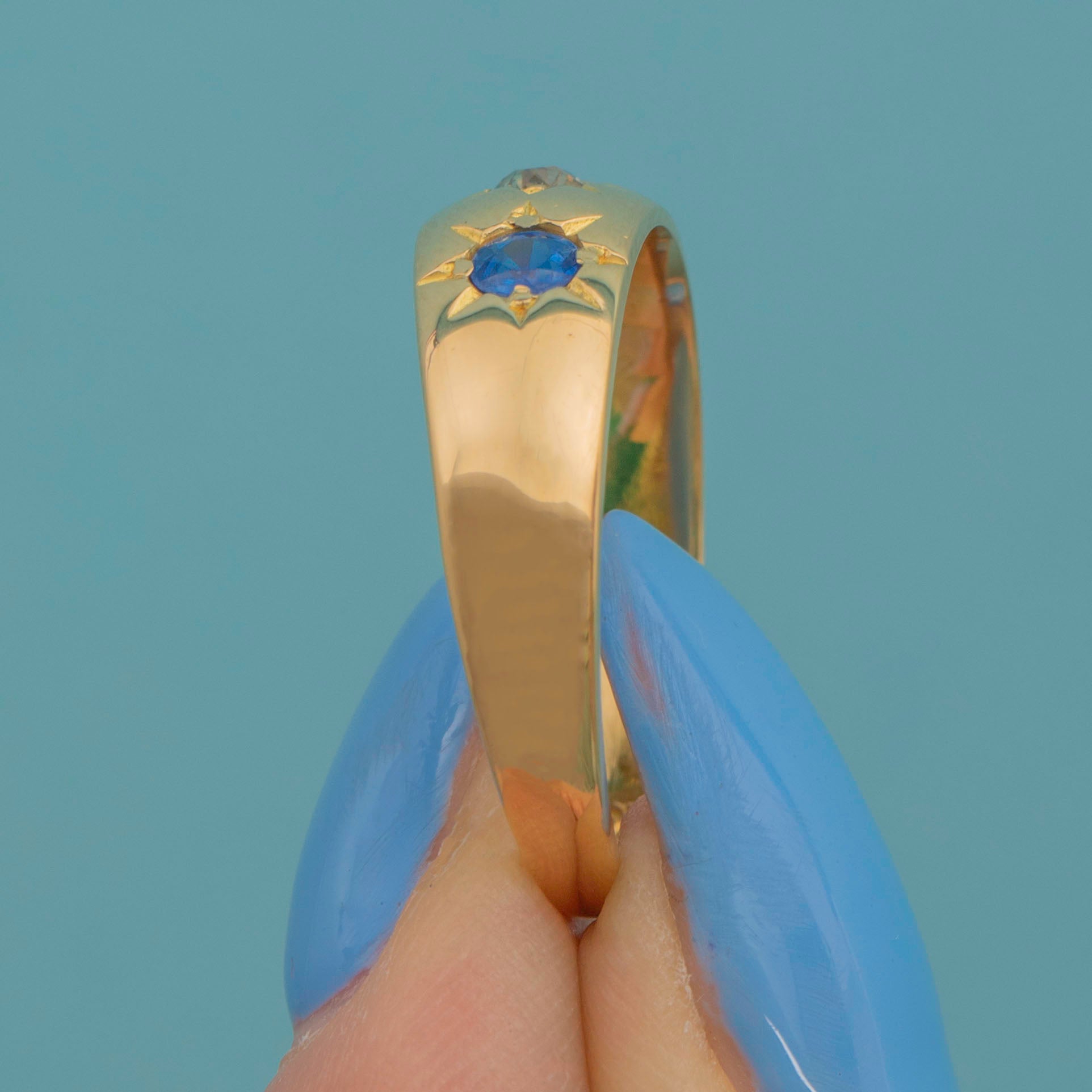 Antique 18ct Gold Sapphire Diamond Gypsy Ring, c.1915