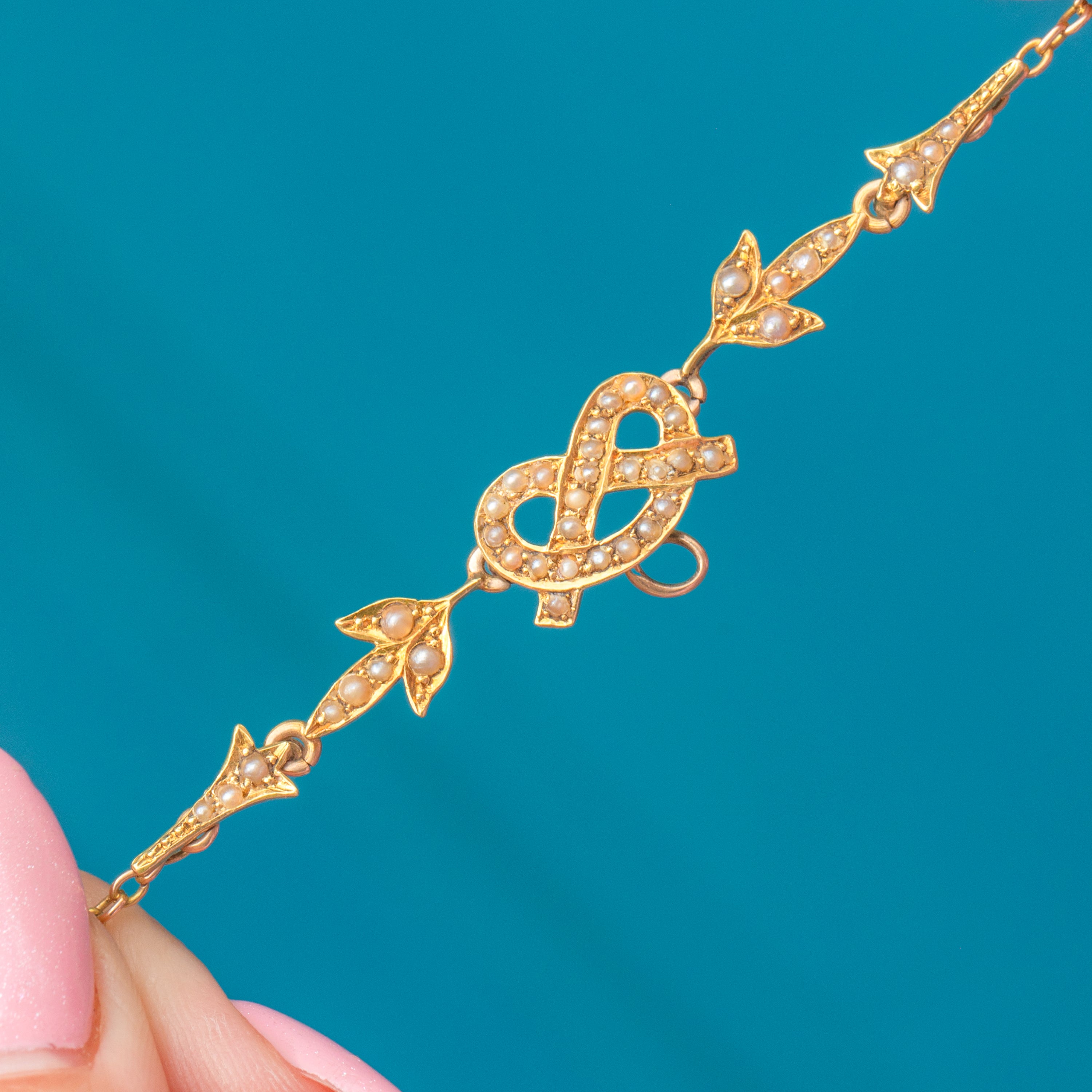 Antique 18ct Gold Seed Pearl Necklace, Detachable Pendant