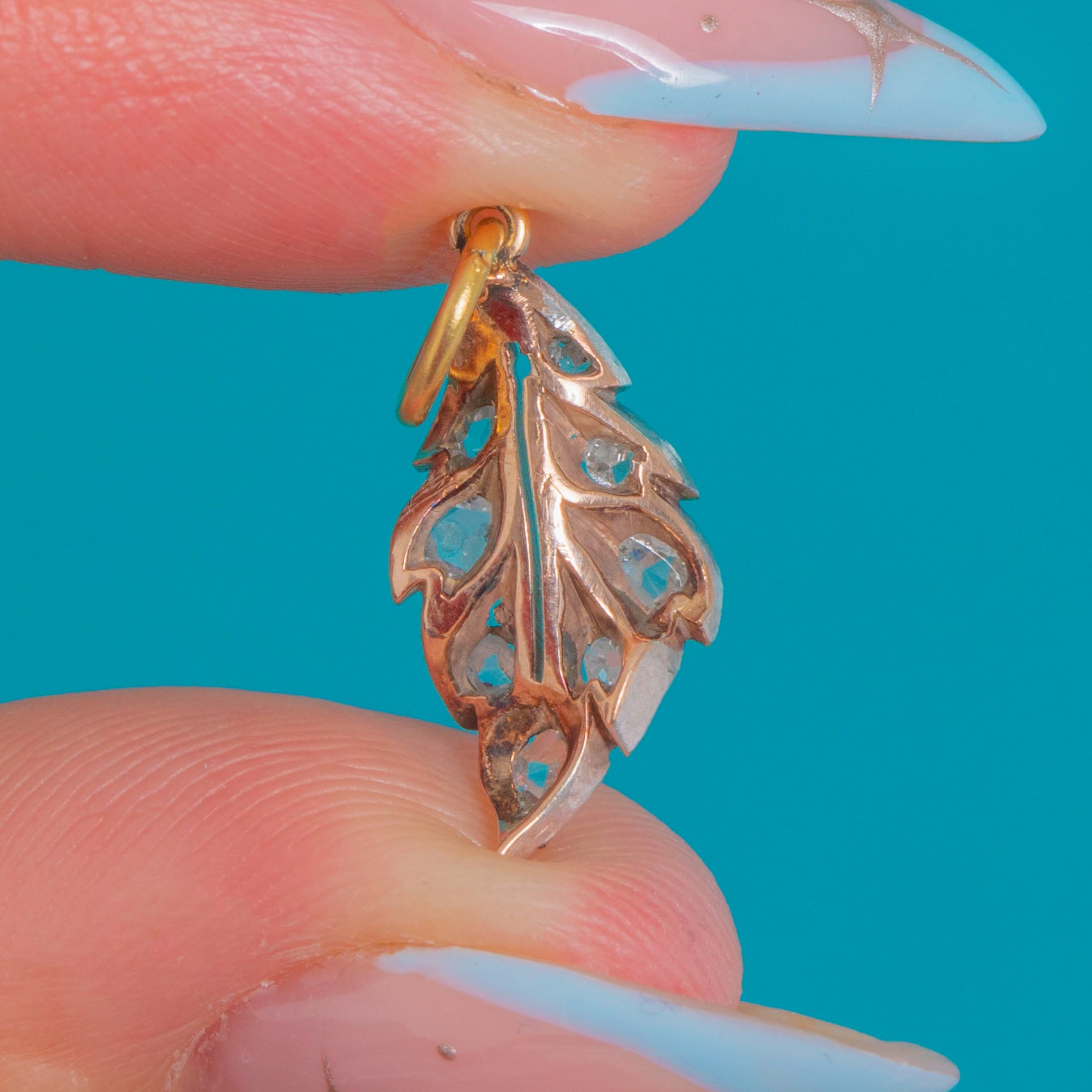 Antique 18ct Gold & Silver Rose-Cut Diamond Leaf Charm
