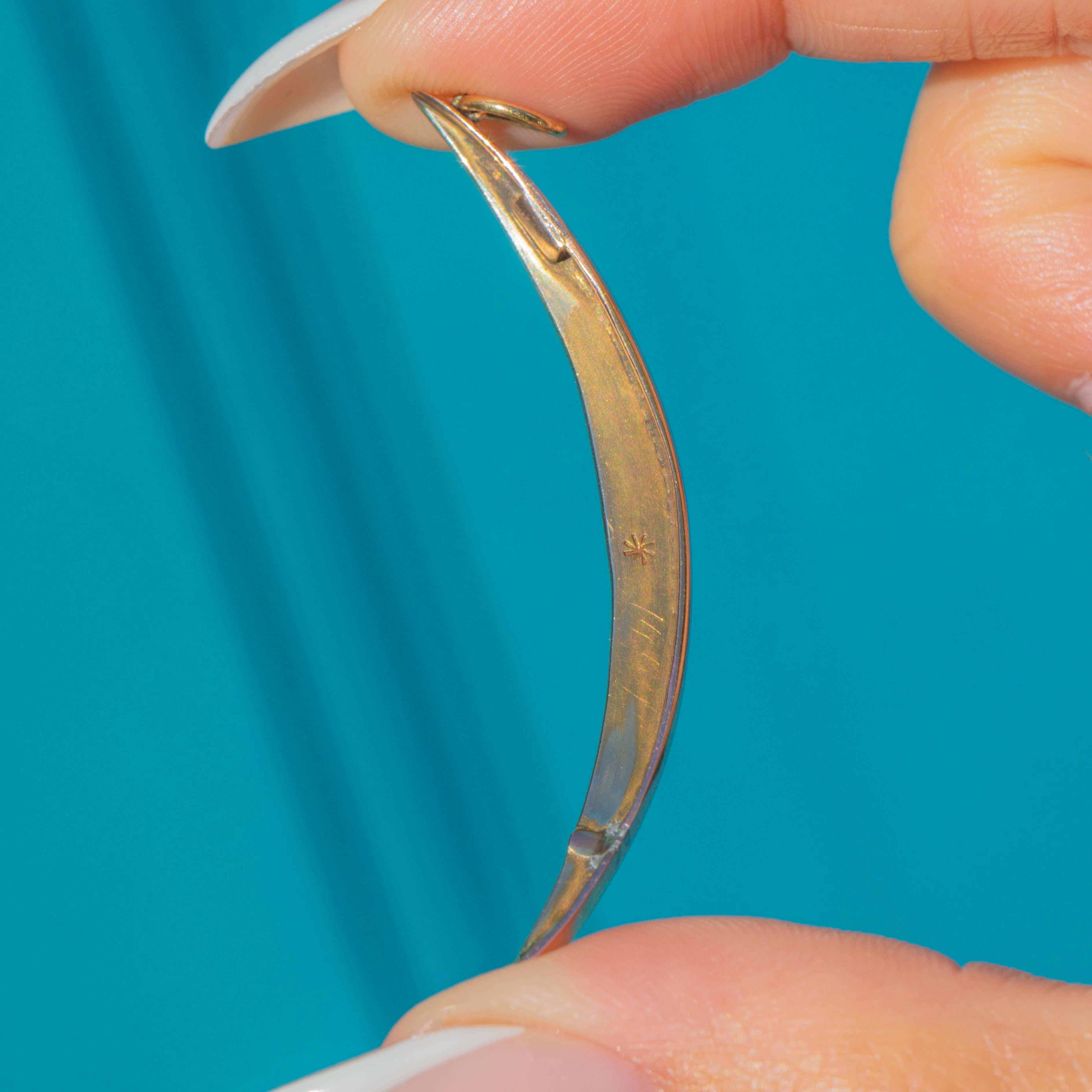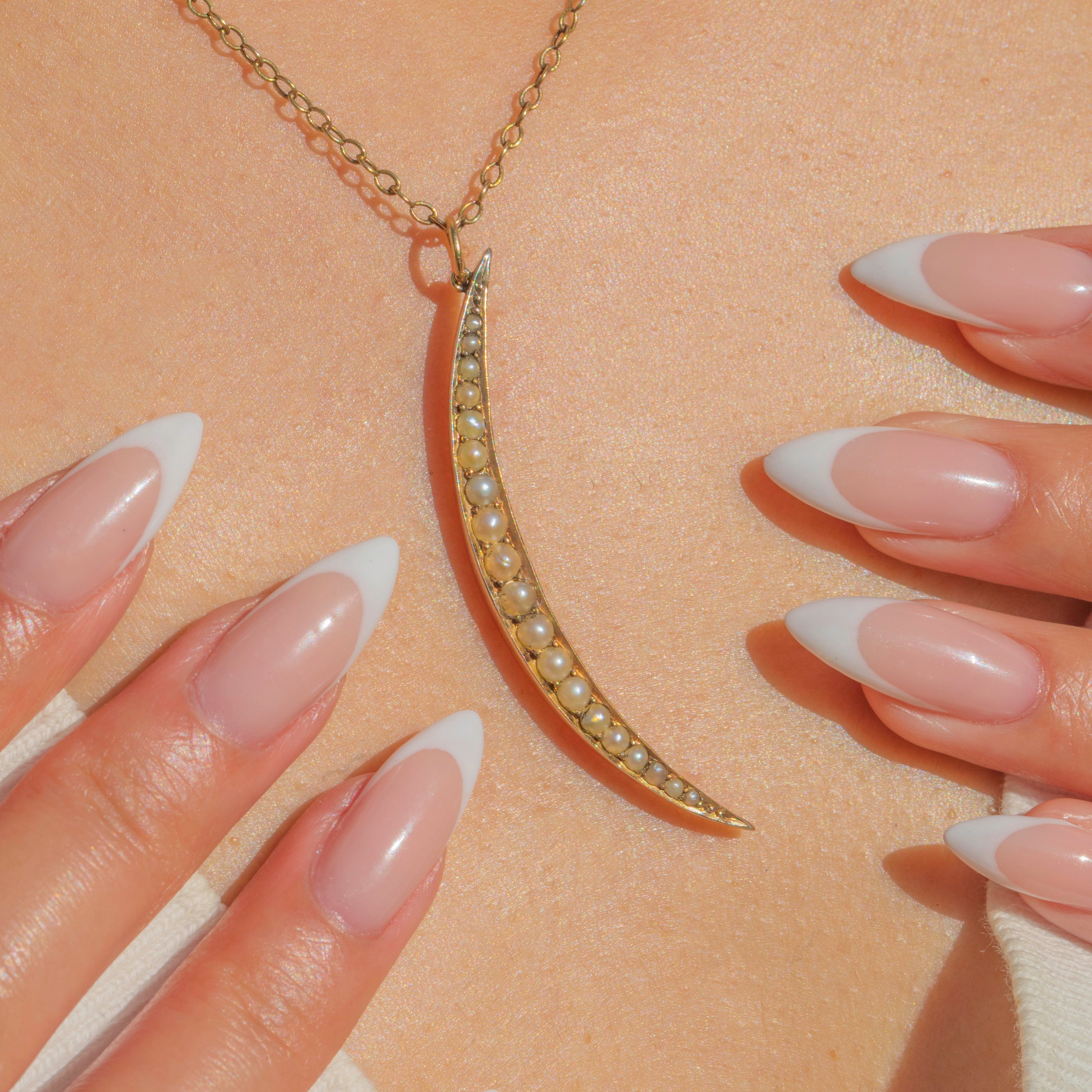 Crescent moons were a popular motif in the 19th century, symbolising femininity, intuition, and new beginnings. This slender example is refined and ethereal, making it a romantic jewel for layering or wearing as a standalone treasure.