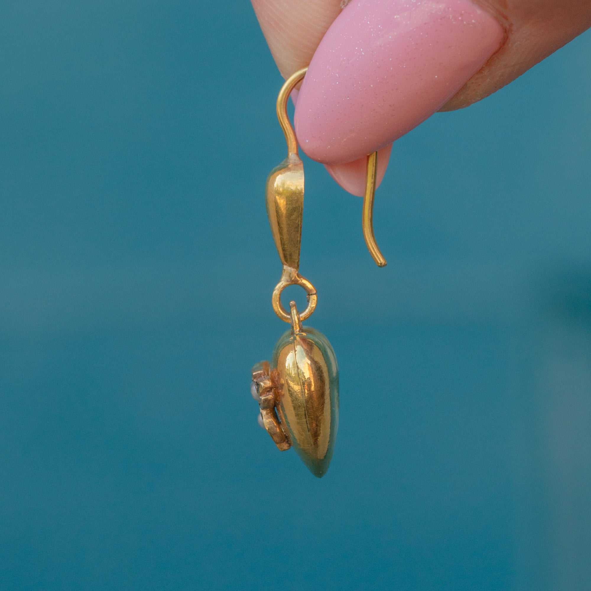 Antique 18ct Gold Witches Heart Pearl Drop Earrings