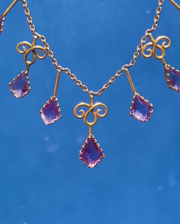 Antique 9ct Gold Amethyst Fancy Fringe Necklace