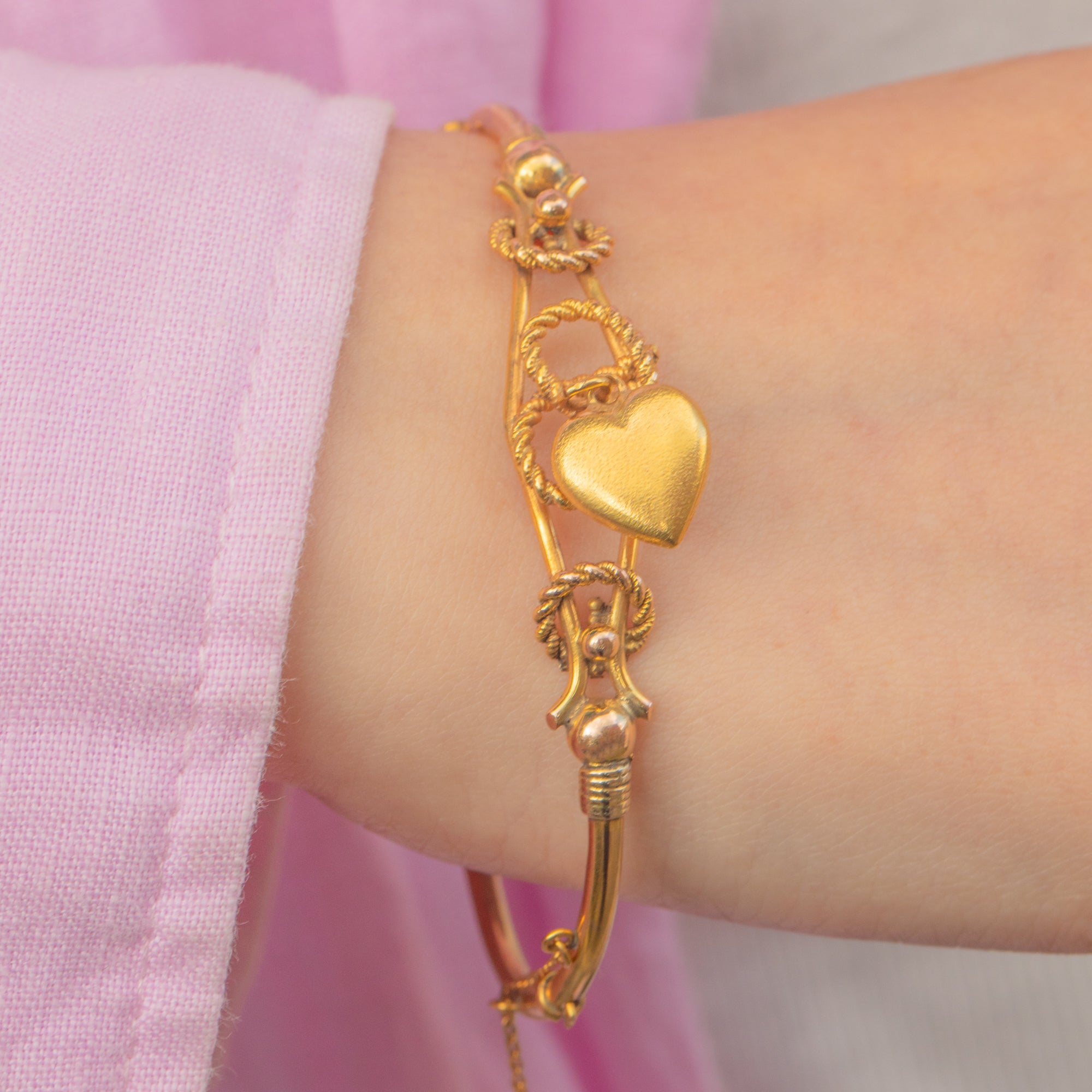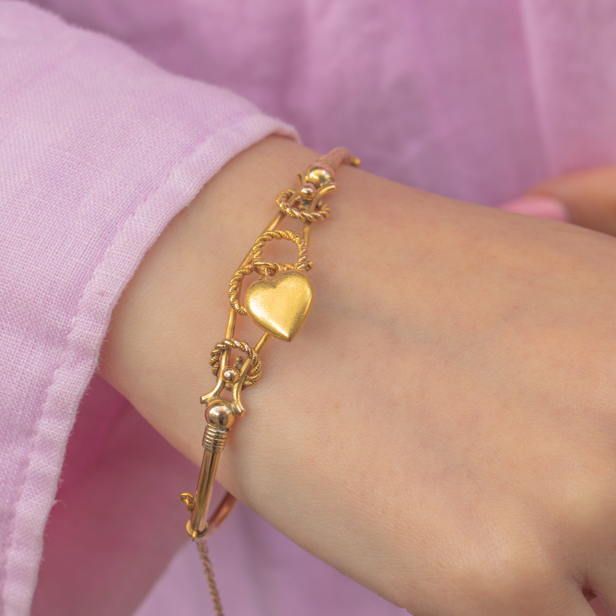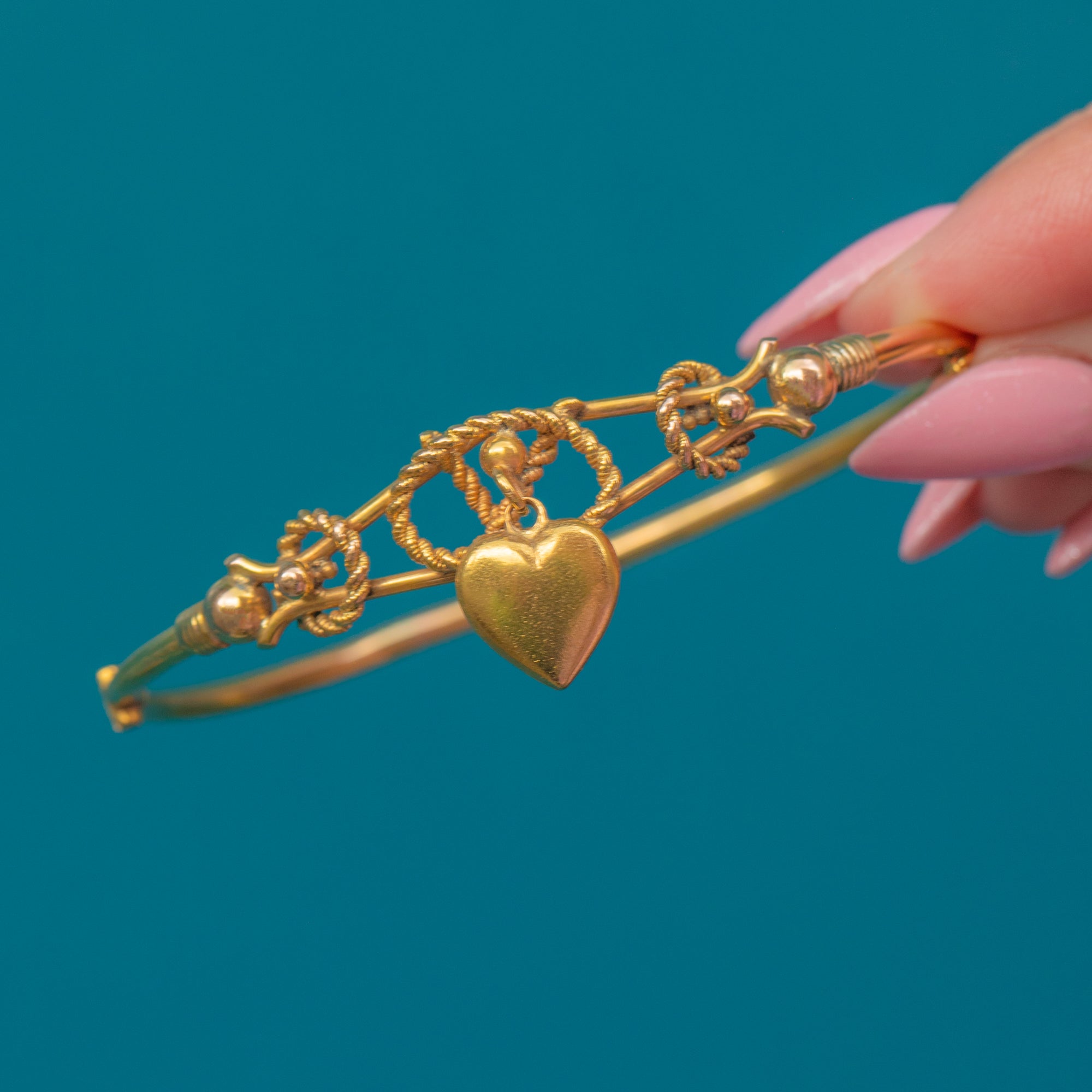 Antique 9ct Gold Bangle with Puffy Heart Charm
