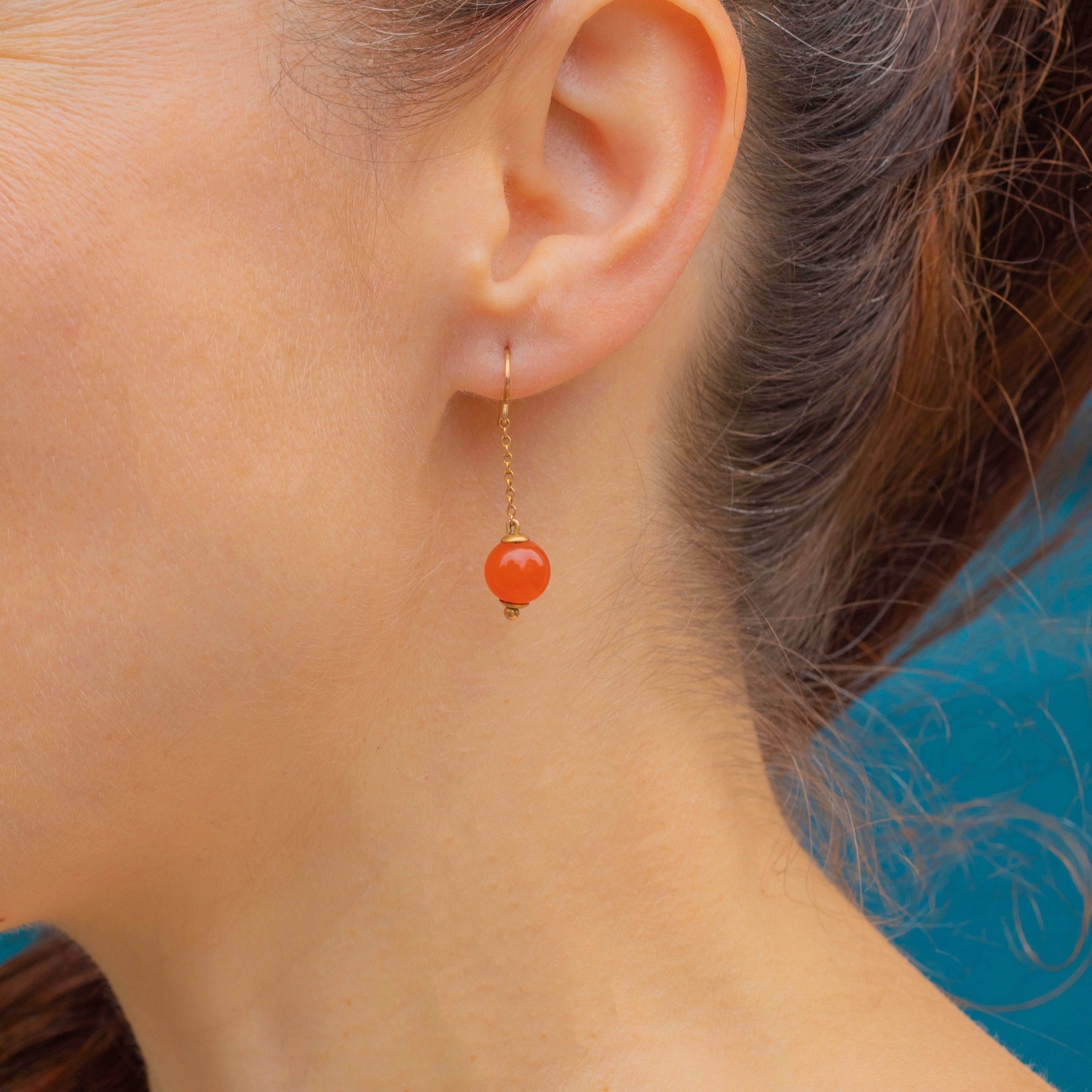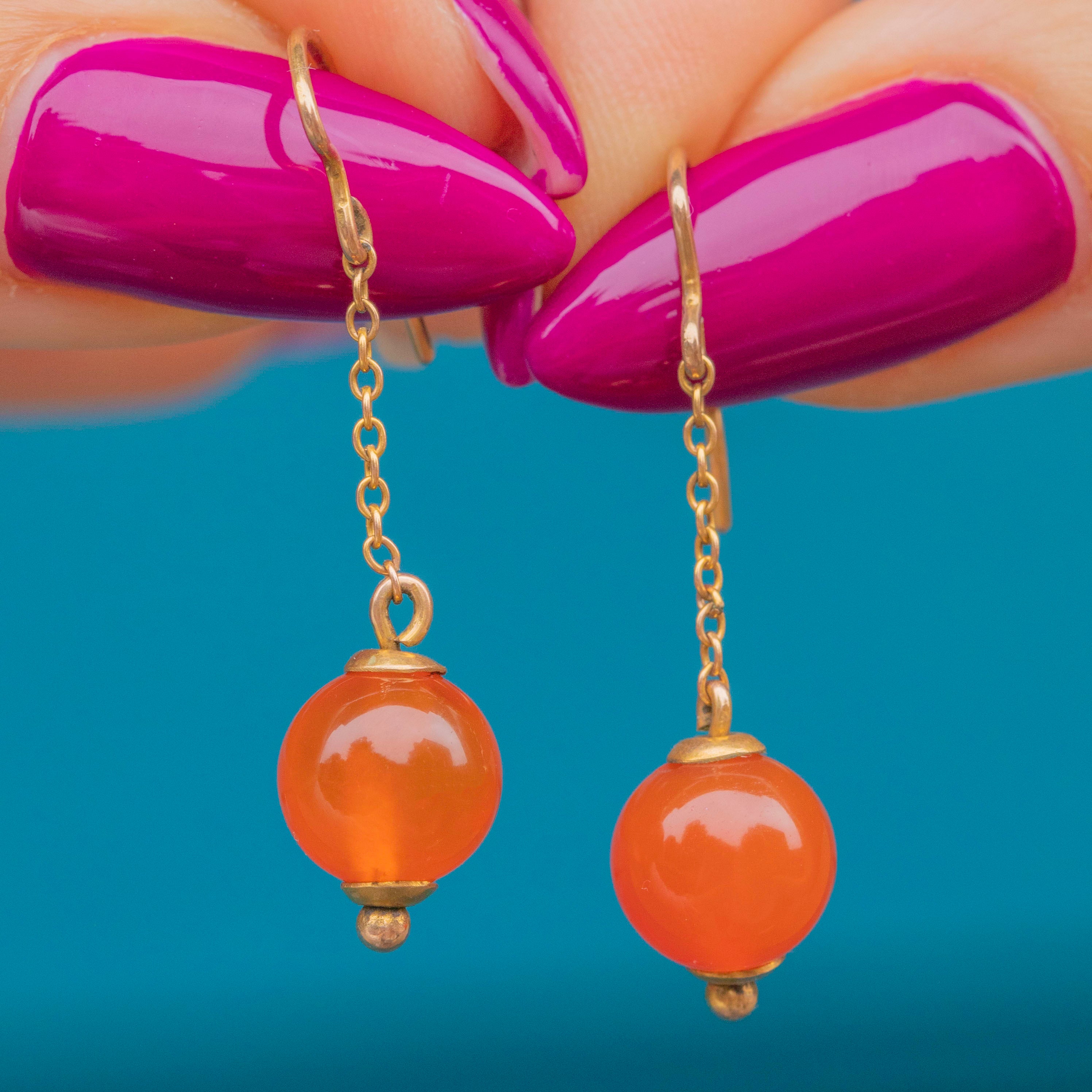 EXCELLENT: The Carnelian beads are smooth and secure, with only mild wear commensurate with age. The Gold is radiant and the hooks are robust, promising years of wear and enjoyment!