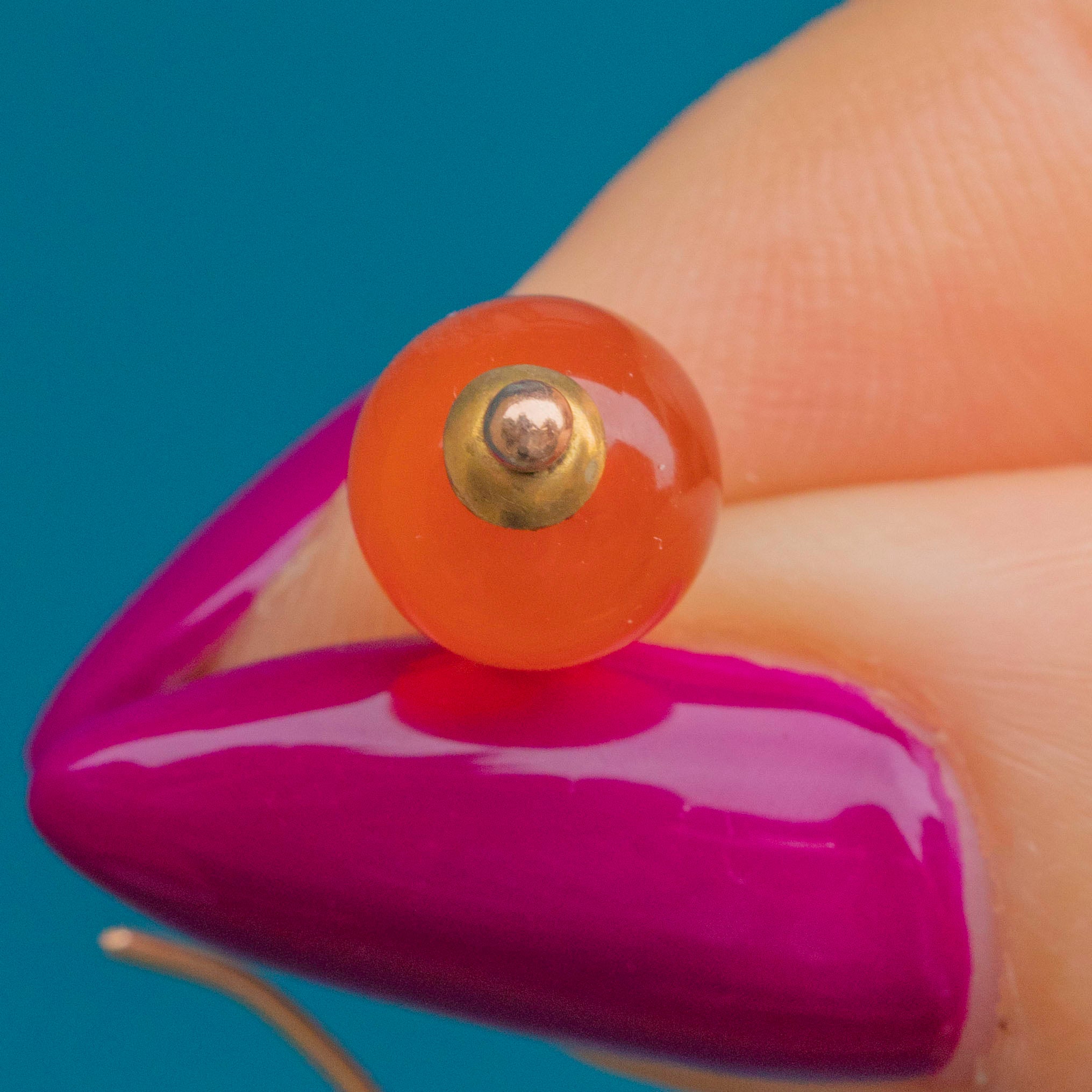 Carnelian orbs are 8mm in diameter, weighing approx. 4.00ct combined.
