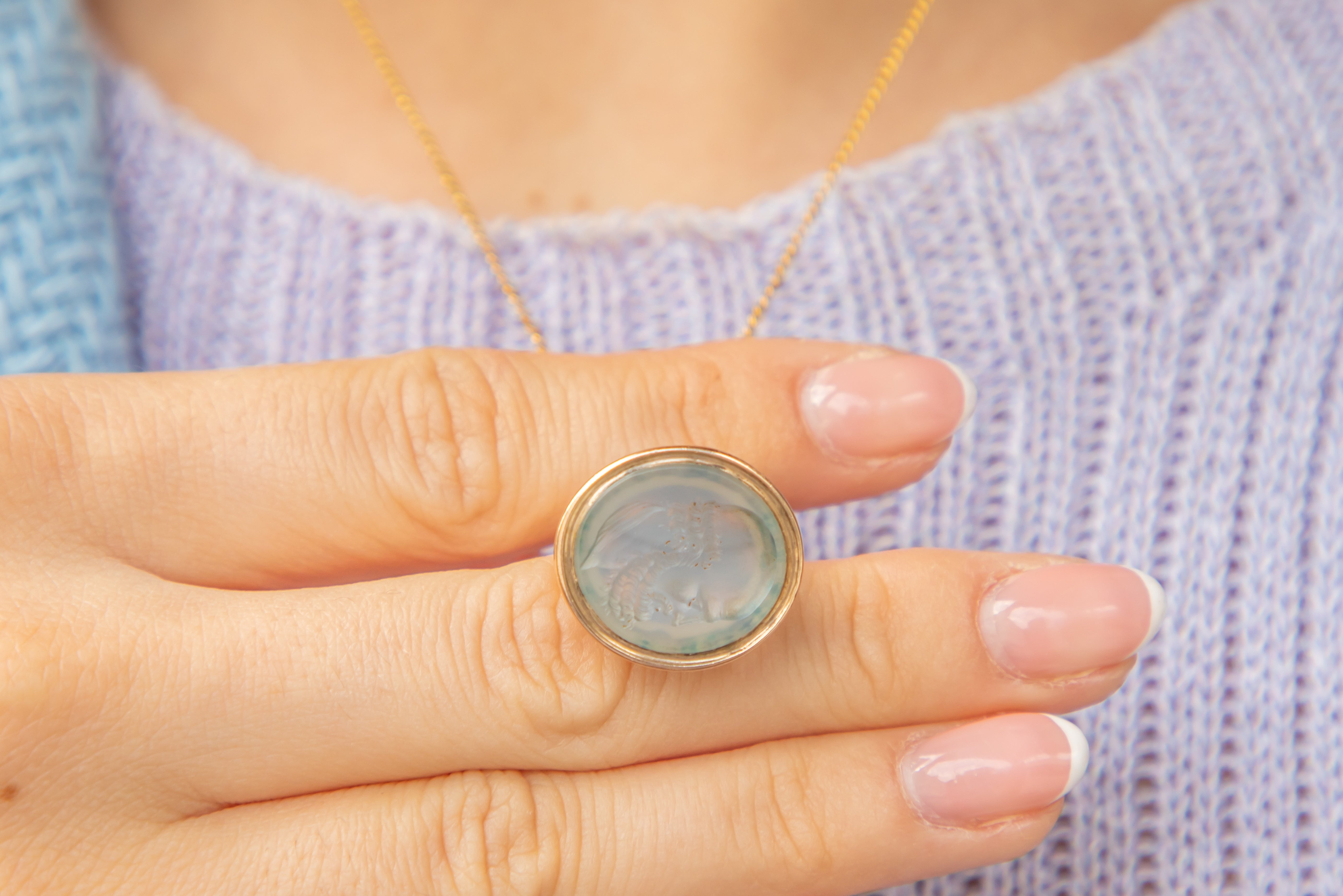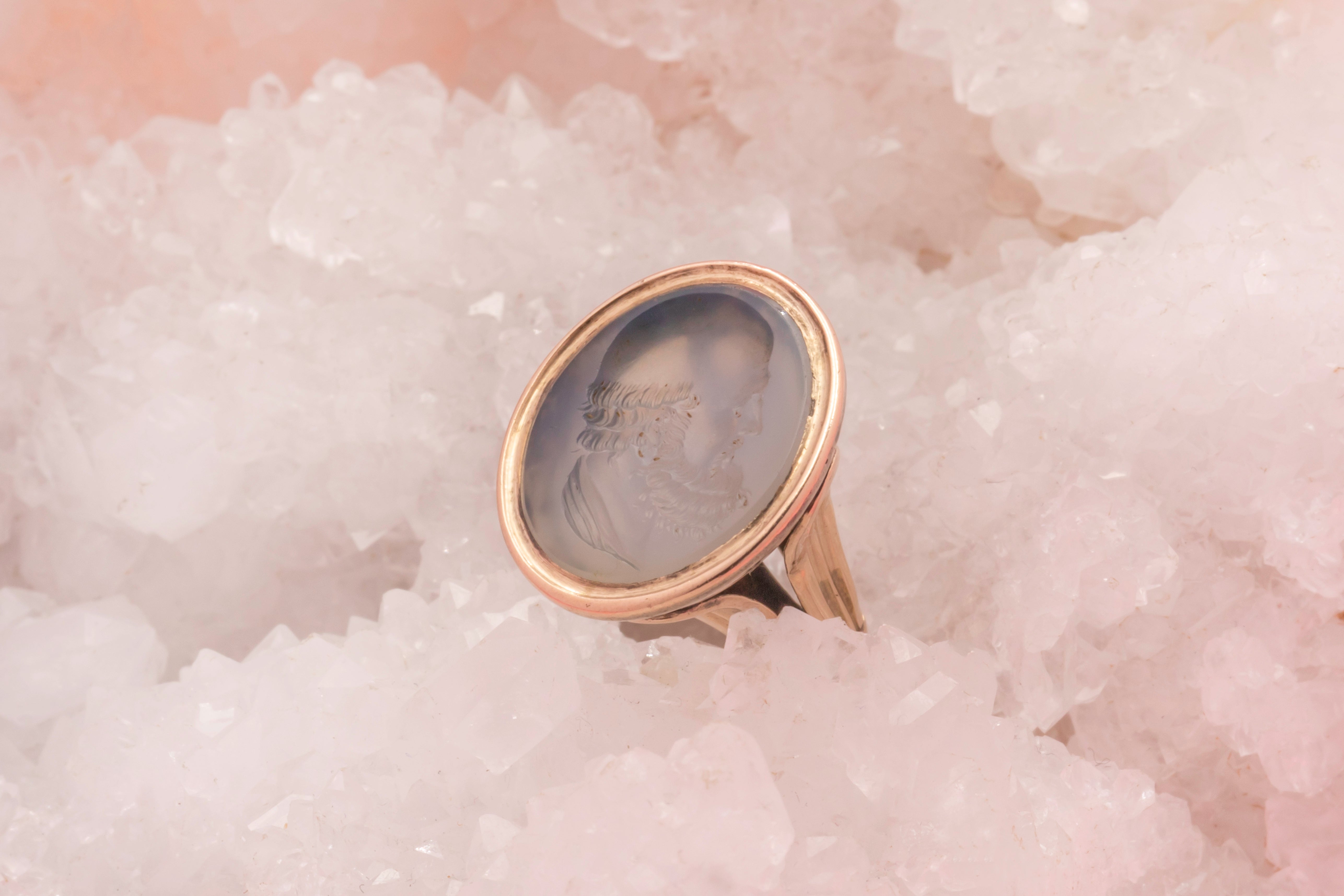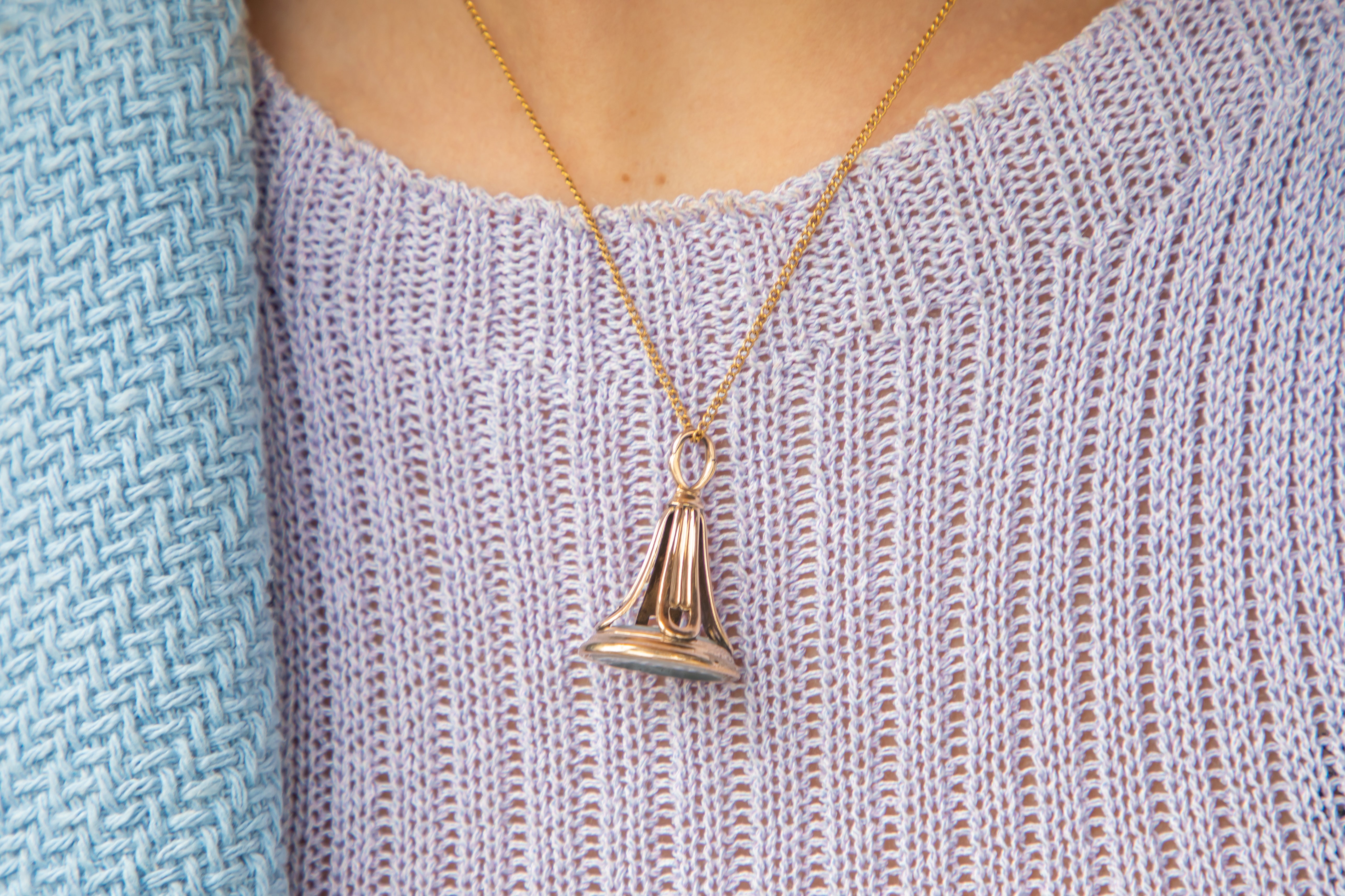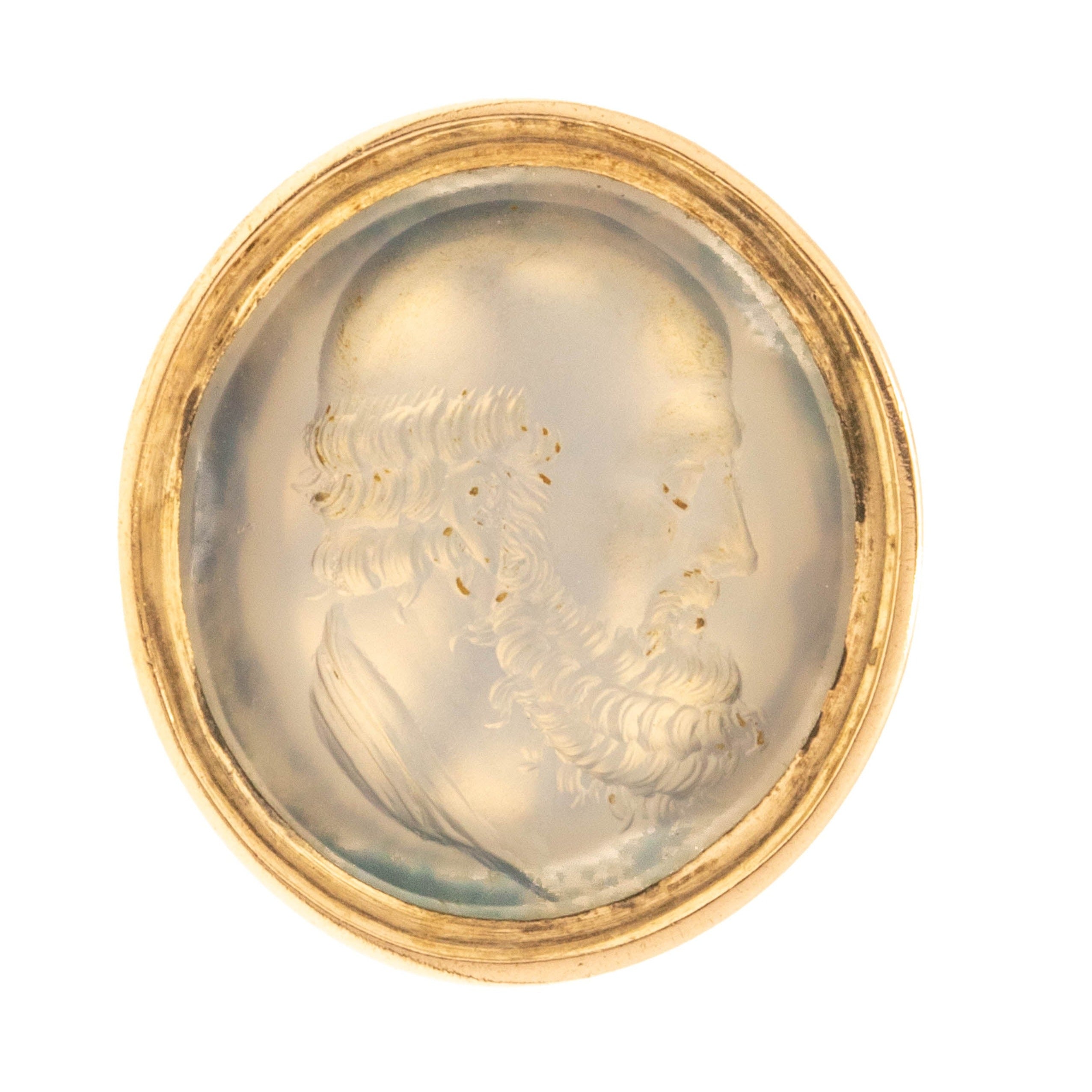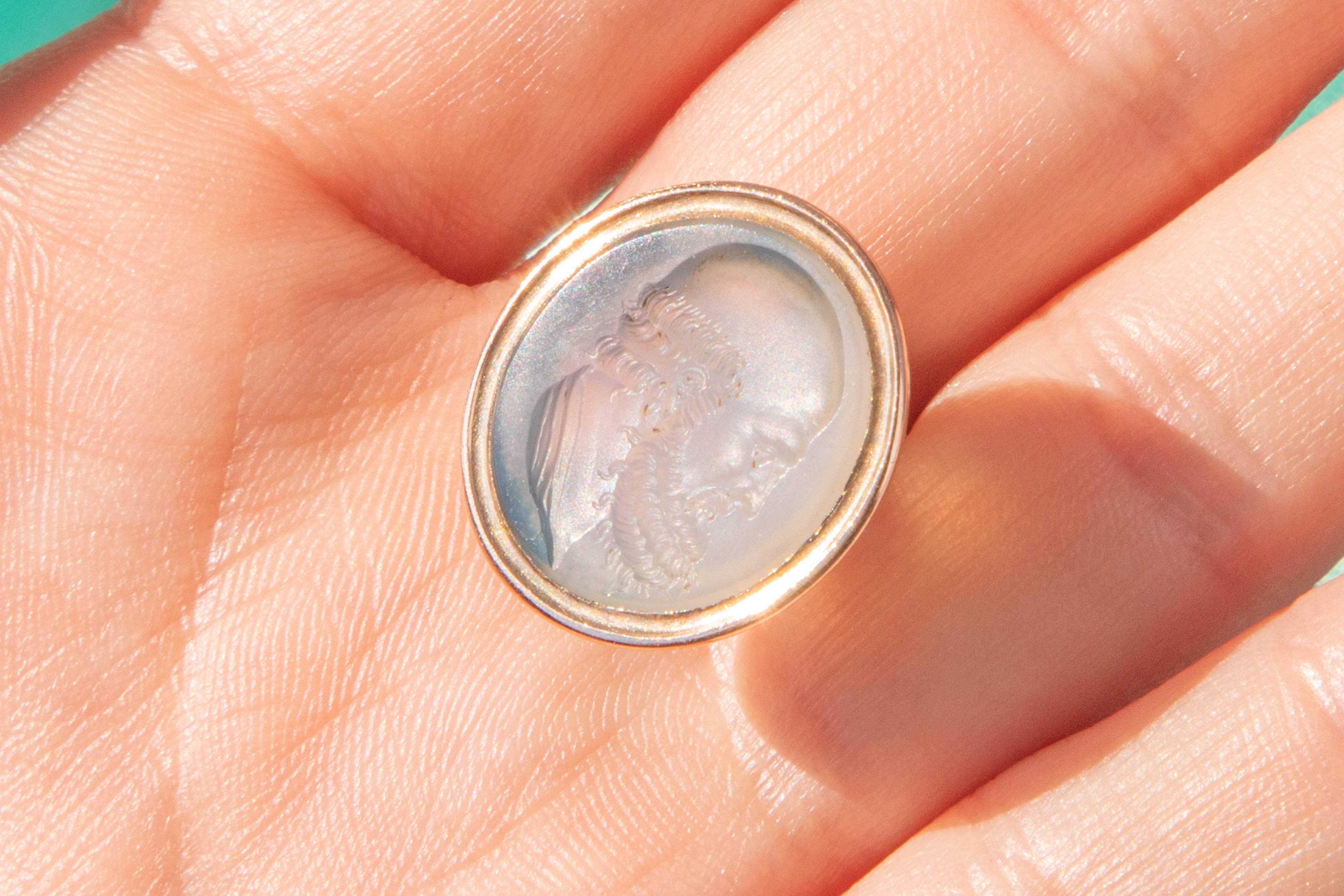 In true Victorian style, engraved into her smooth Chalcedony is an intaglio of a side profile of a gentleman. We believe he must have been a man of importance due to his portrait being used as an intaglio to seal letters - we are intrigued to know his history! Pair this antique wax seal fob with a dainty Gold chain and suspend her around your neck all day long.