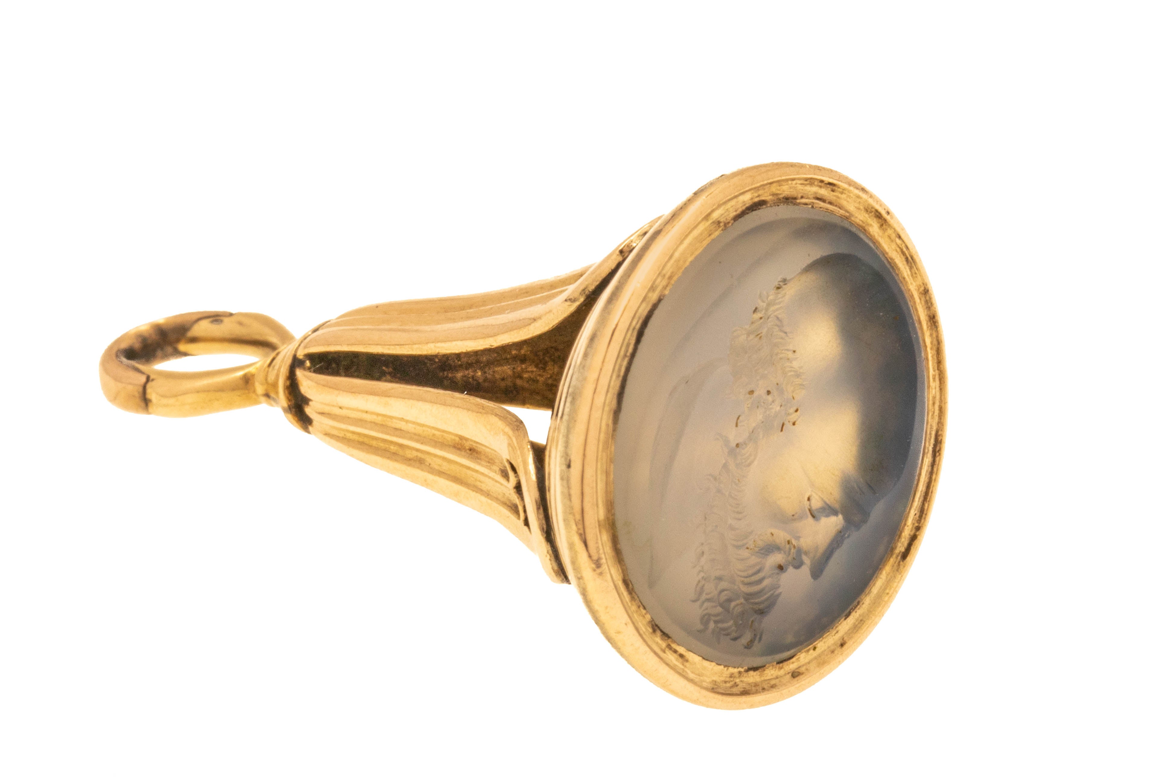 Antique 9ct Gold Chalcedony Intaglio Fob Pendant