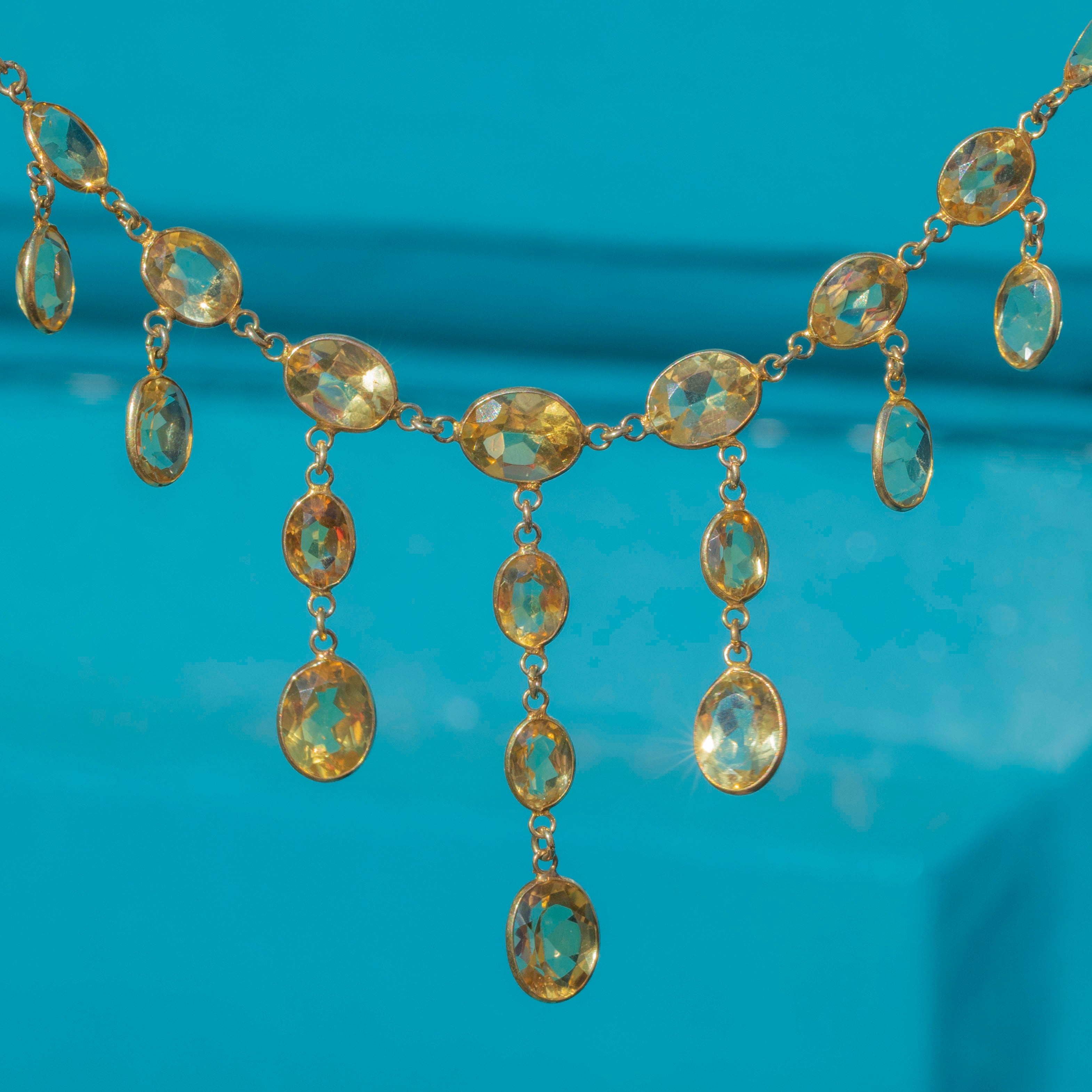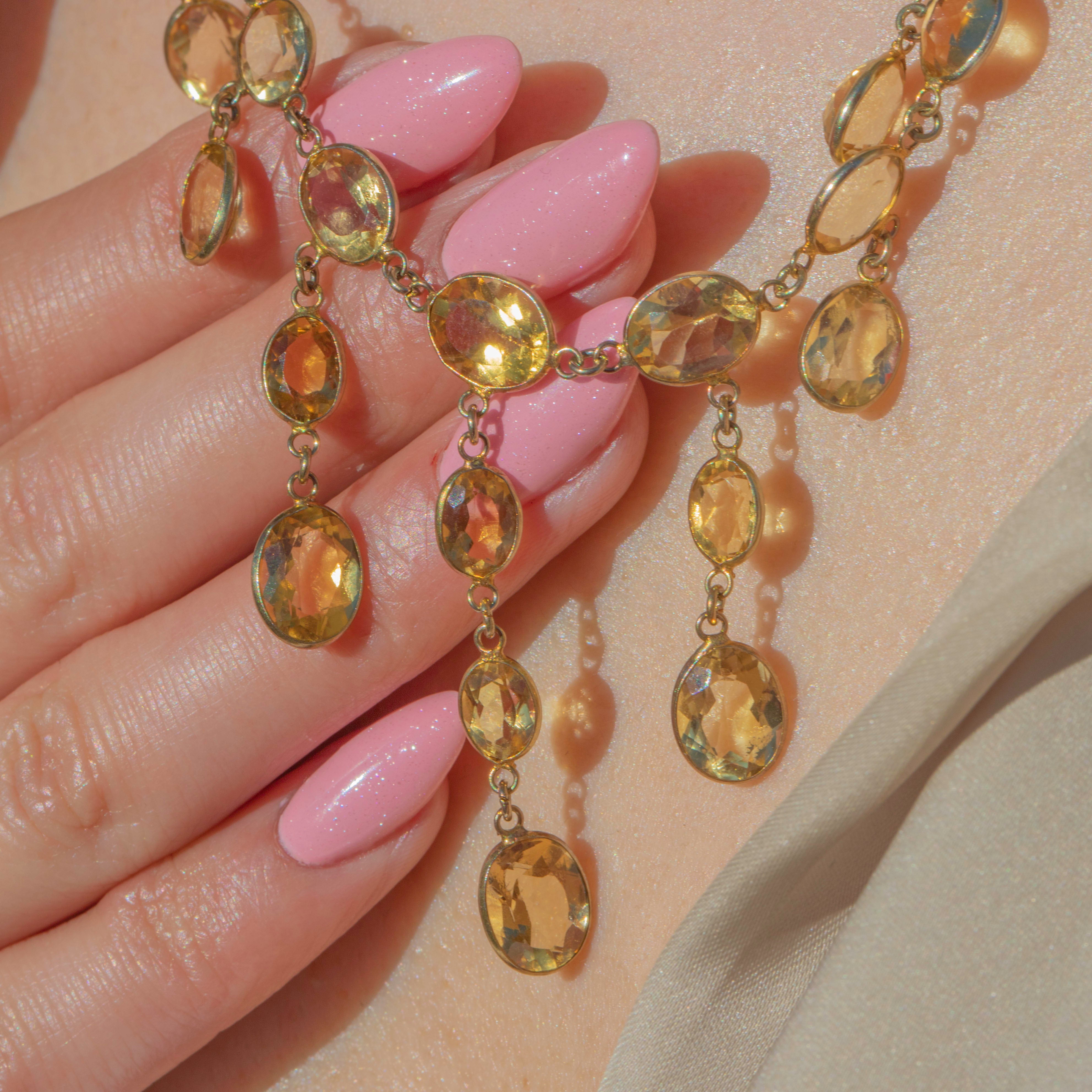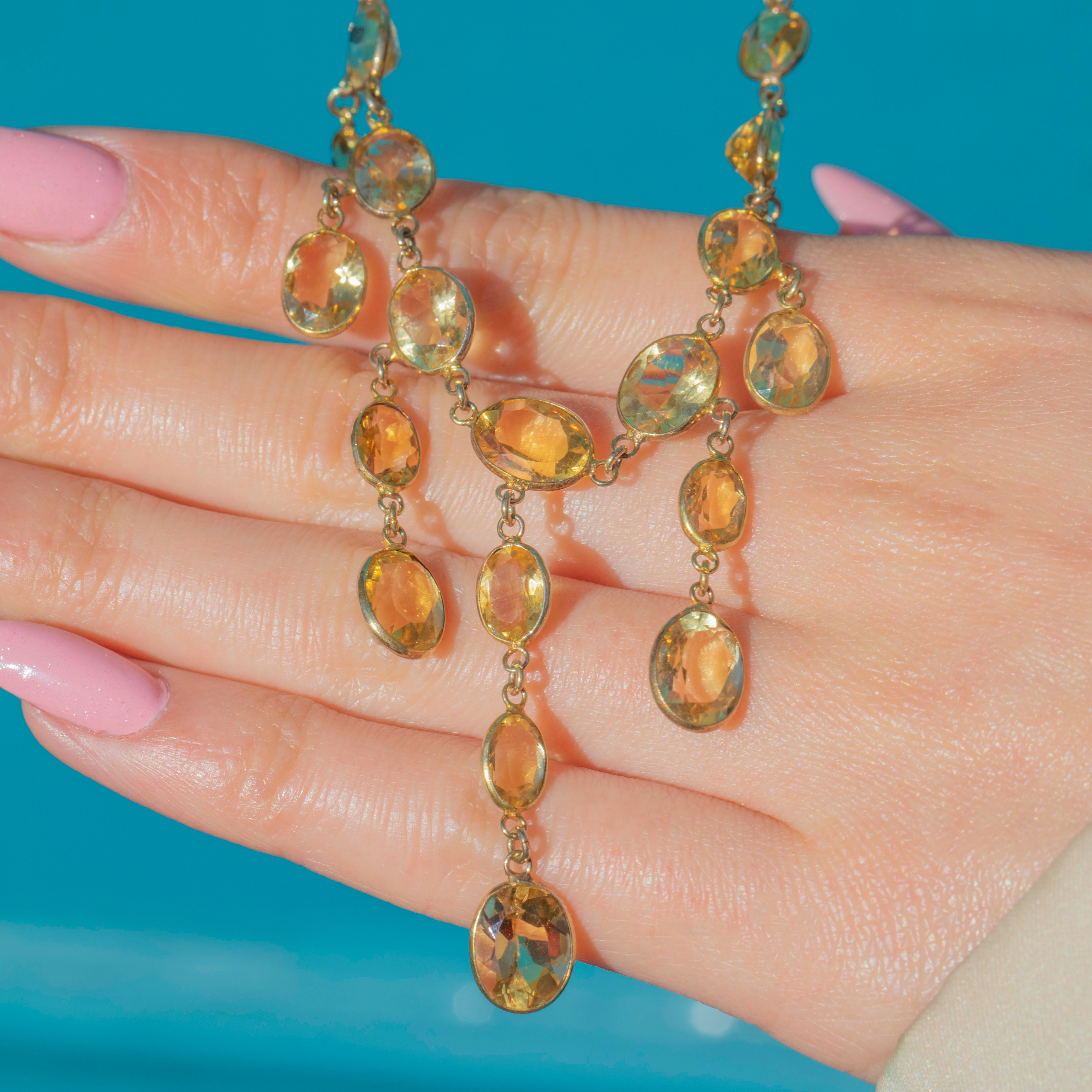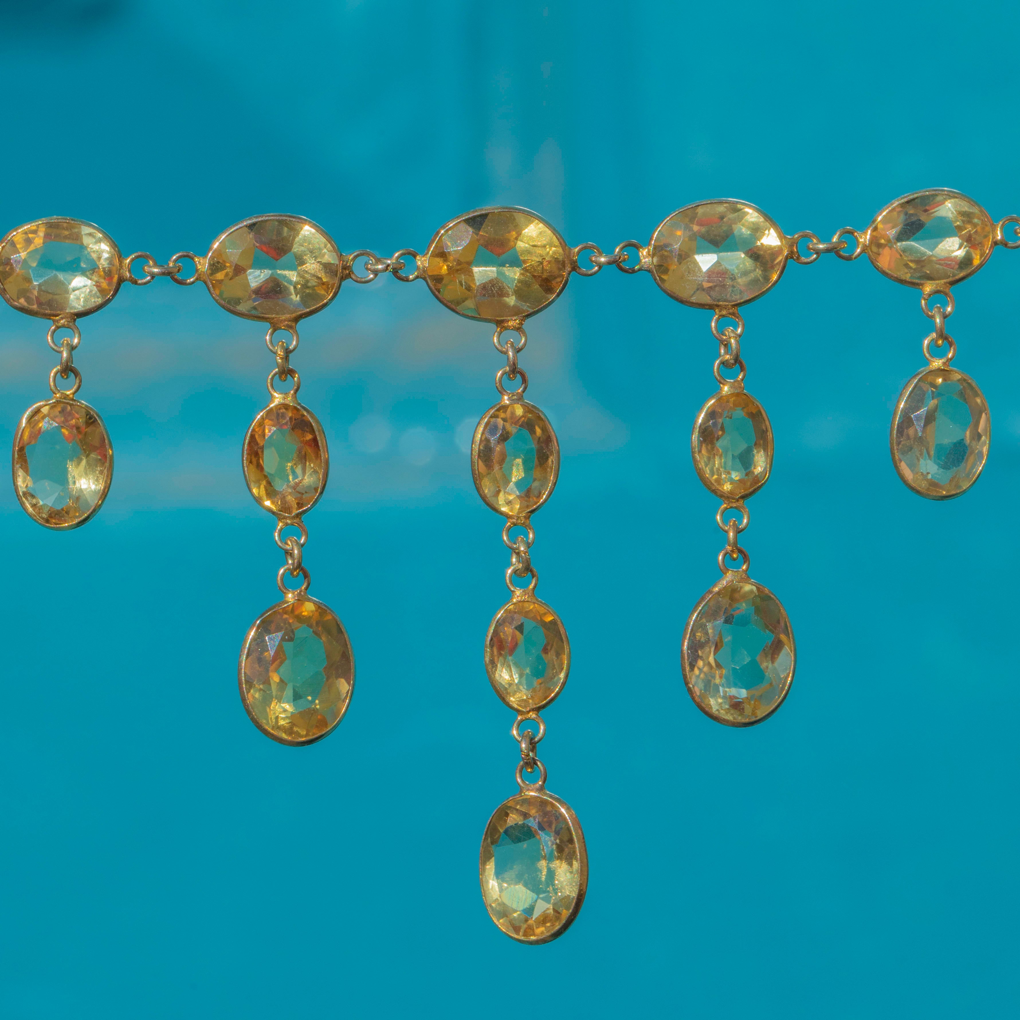 This antique 9ct Gold Citrine bezel-set fringe necklace is the perfect example of the exquisite craftsmanship of the Edwardian era!