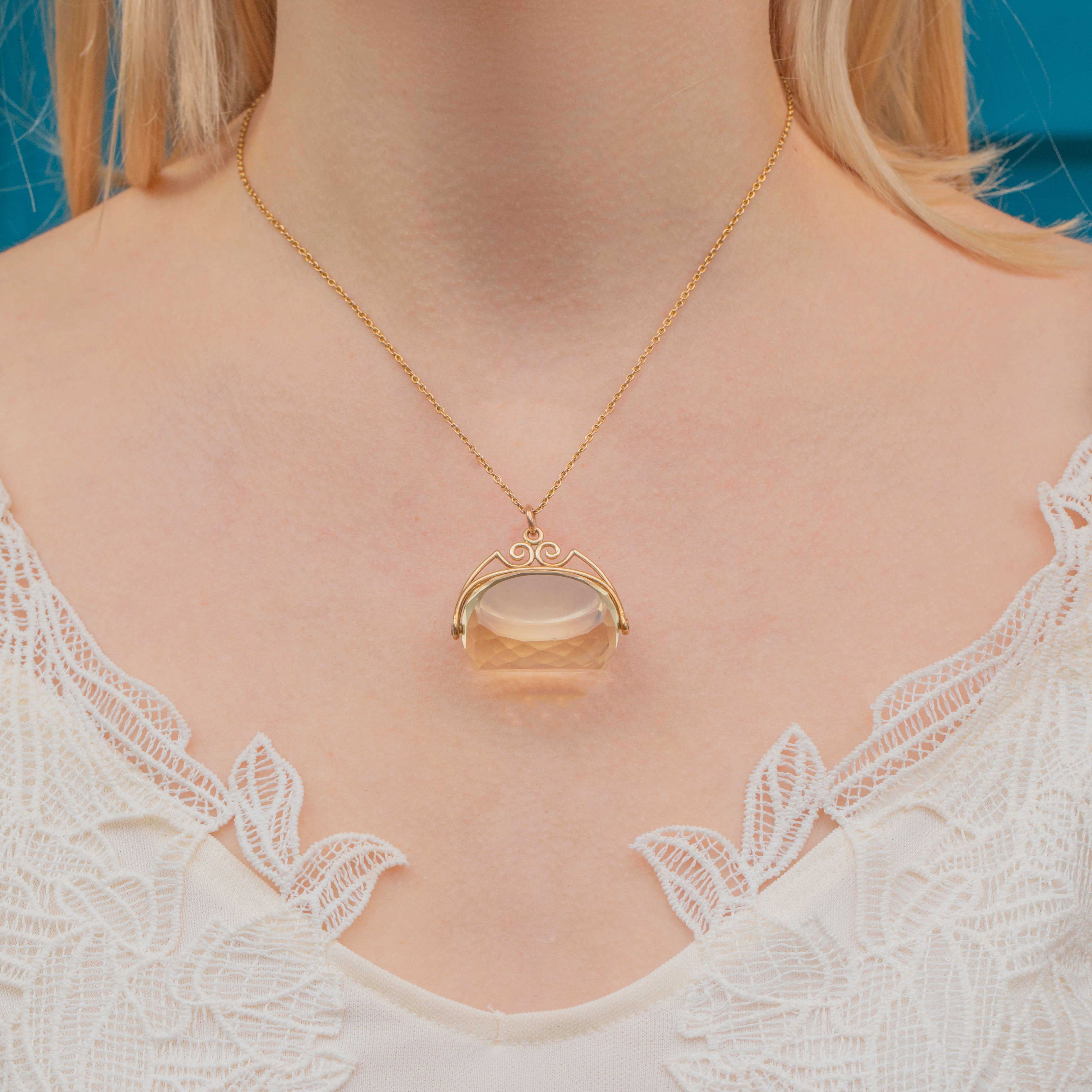 This Victorian swivel pendant will hang beautifully from a Gold chain, with her lemony Citrine sitting smooth and solid against your skin, facets glittering under the light - you could even choose to engrave the large flat facets if you wish! The swivelling feature adds an extra playful touch, ensuring years of enjoyment.