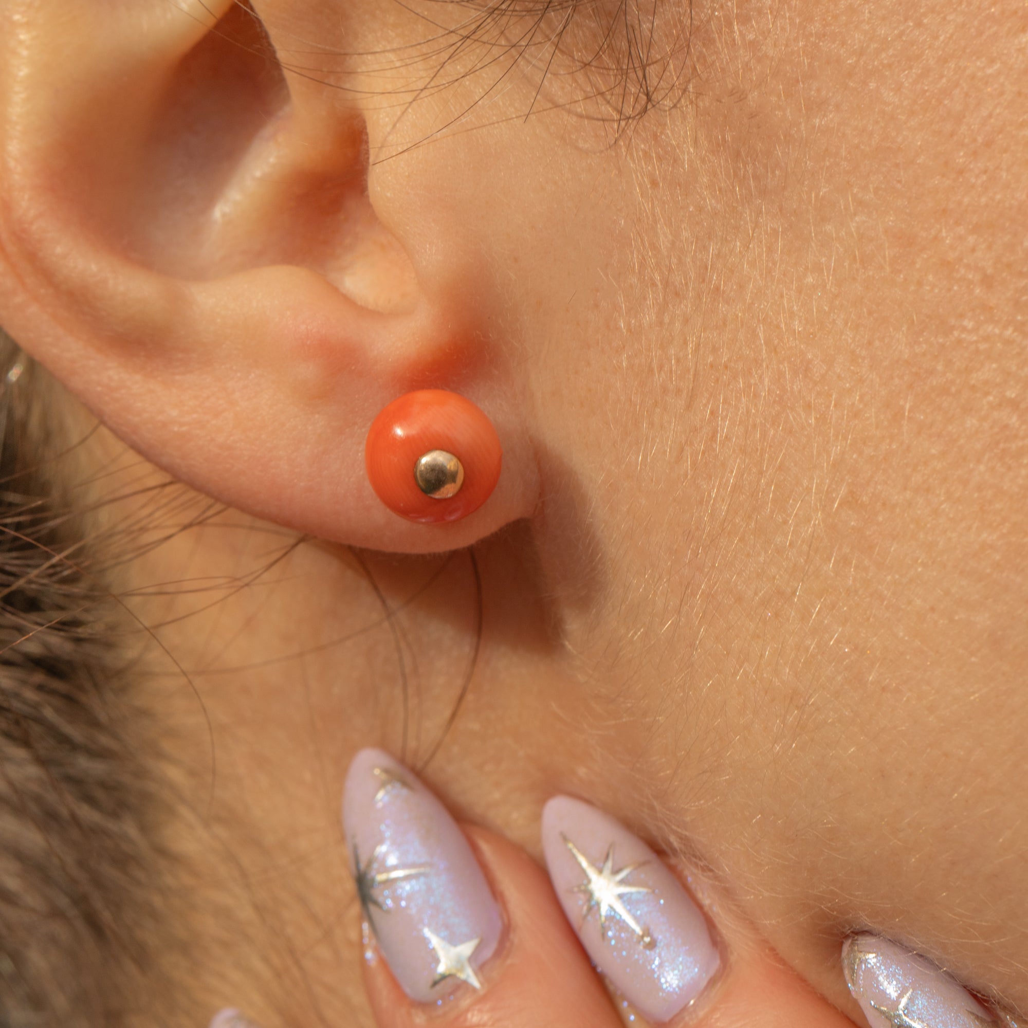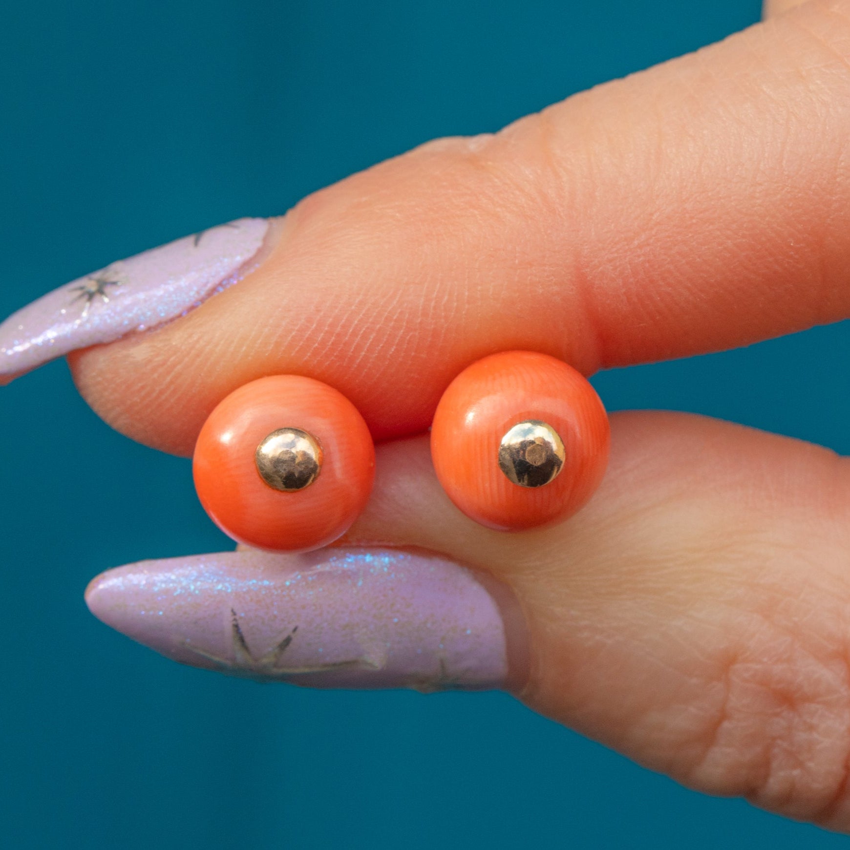 This pair of antique 9ct Gold Coral stud earrings will add a lovely pop of colour to your outfit!