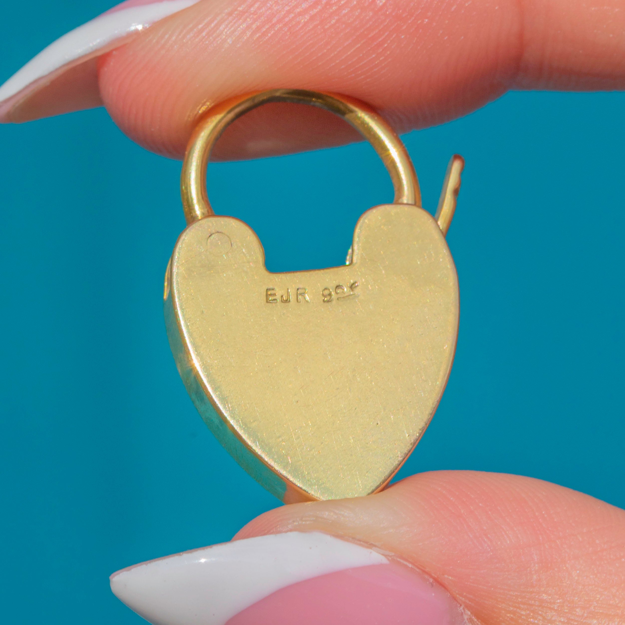 Crafted from bright and glossy 9ct Gold, this Art Deco pendant has been formed into an adorable heart-shaped padlock and oozes romantic charm!