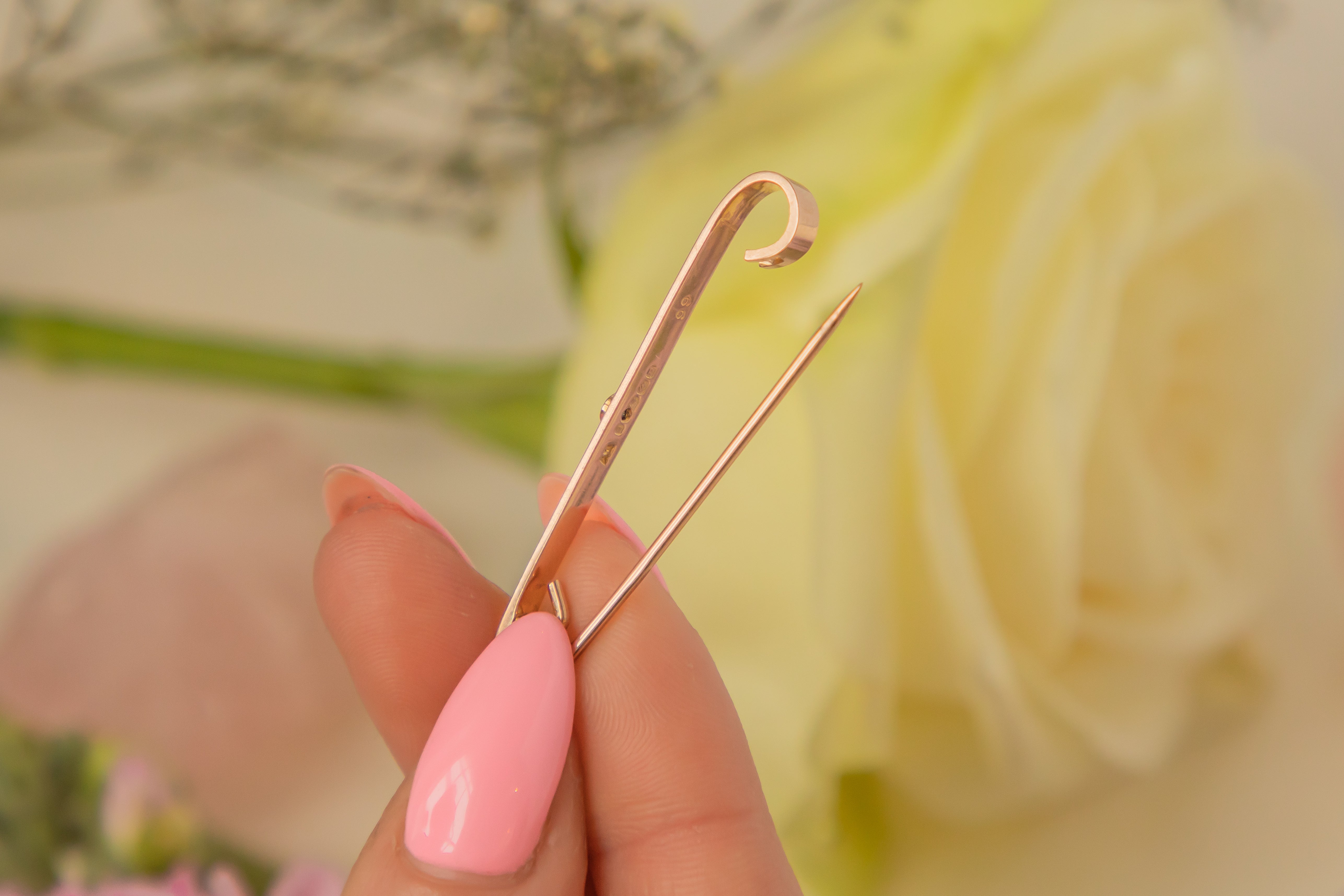 At the centre of this pin is a pretty Diamond, whether you're a seasoned collector or just starting out, this elegant piece is sure to become a beloved favourite in your jewellery box.