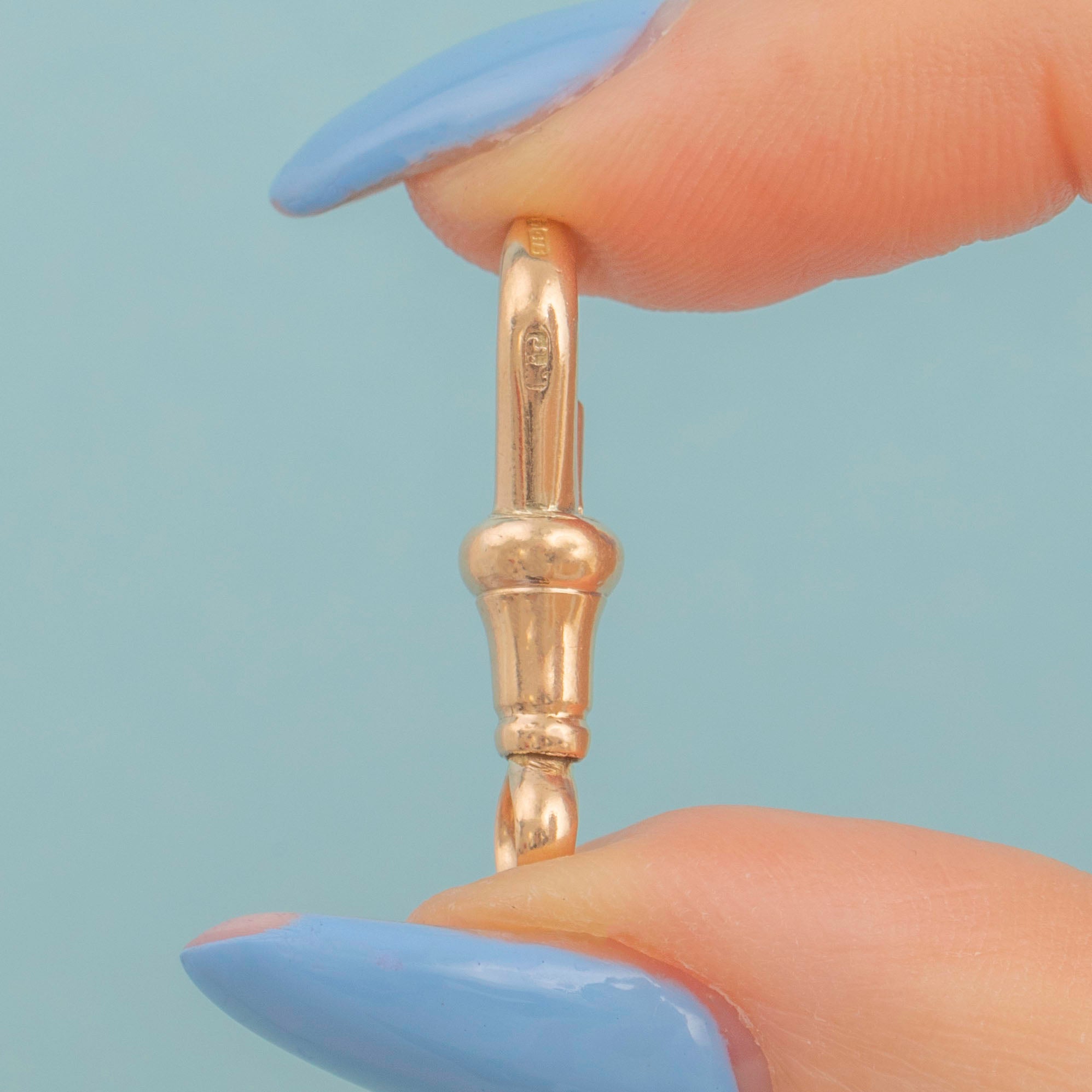 This antique 9ct Gold dog-clip is fantastic with a stunning buttery yellow Gold hue and polished to perfection. A must-have for any antique enthusiast, she embodies timeless elegance.