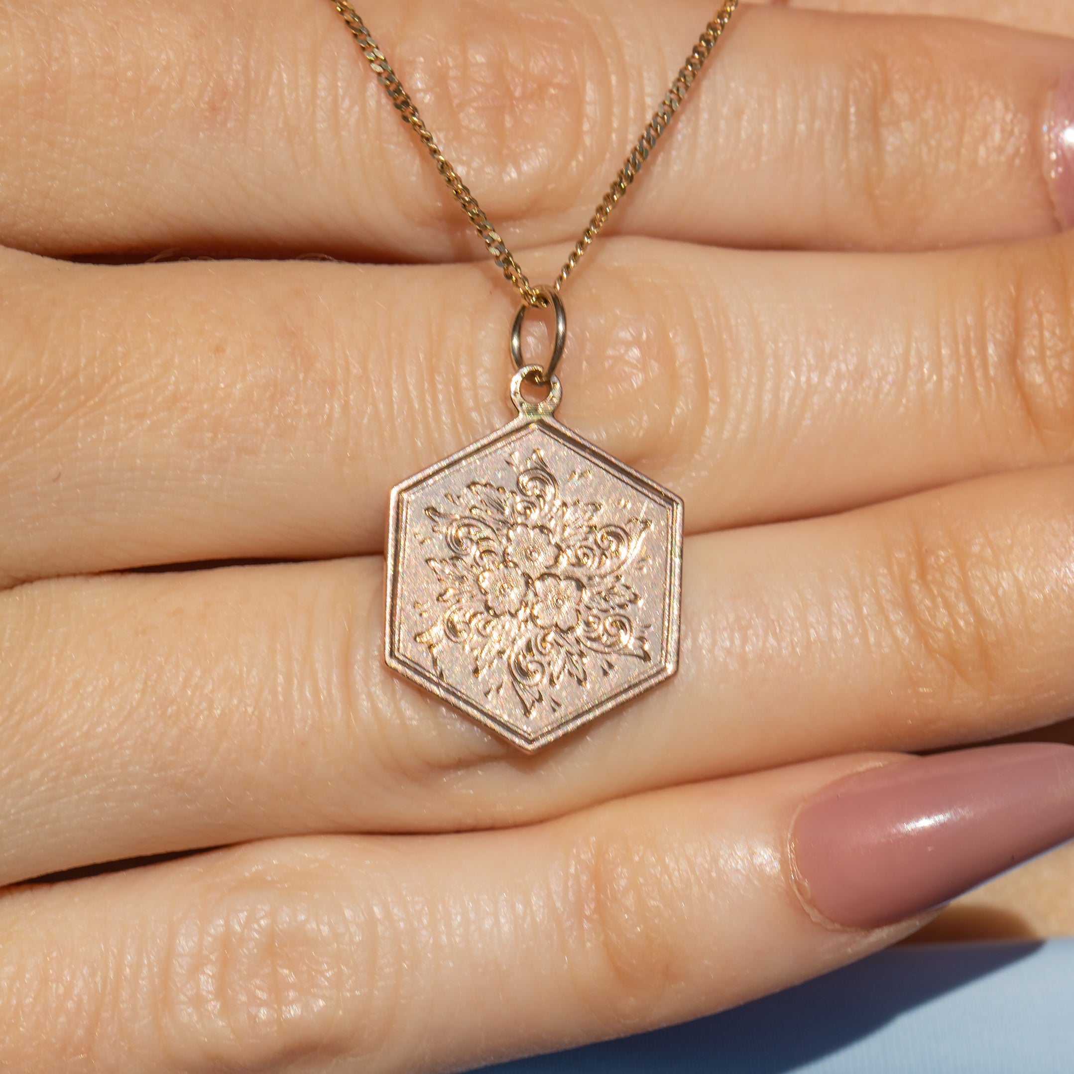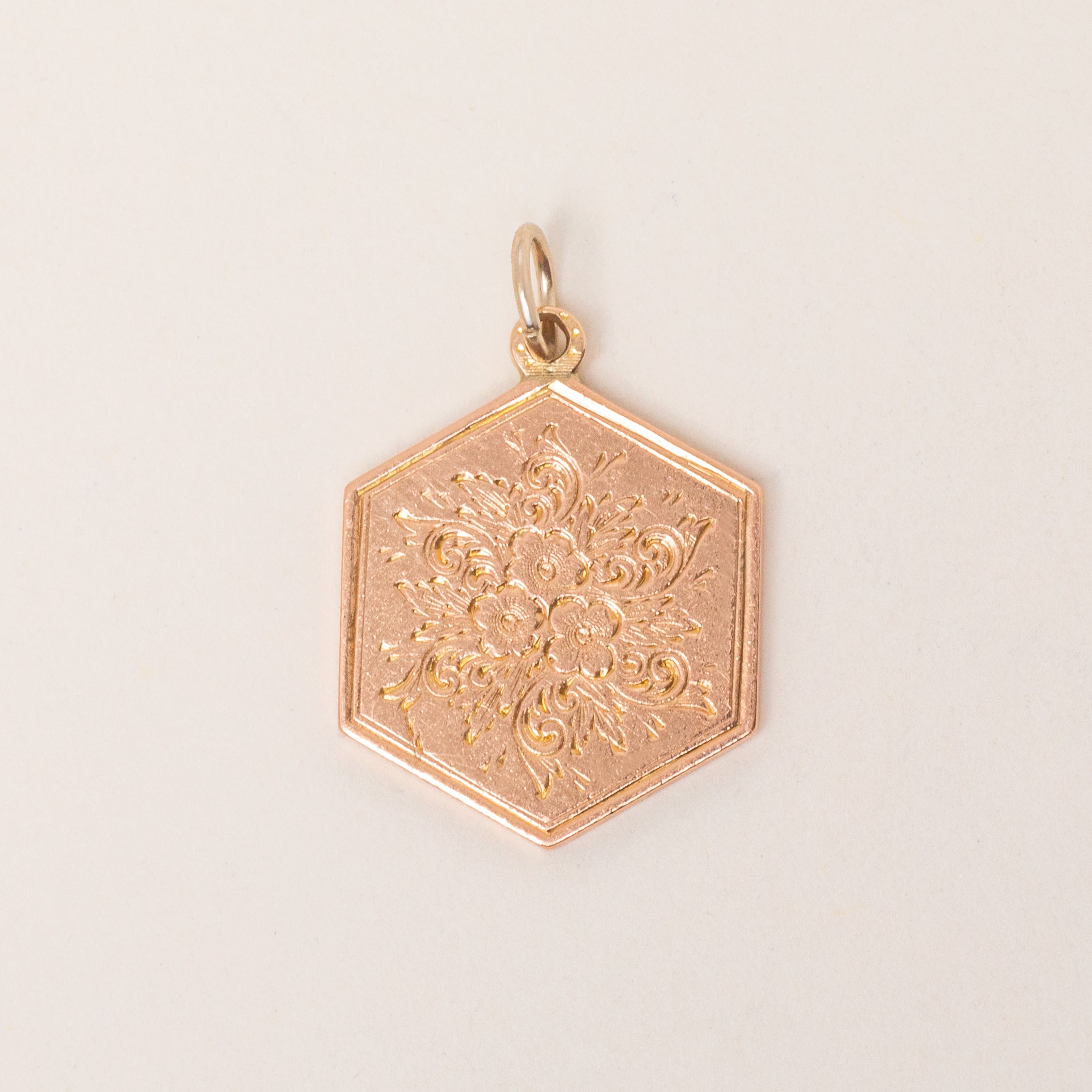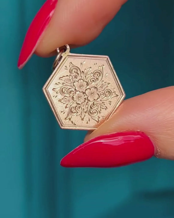 This antique 9ct Gold engraved forget-me-not pendant has been crafted from a beautiful rosy-hued Gold! Featuring playful engravings of forget-me-not flowers, this Gold pendant is in gorgeous ready-to-wear condition.