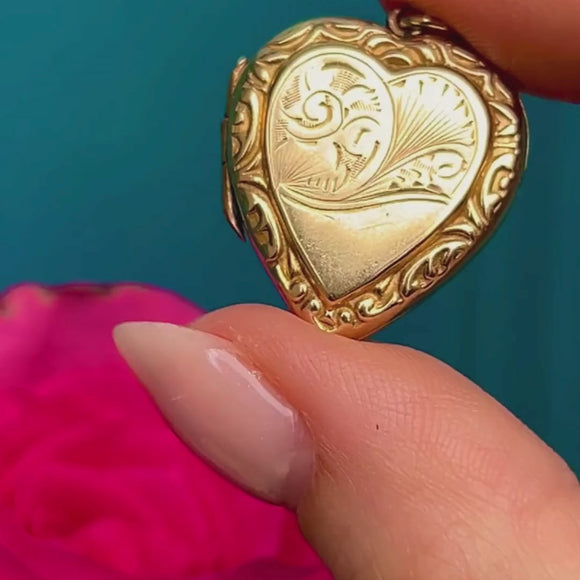 Antique 9ct Gold Engraved Heart Locket
