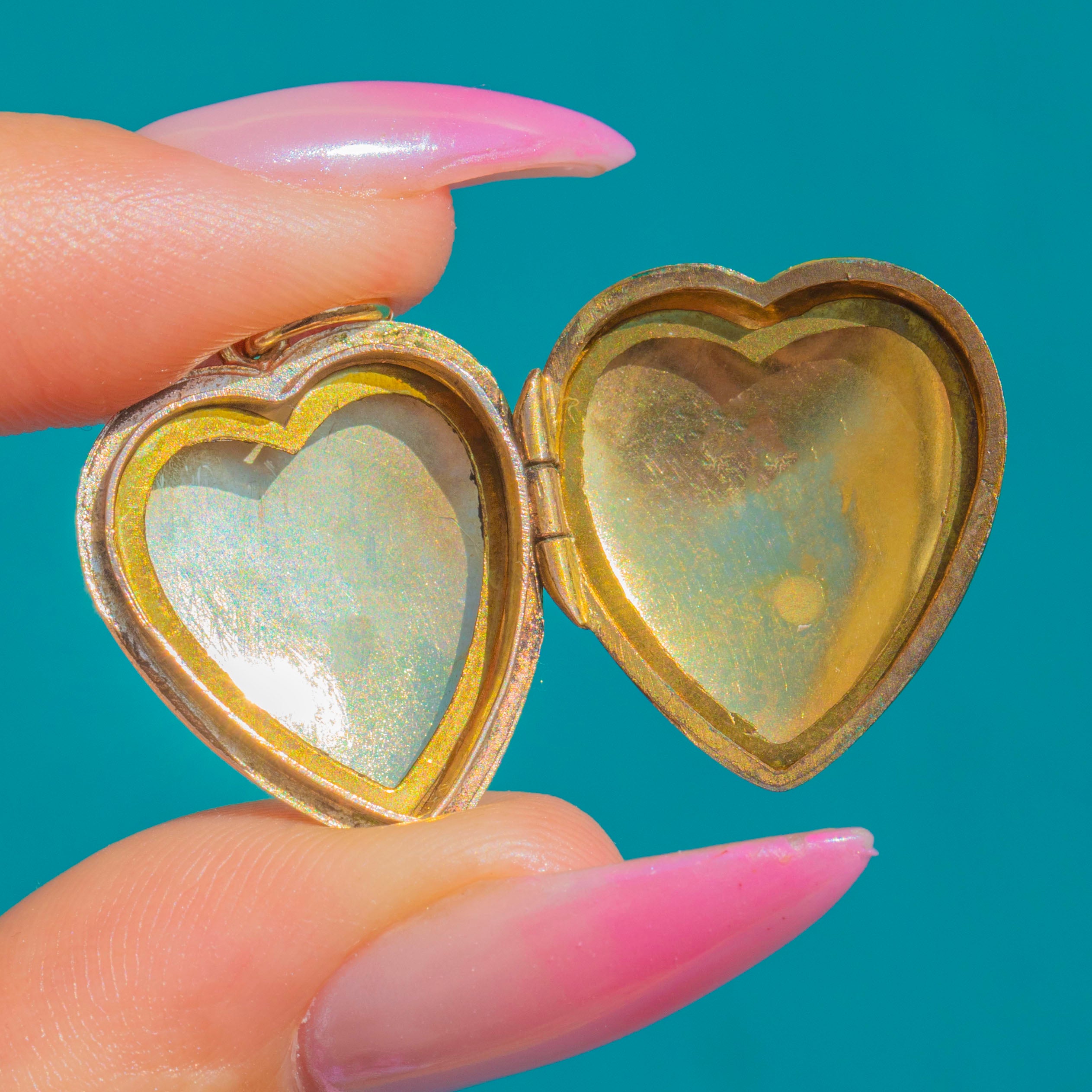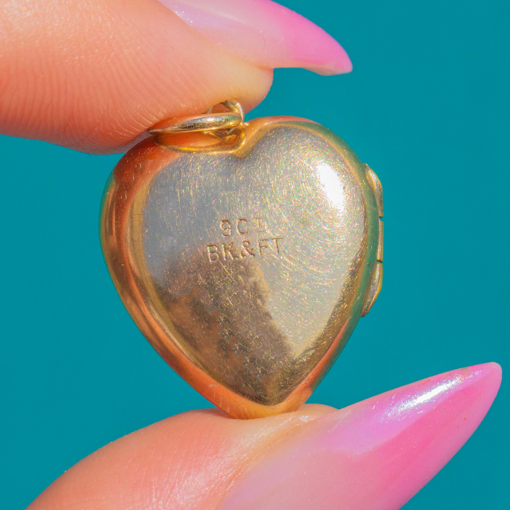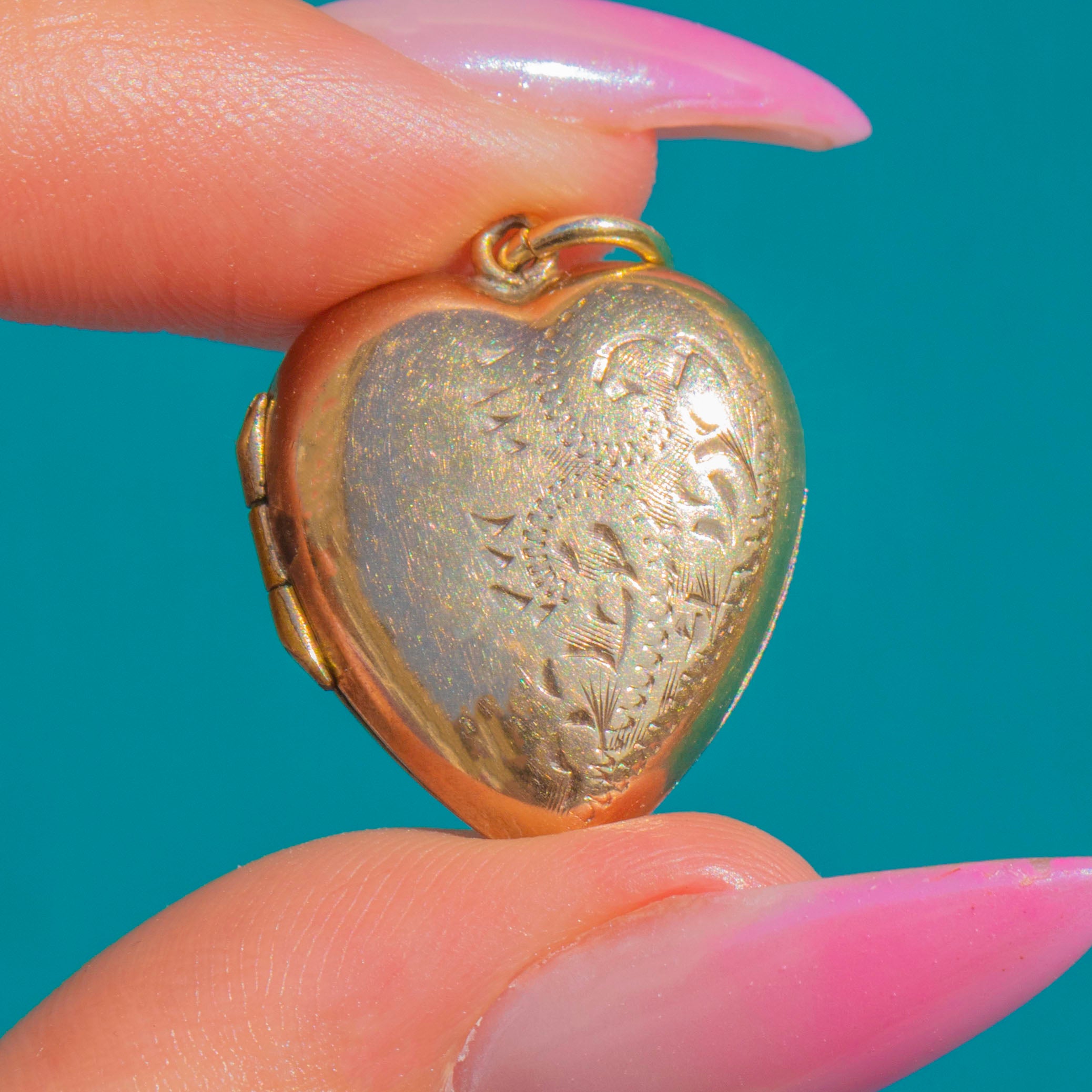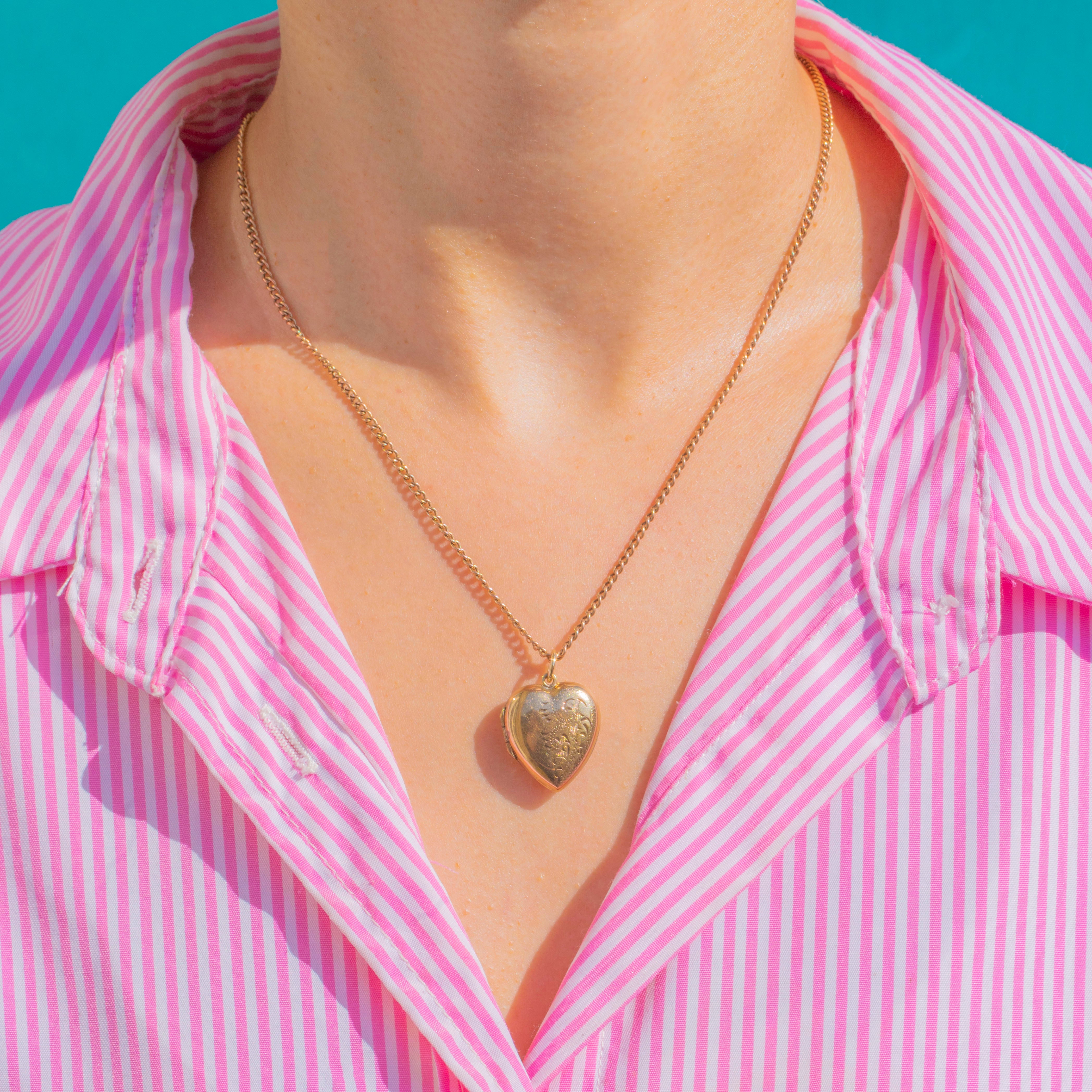This charming Victorian puffy heart locket is crafted in warm 9ct Gold, its front finely engraved with scrolling foliate motifs around a raised heart cartouche set against a soft, engine‑turned ground. The reverse is smooth and highly polished, catching the light beautifully.