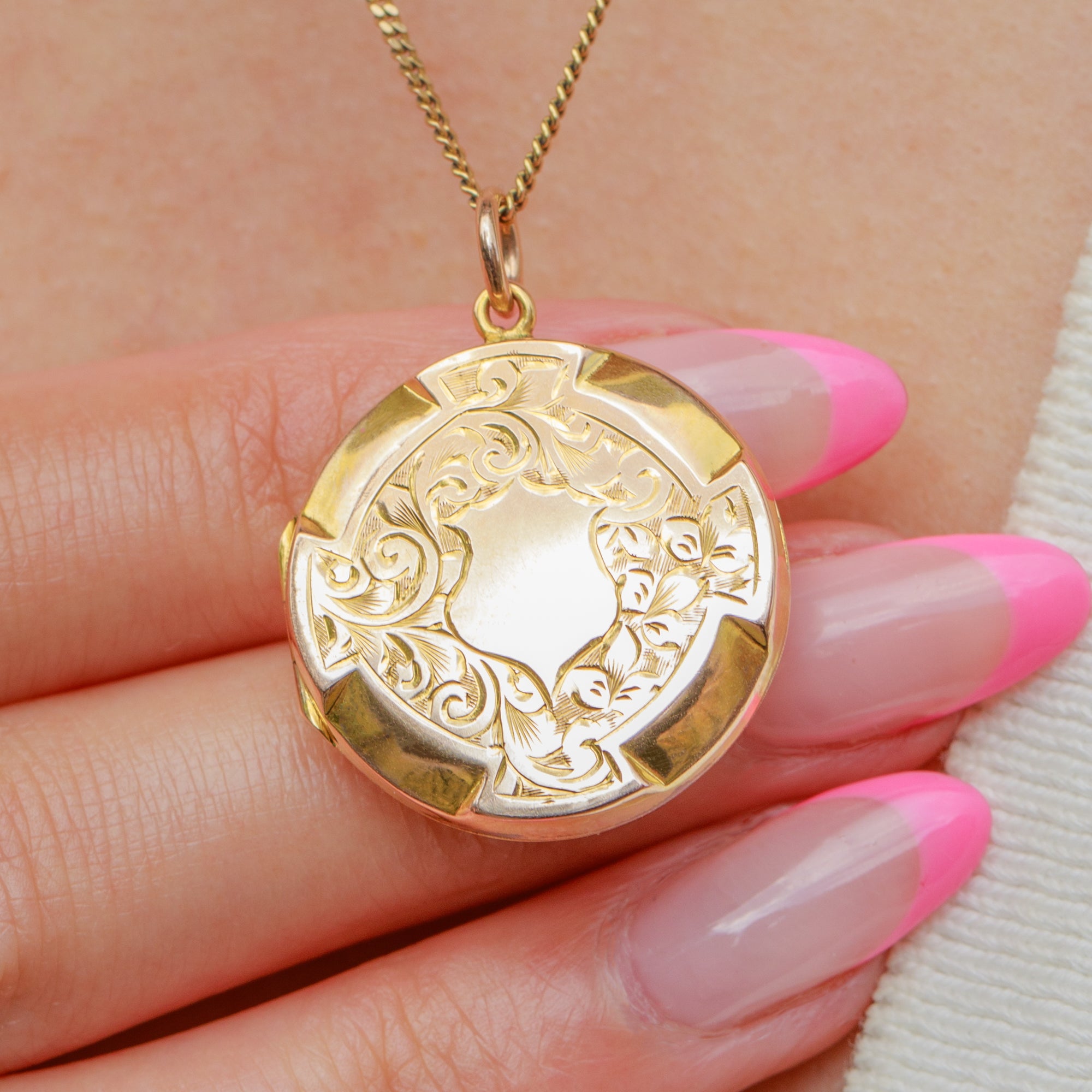 A romantic and charming antique 9ct Gold engraved round locket! This is a splendid piece, rich in character and ready to be made yours.
