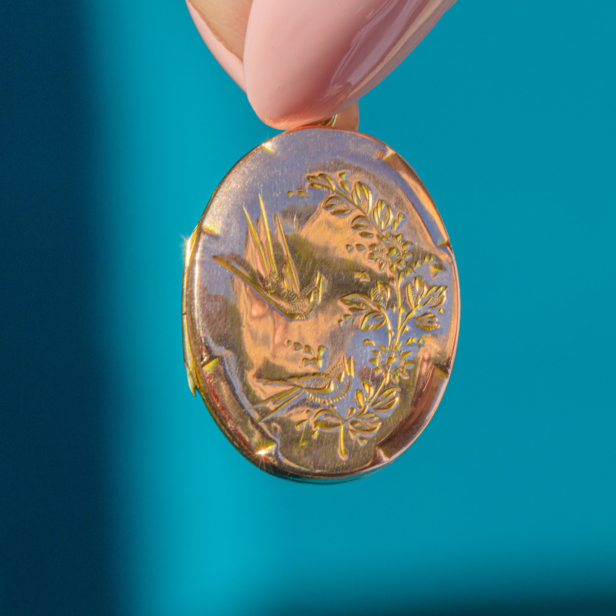 Swallow motifs were often depicted in jewellery during the 19th and early 20th centuries due to their representation of good luck and positive change. The inside of the locket can hold two treasured photos within its frames, allowing its recipient to keep loved ones close to them at all times!