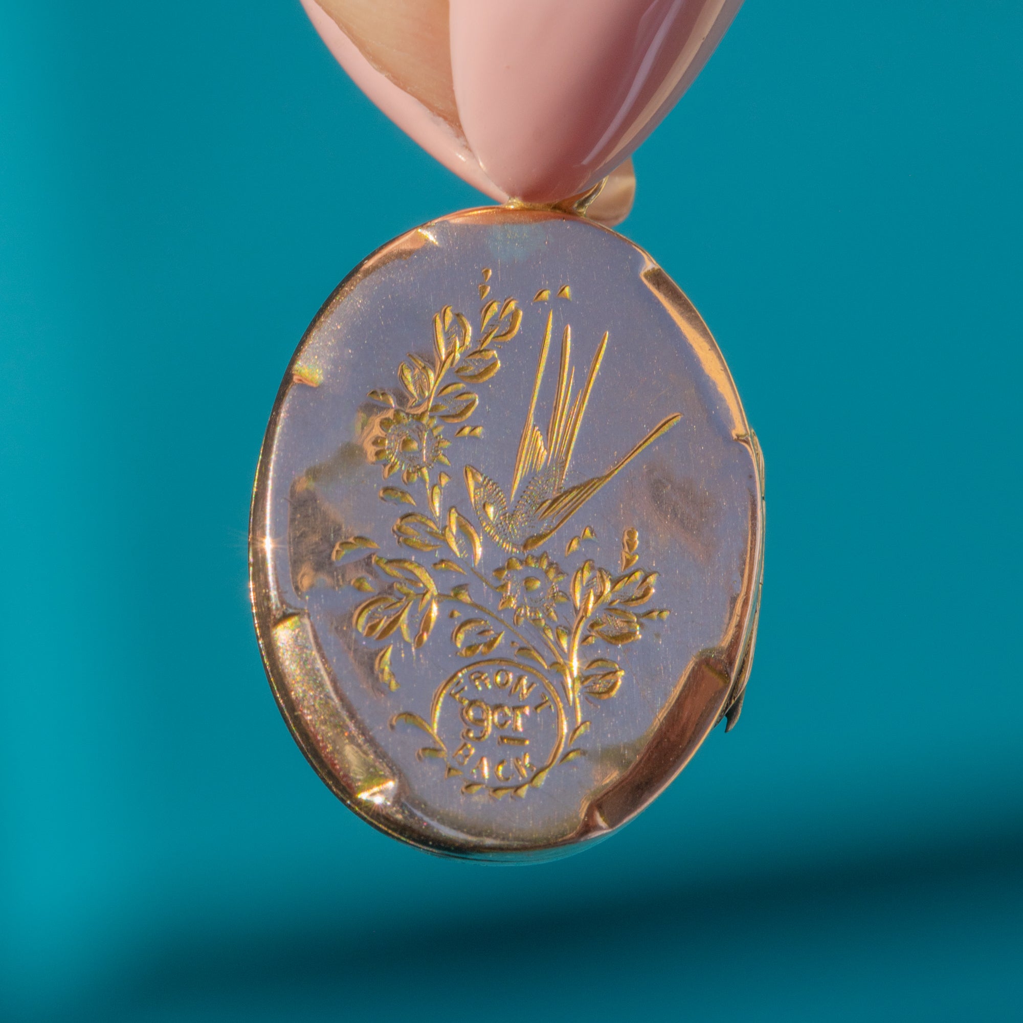 Antique 9ct Gold Engraved Swallow Oval Locket