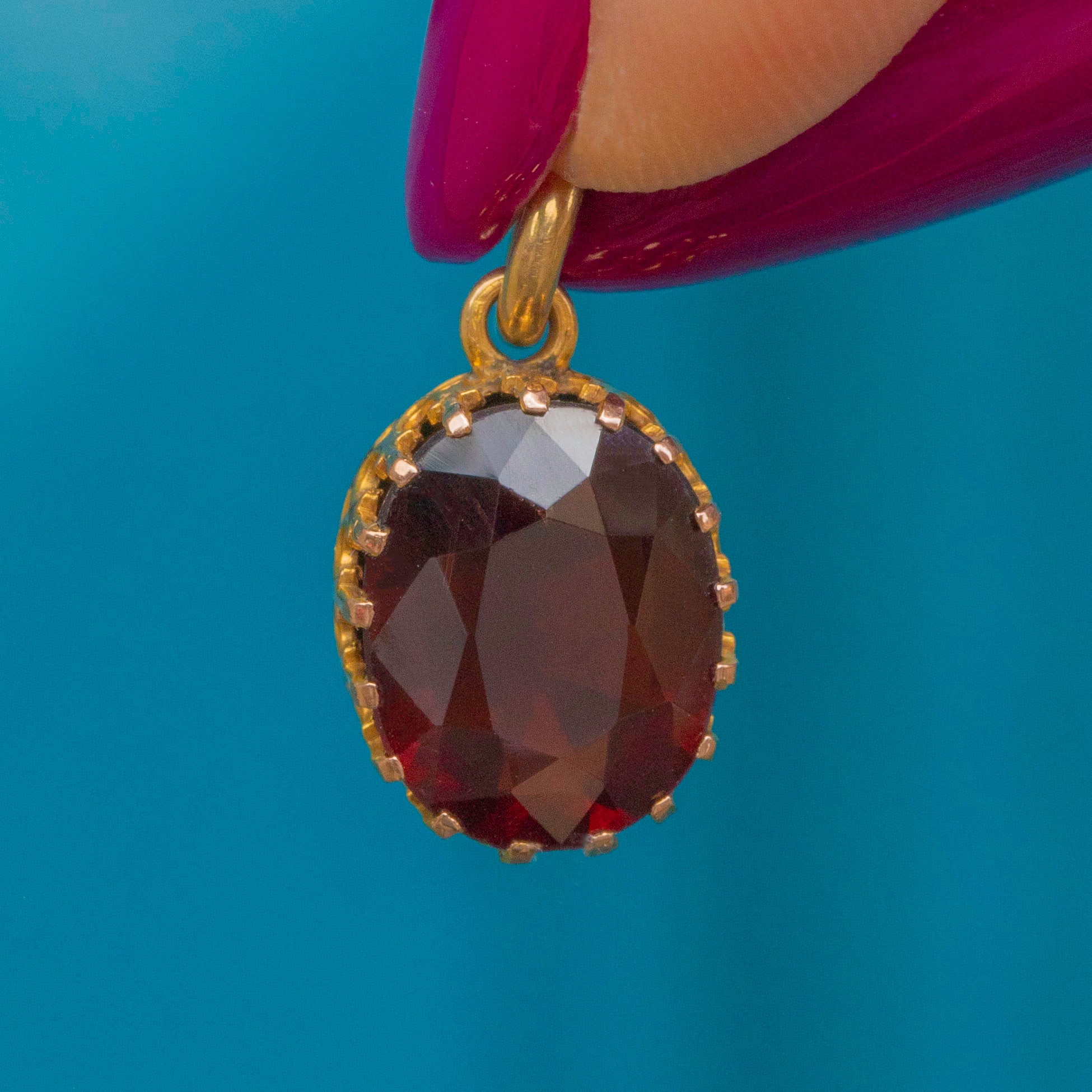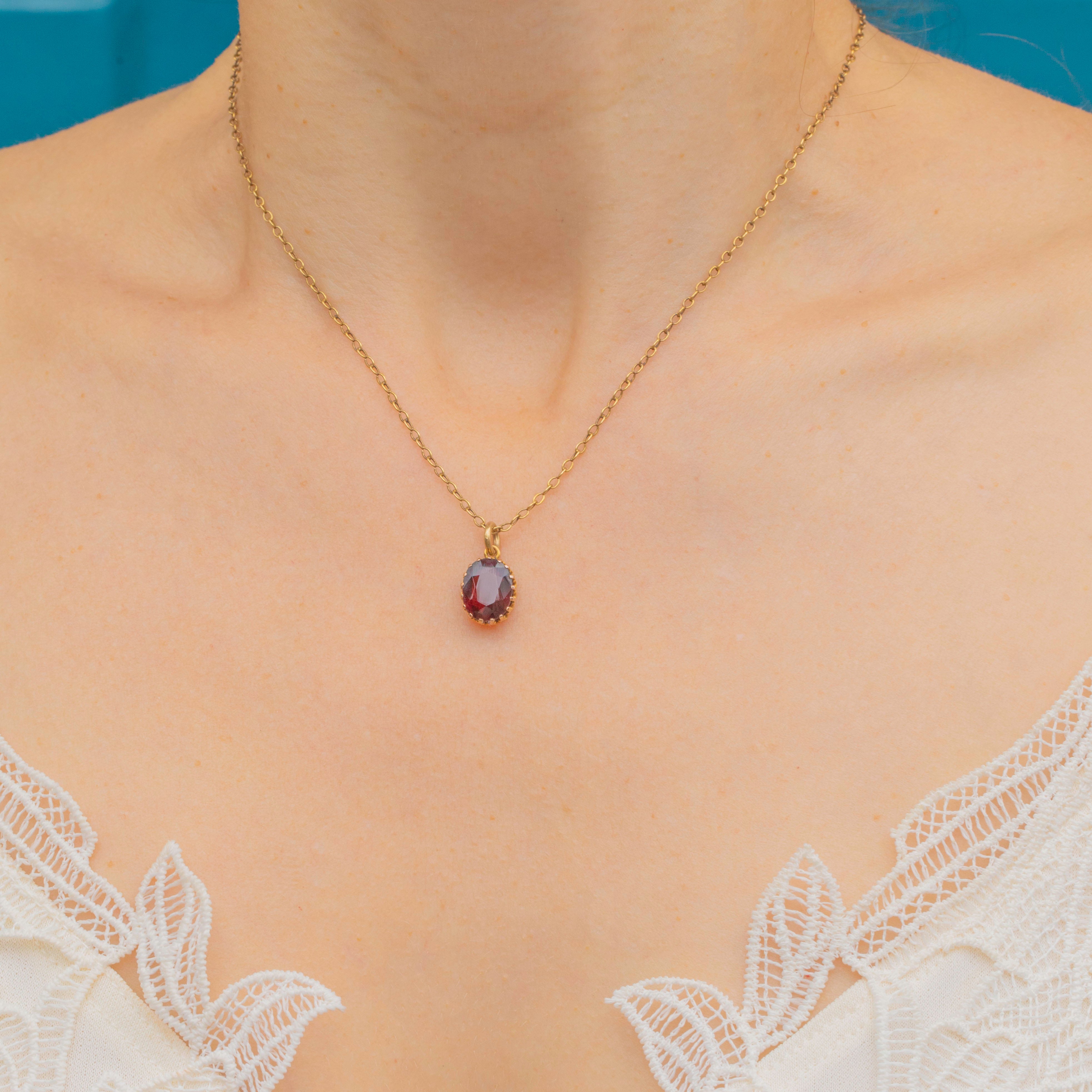 EXCELLENT: The Garnet has been faceted beautifully and is free from any nibbles or notable signs of wear. It is secure within its 9ct Gold settings and is complete with a soldered jump ring, allowing you to wear this antique pendant with utmost confidence.