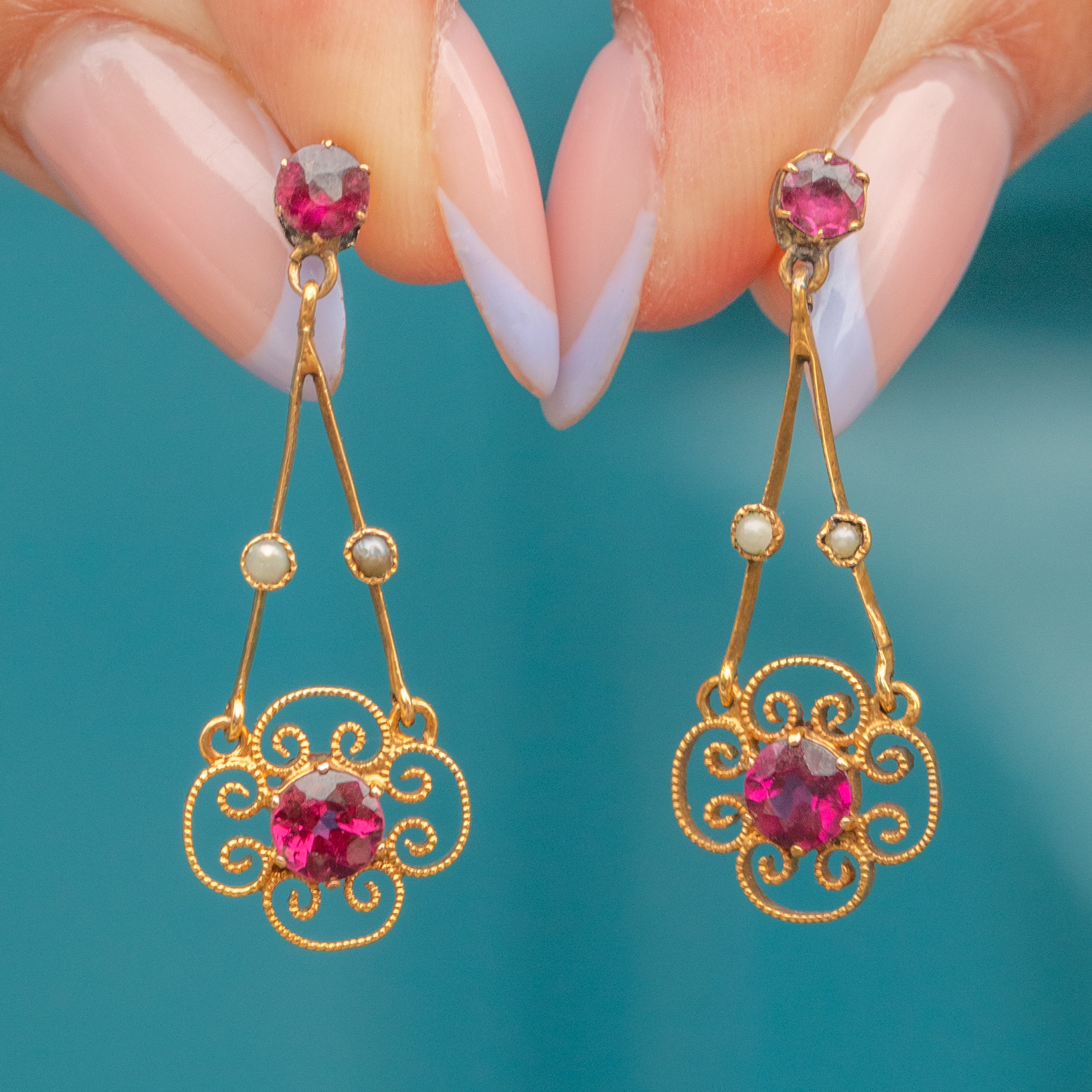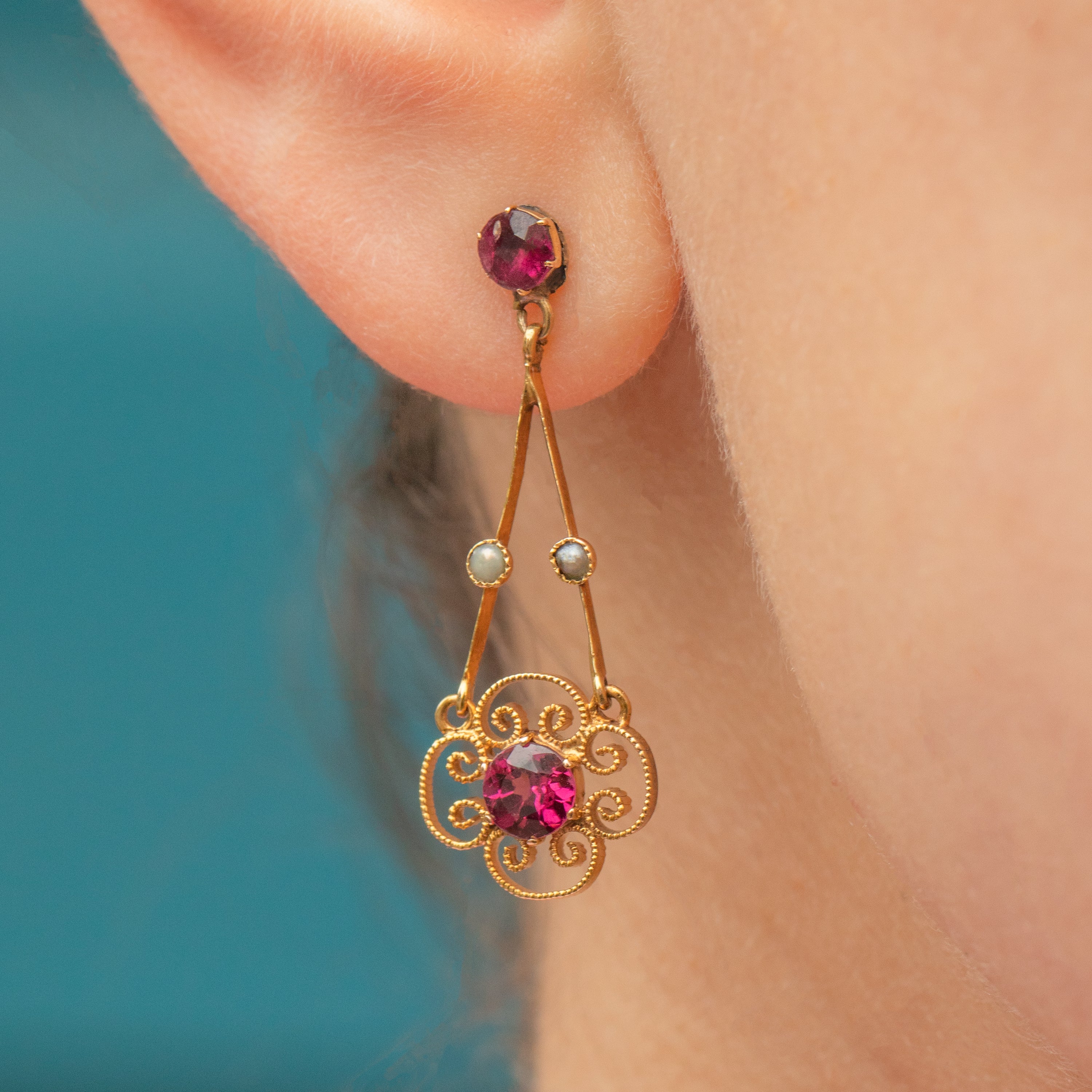 Overall, the earrings retain their enchanting beauty and period charm. The Garnets still glow with rich warmth, and the delicate Pearls lend a soft, romantic elegance. A graceful and wearable piece of history, perfect for lovers of antique treasures.