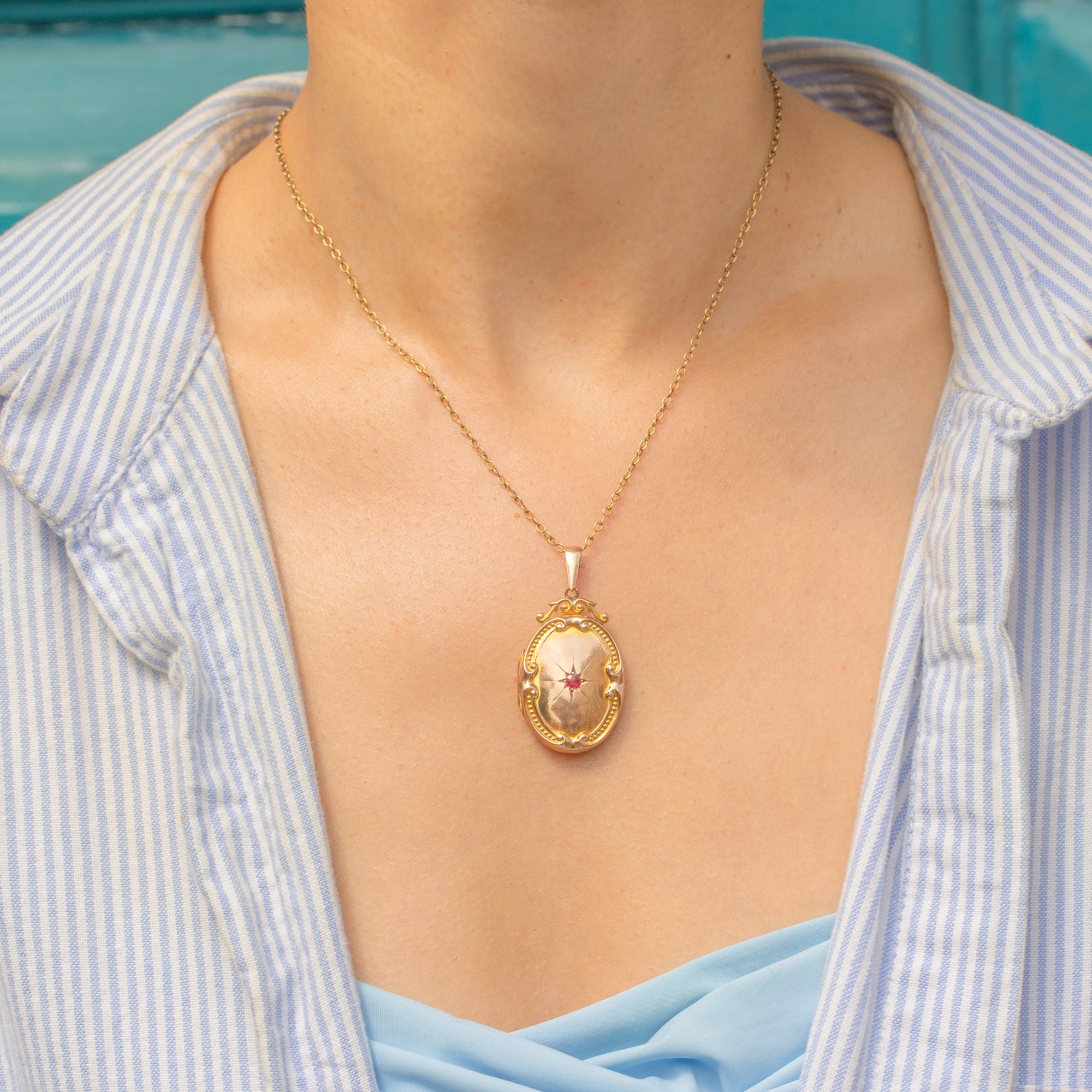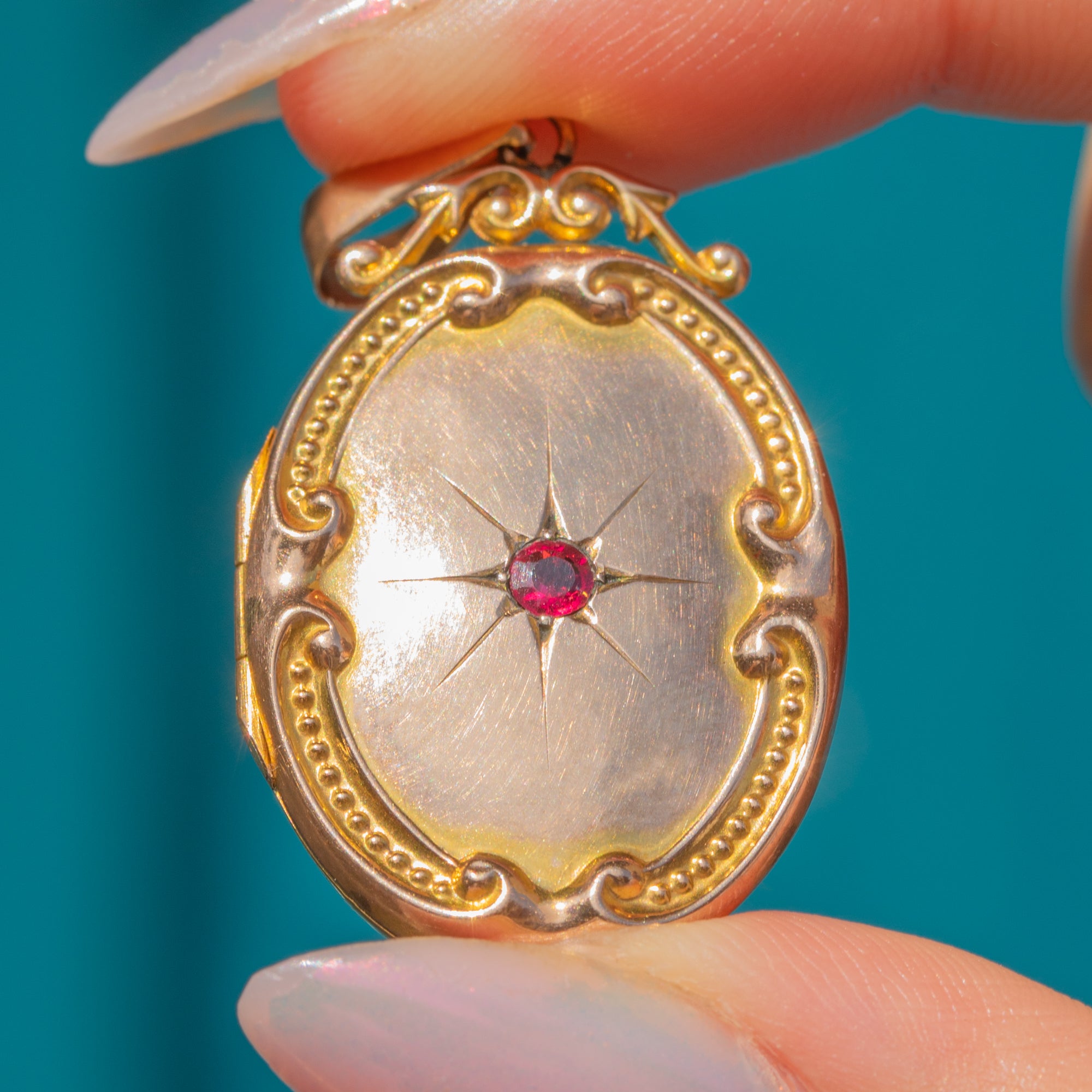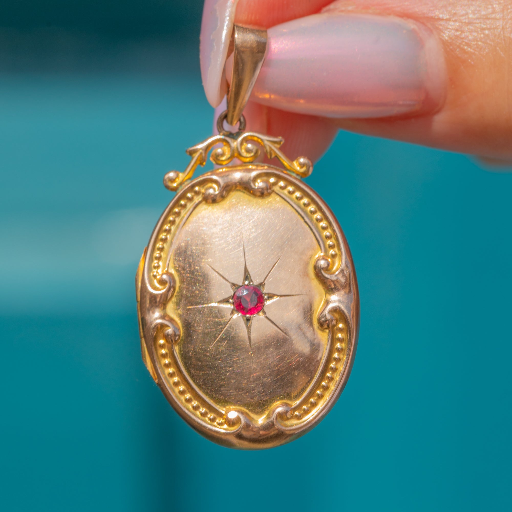 Antique 9ct Gold Garnet Star Set Oval Locket