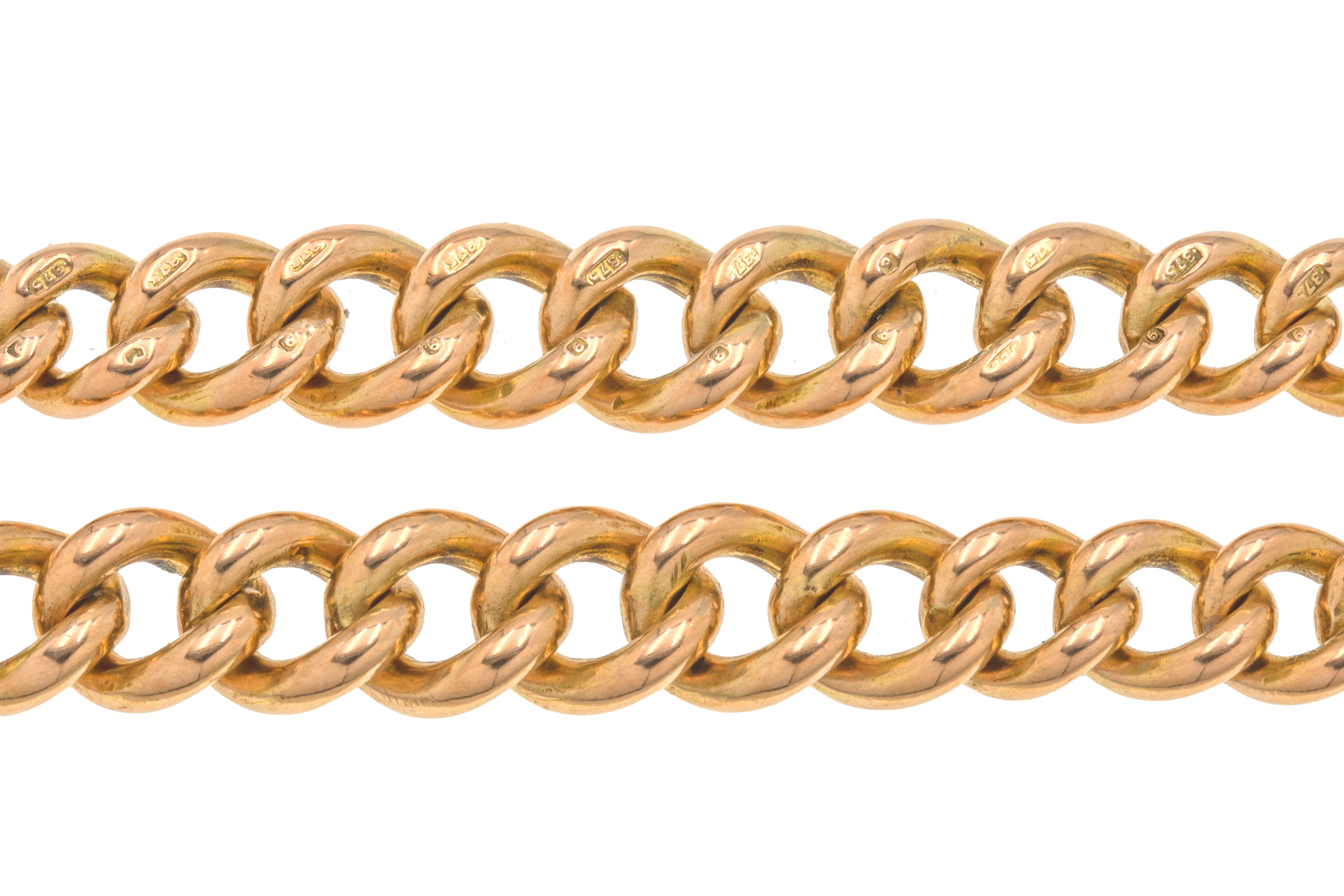 This Victorian Gold chain has graduating curb links, with a wonderfully slinky feel as she glides through your hands. You can find stamps on every single link- a tell tale sign of a high-quality antique chain. An antique Gold Albert chain is a must-have within any jewellery box, and with this piece featuring two matching antique Gold dog-clips, you can even suspend a charm or two to add your own personal touch!