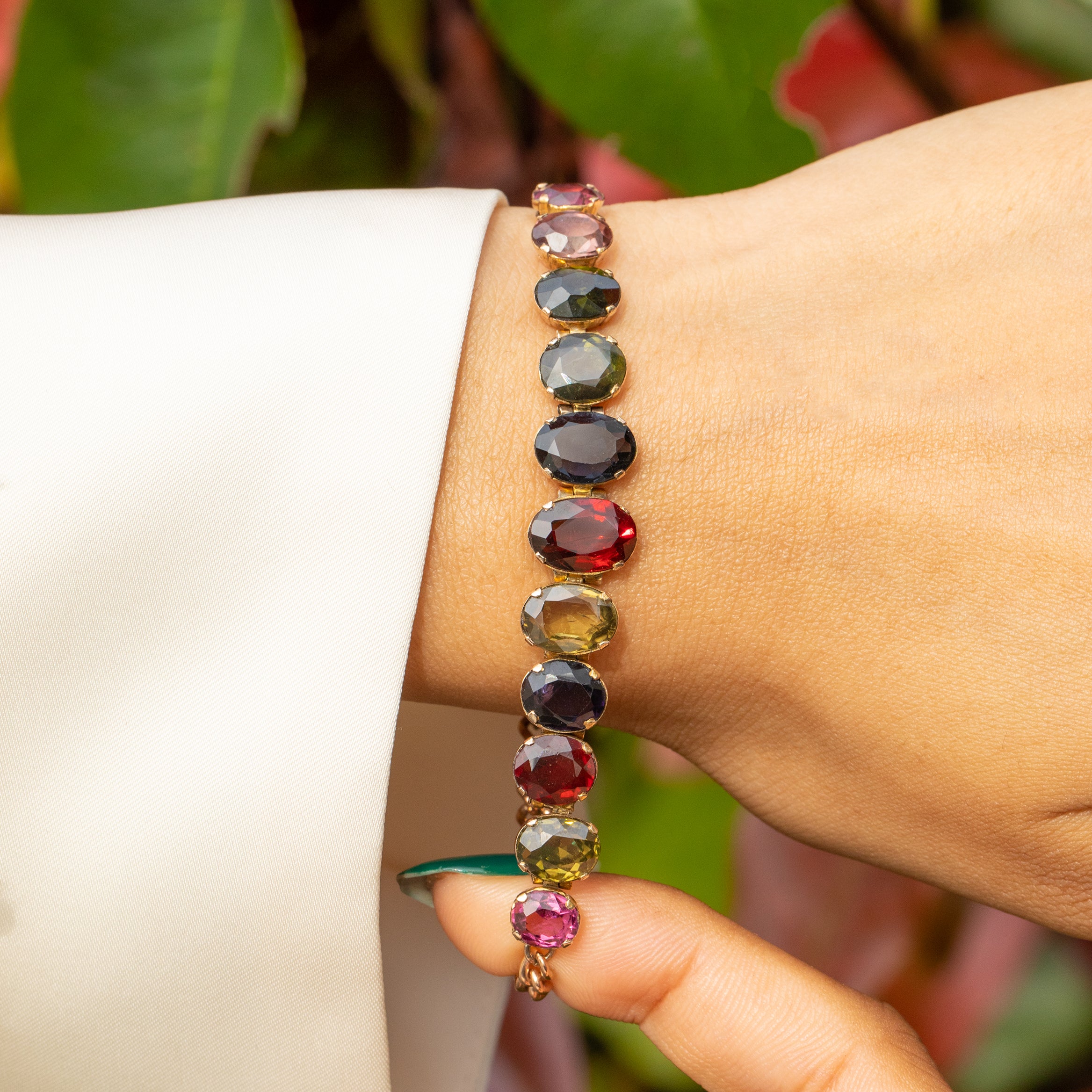 Antique 9ct Gold Harlequin Gemstone Bracelet