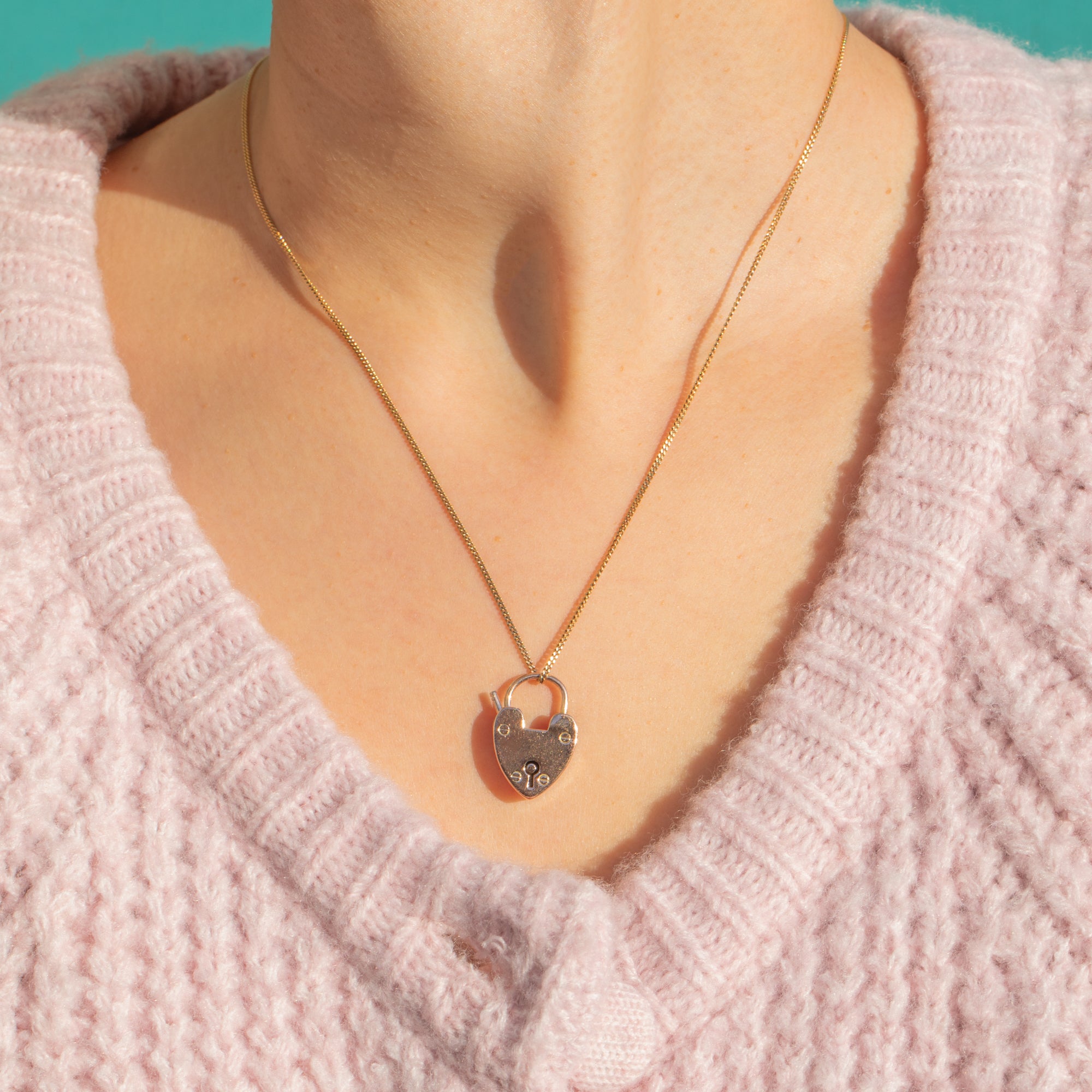 A classic Victorian sweetheart, this functional heart padlock charm is crafted in glowing 9ct Gold. The face is detailed with a pierced keyhole and tiny faux screw rivets; its softly rounded contours and warm hue make it an effortless everyday treasure.
