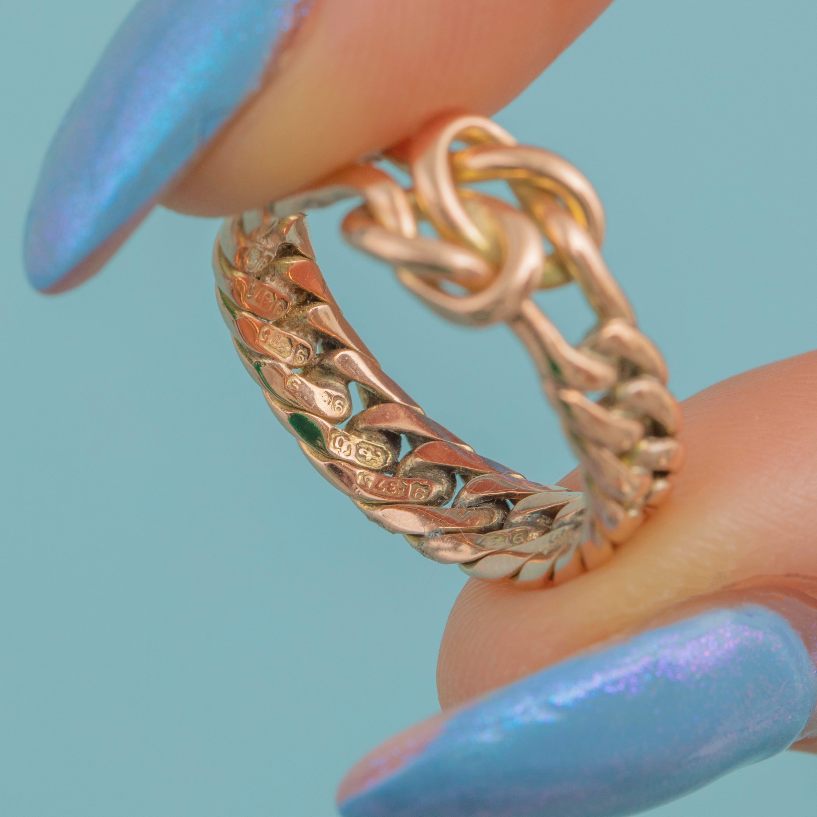 Antique 9ct Gold Lover's Knot Curb Link Ring