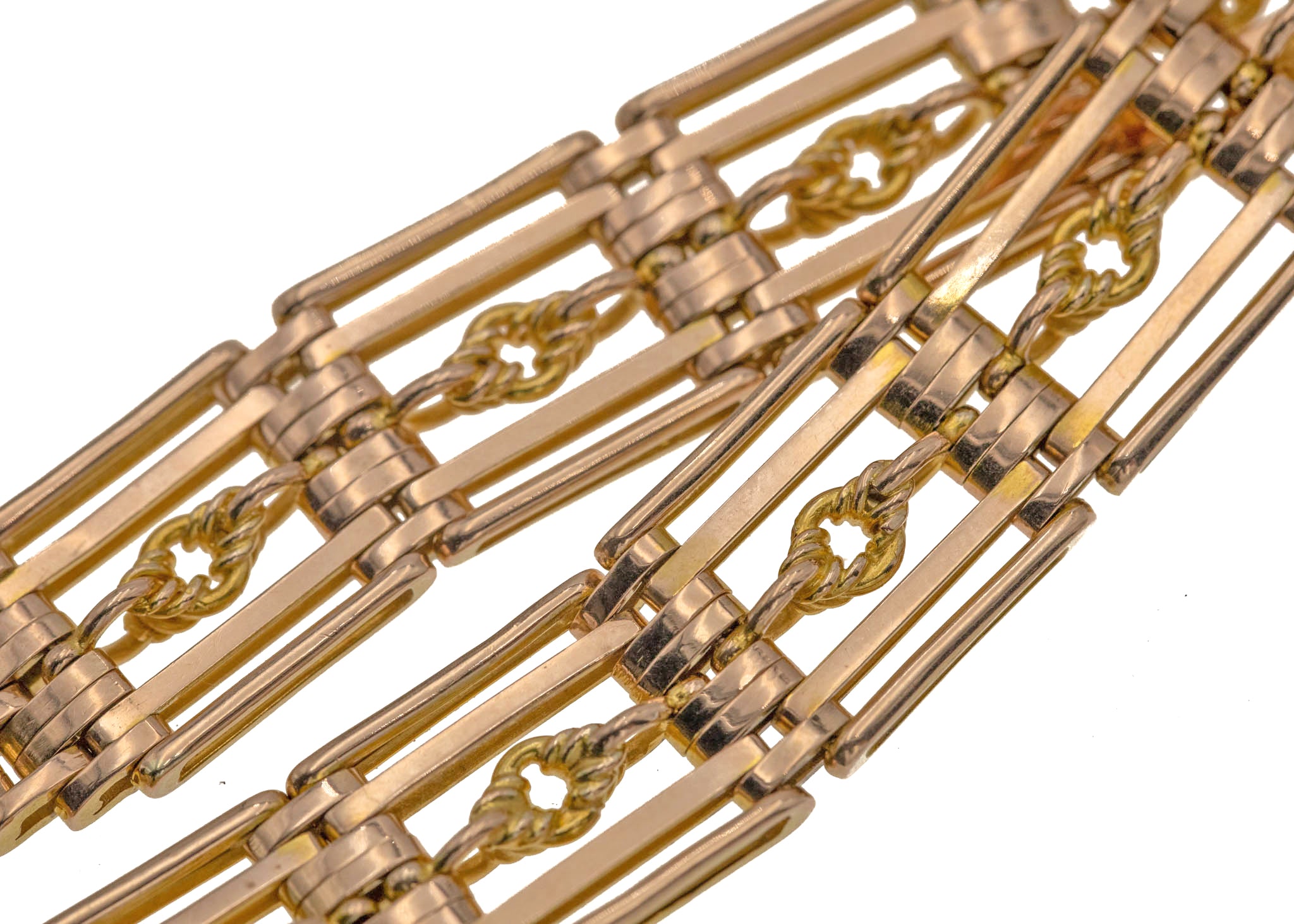 VERY GOOD-EXCELLENT. This antique 9ct Gold lover's knot gate bracelet is offered in fabulous condition. All of her links are securely connected and have kept their shape beautifully over the years. The Gold is bright and glossy throughout, and there is only the lightest signs of wear to the piece, commensurate with age. Her heart padlock is firmly affixed to the bracelet, and her hinge mechanism is in fine working order too.