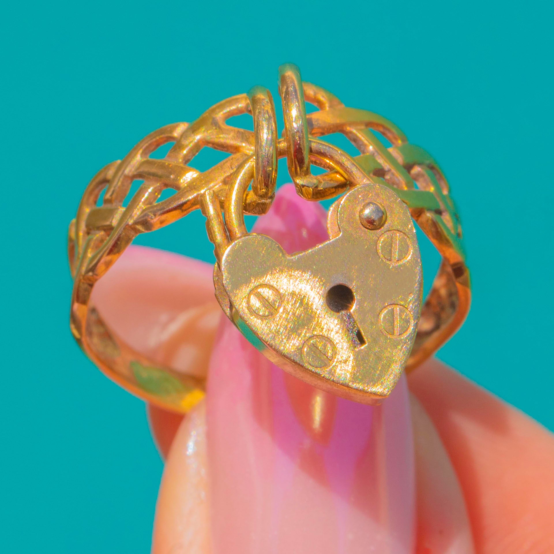 Antique 9ct Gold Lover's Knot Heart Padlock Ring