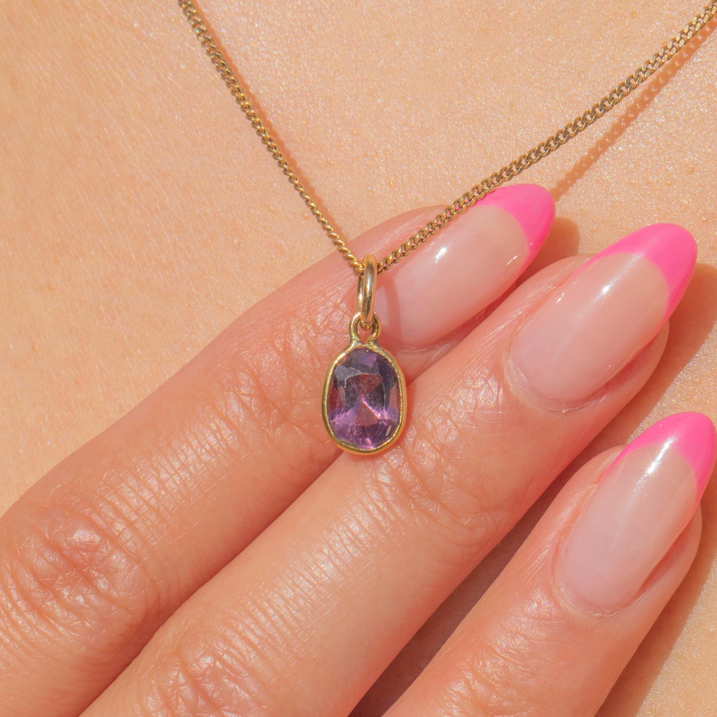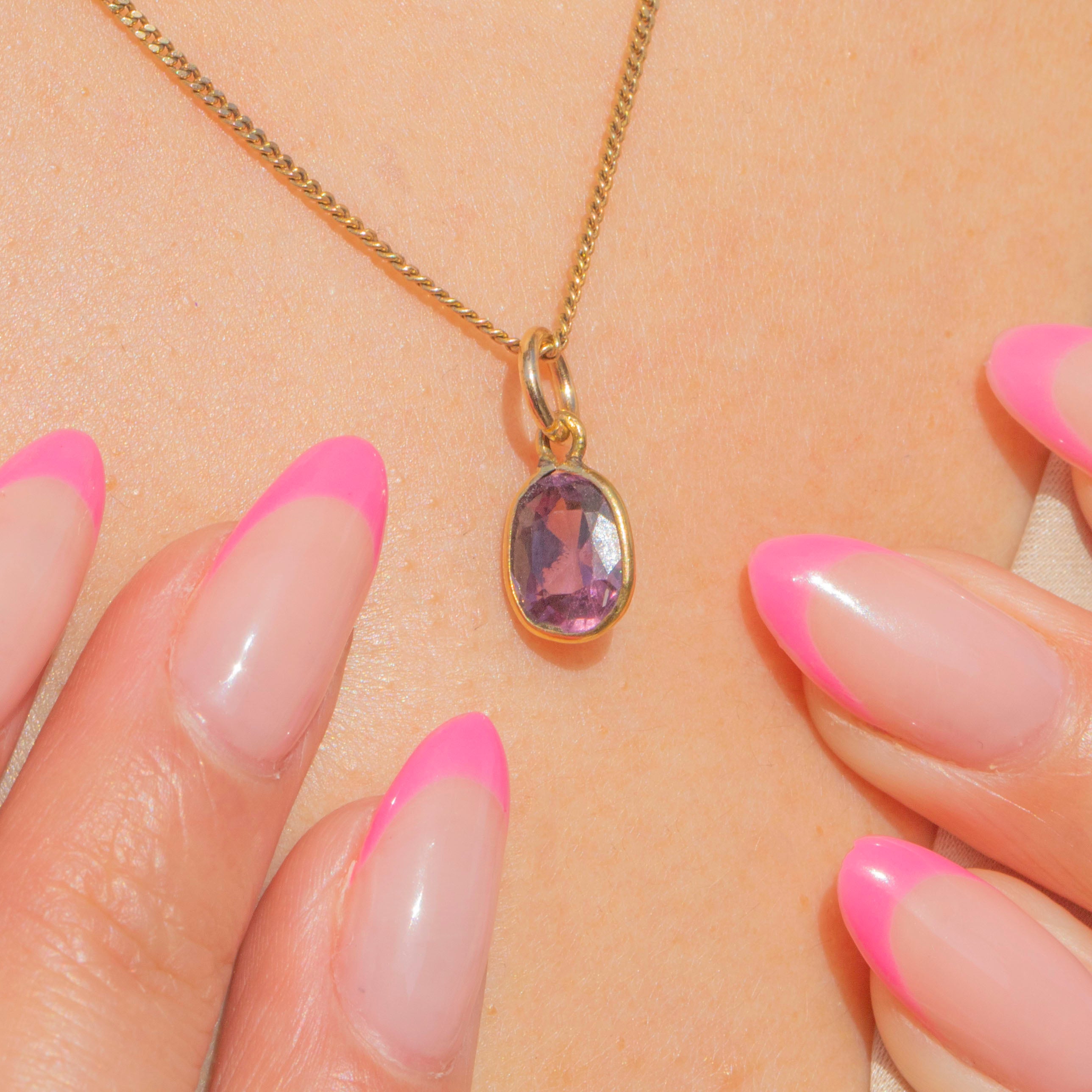 Radiating soft lavender hues, this antique Spinel charm is the perfect piece to add a subtle pop of colour to your attire. She is hugged by a buttery 9ct Gold bezel, with the warmth effortlessly complementing the cool-toned Spinel.