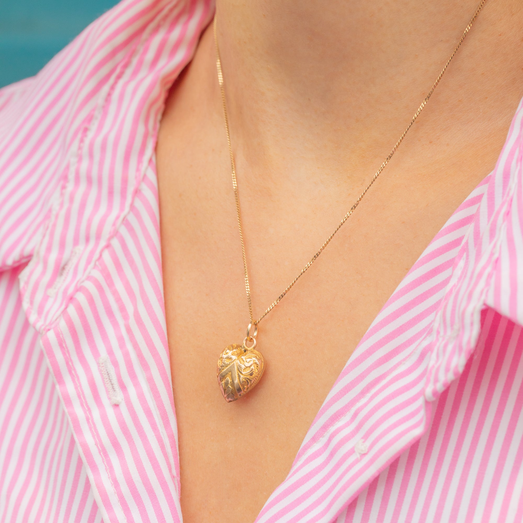 The raised swirling patterns provide a lovely texture and depth, catching the light beautifully. A timeless symbol of love, this antique Gold heart pendant would make the perfect gift choice!