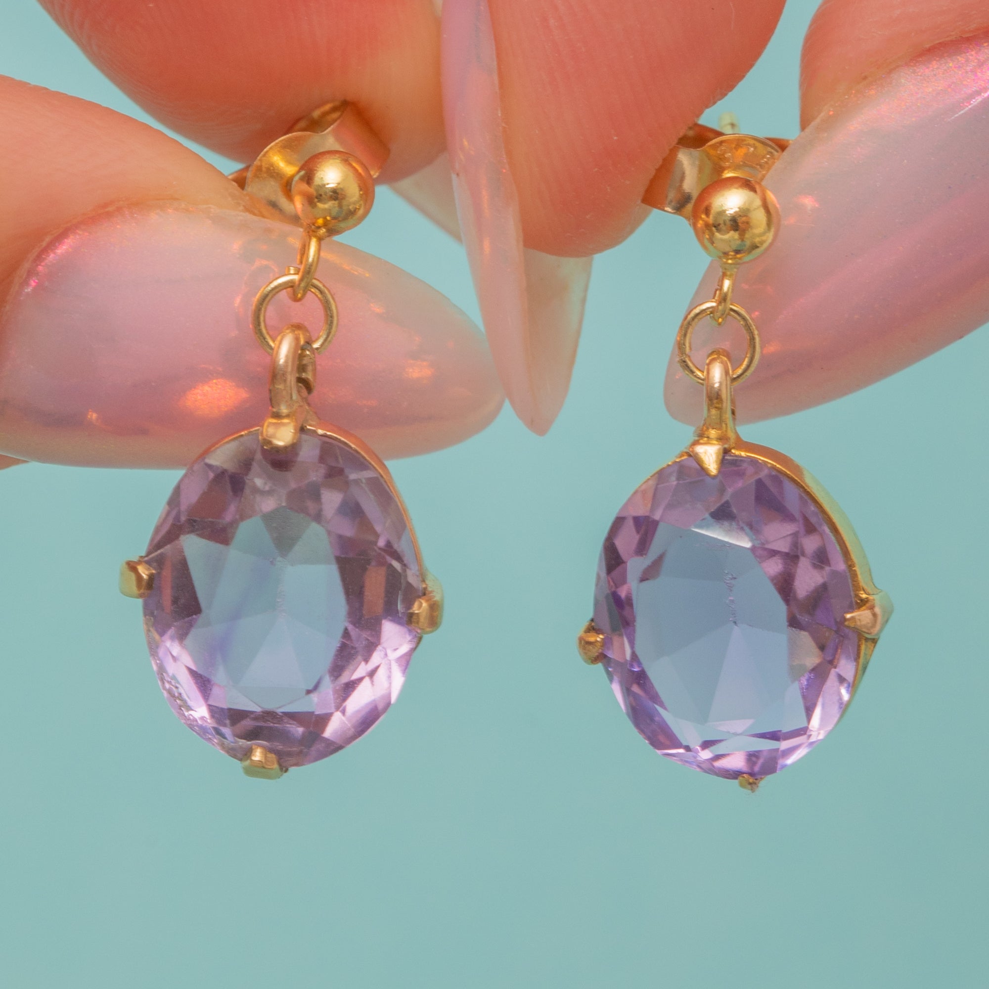 These Victorian 9ct Gold Rose de France Amethyst earrings will elegantly adorn your lobes!