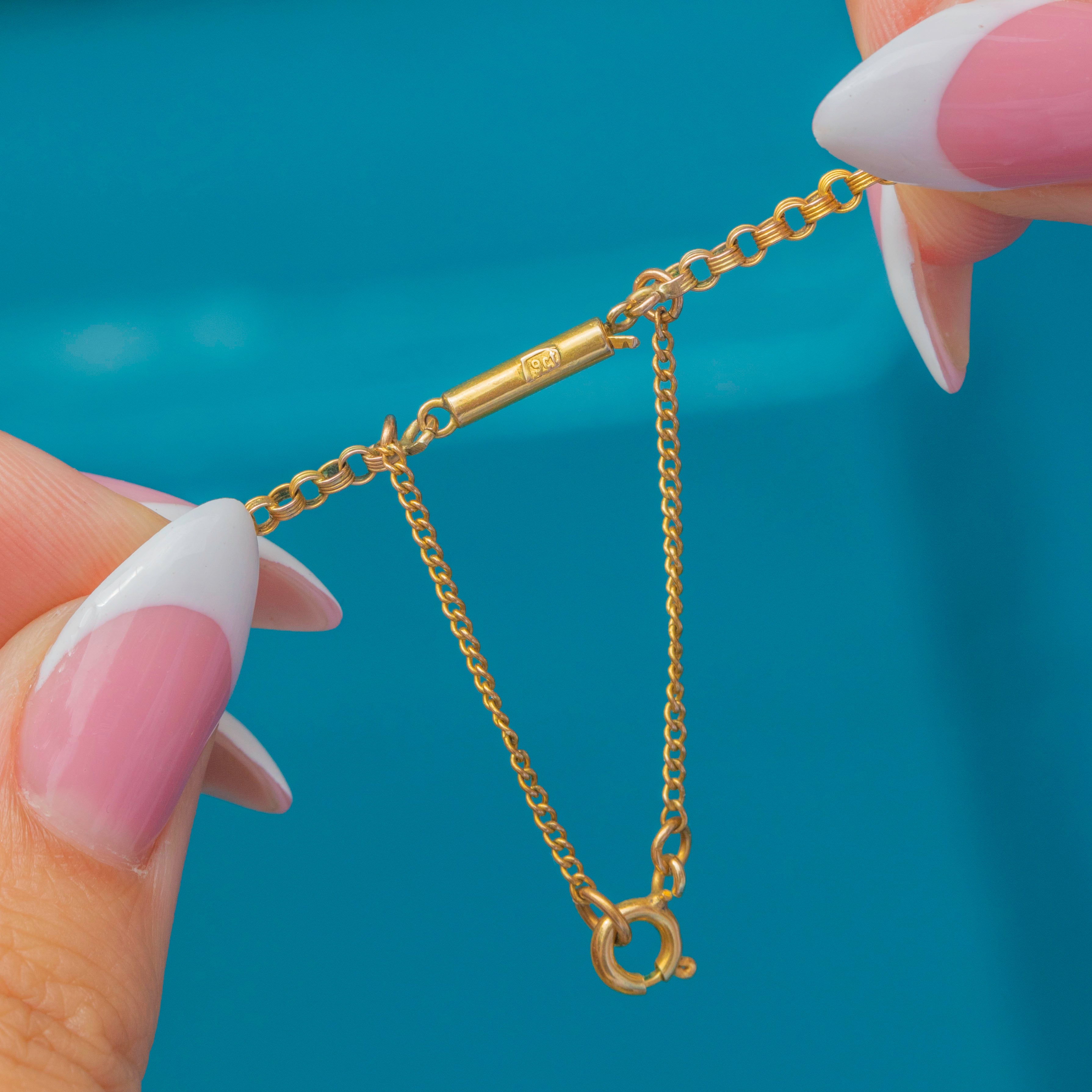 Stamped “9CT” on the back of the floral settings and barrel clasp, this Victorian necklace is a superb example of late 19th-century craftsmanship; it's romantic, refined, and perfect for special occasions!