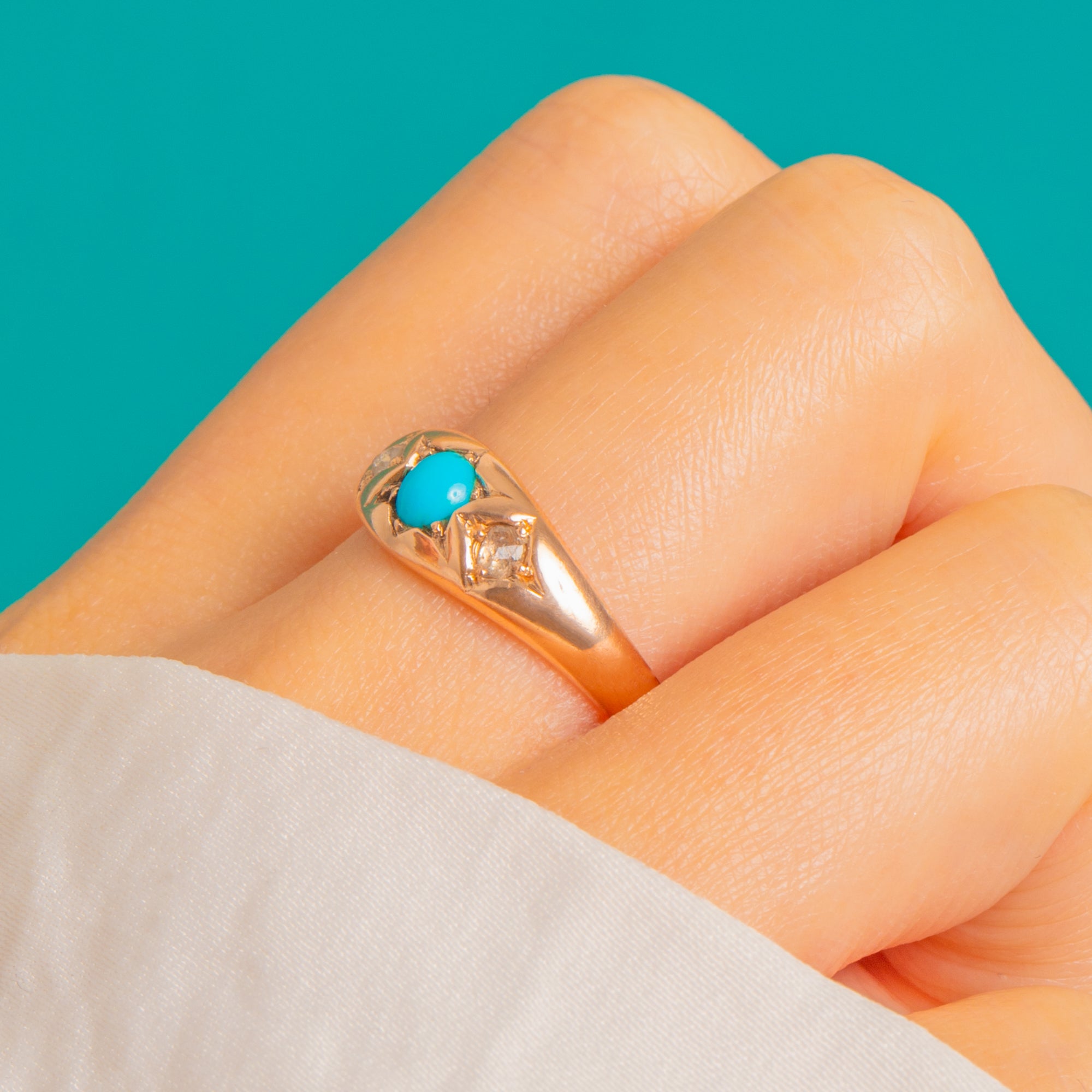 Antique 9ct Gold Turquoise Rose-Cut Diamond Star-Set Stacking Ring