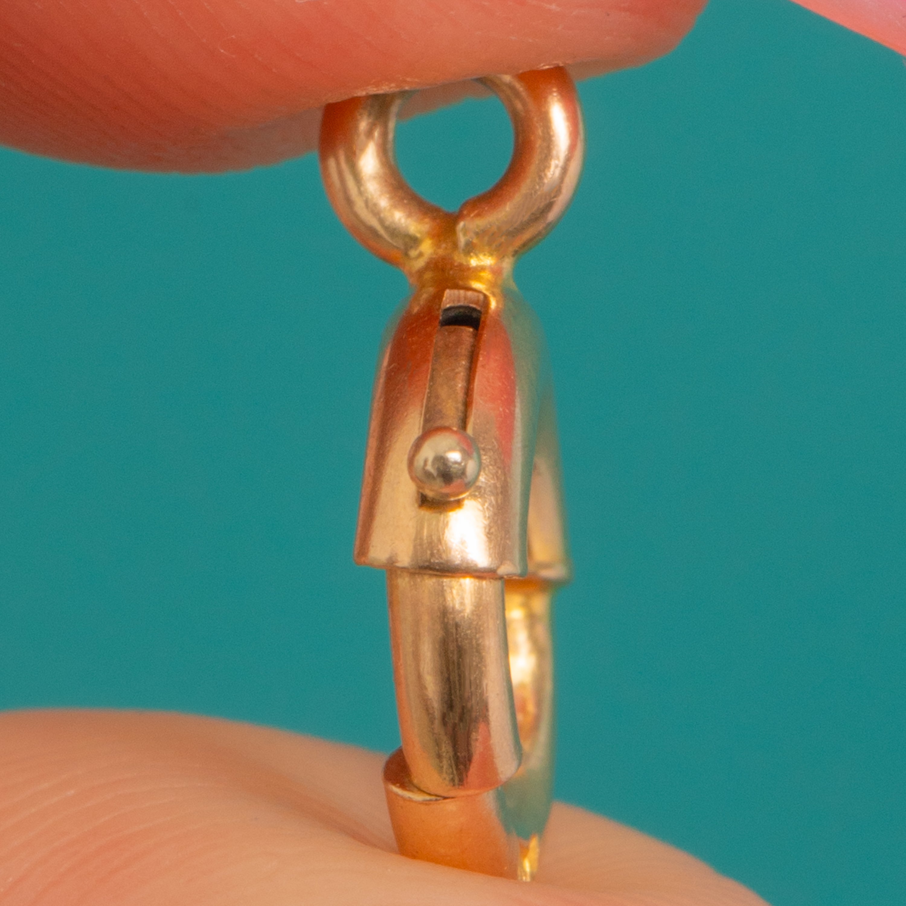 A timeless Victorian bolt-ring clasp crafted in bright 9ct Yellow Gold. Sleek, minimalist and beautifully made, its polished tubular form offers that chic utilitarian look we adore from antique findings.