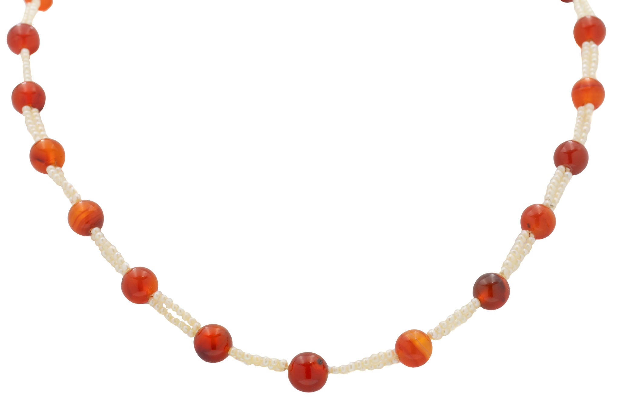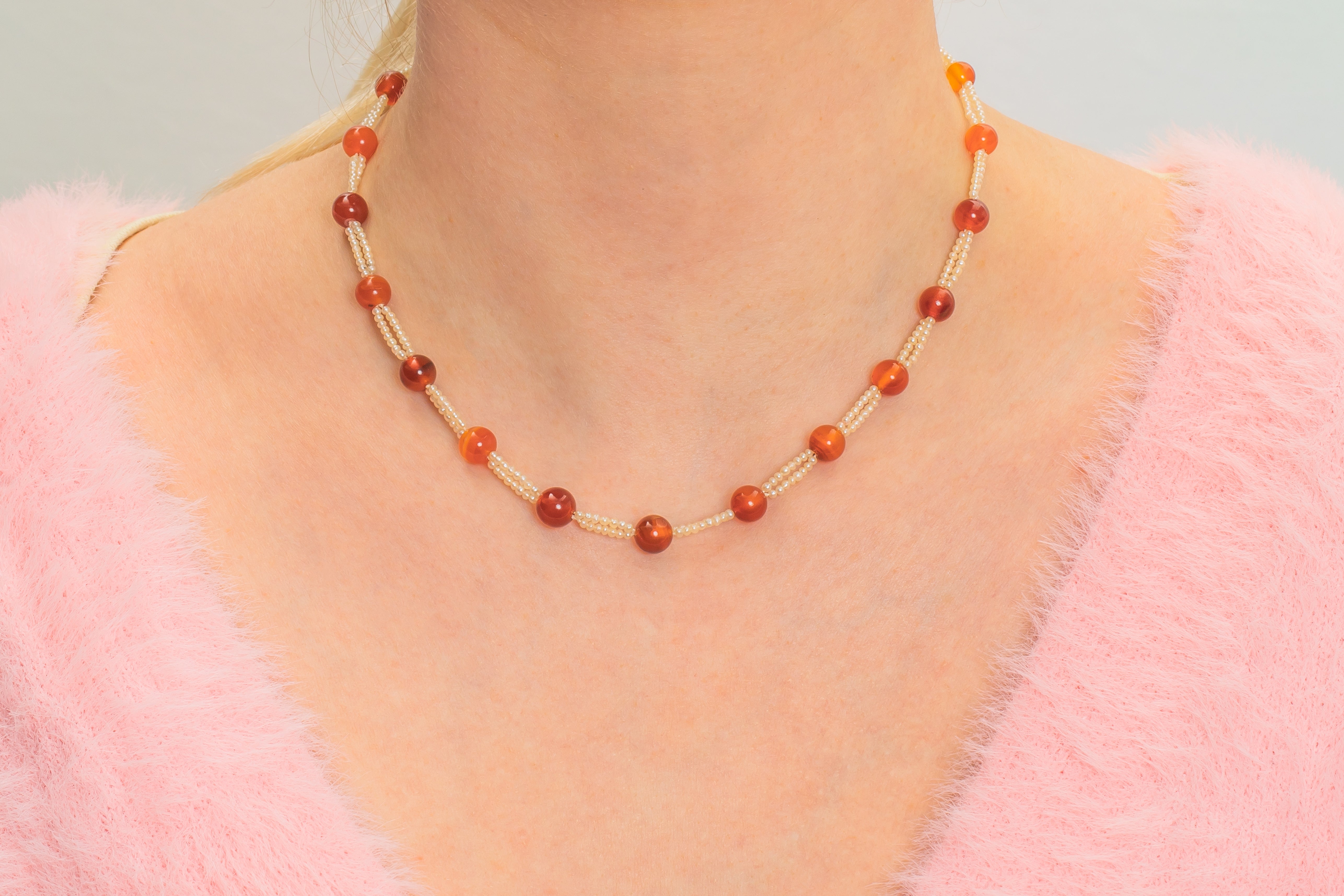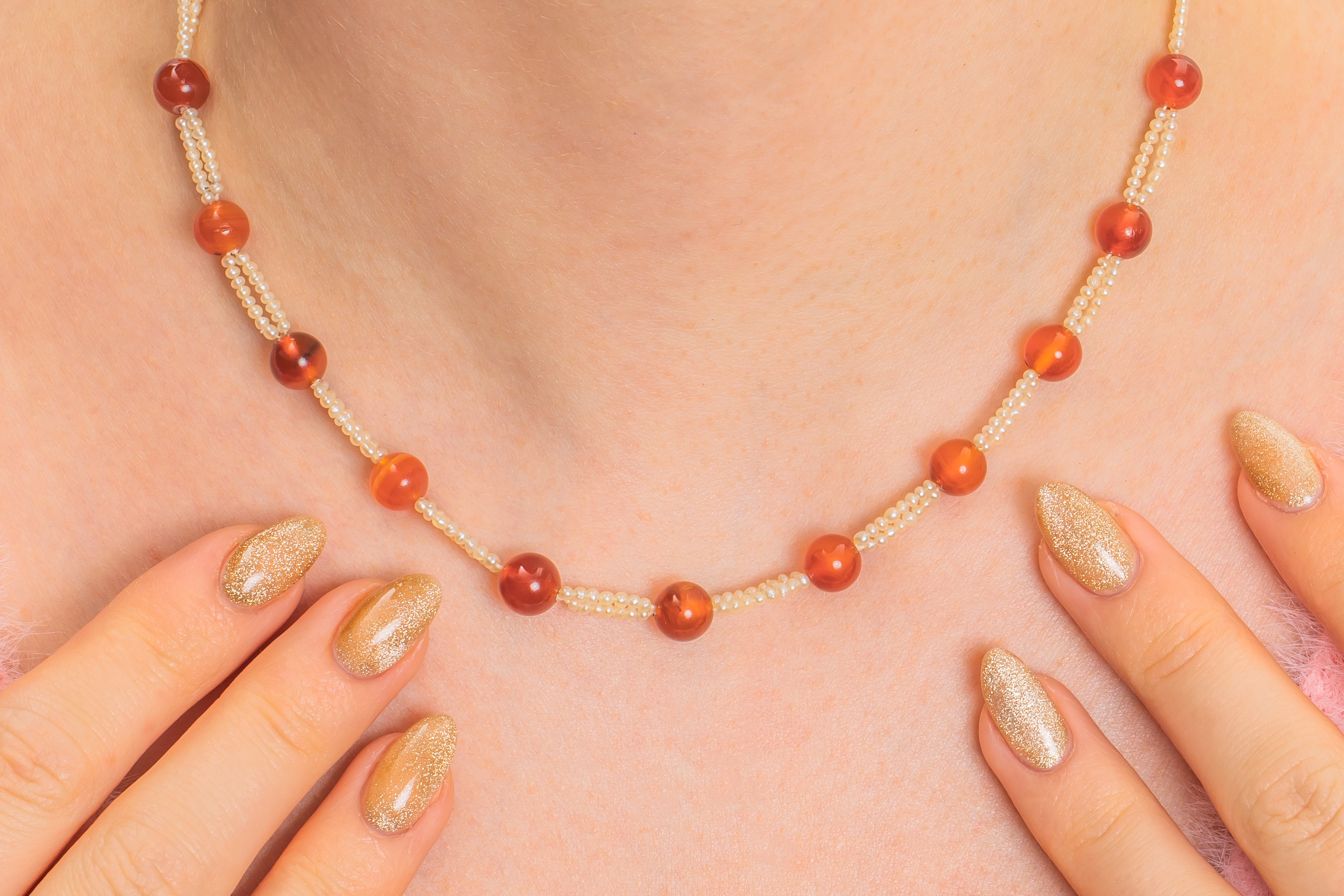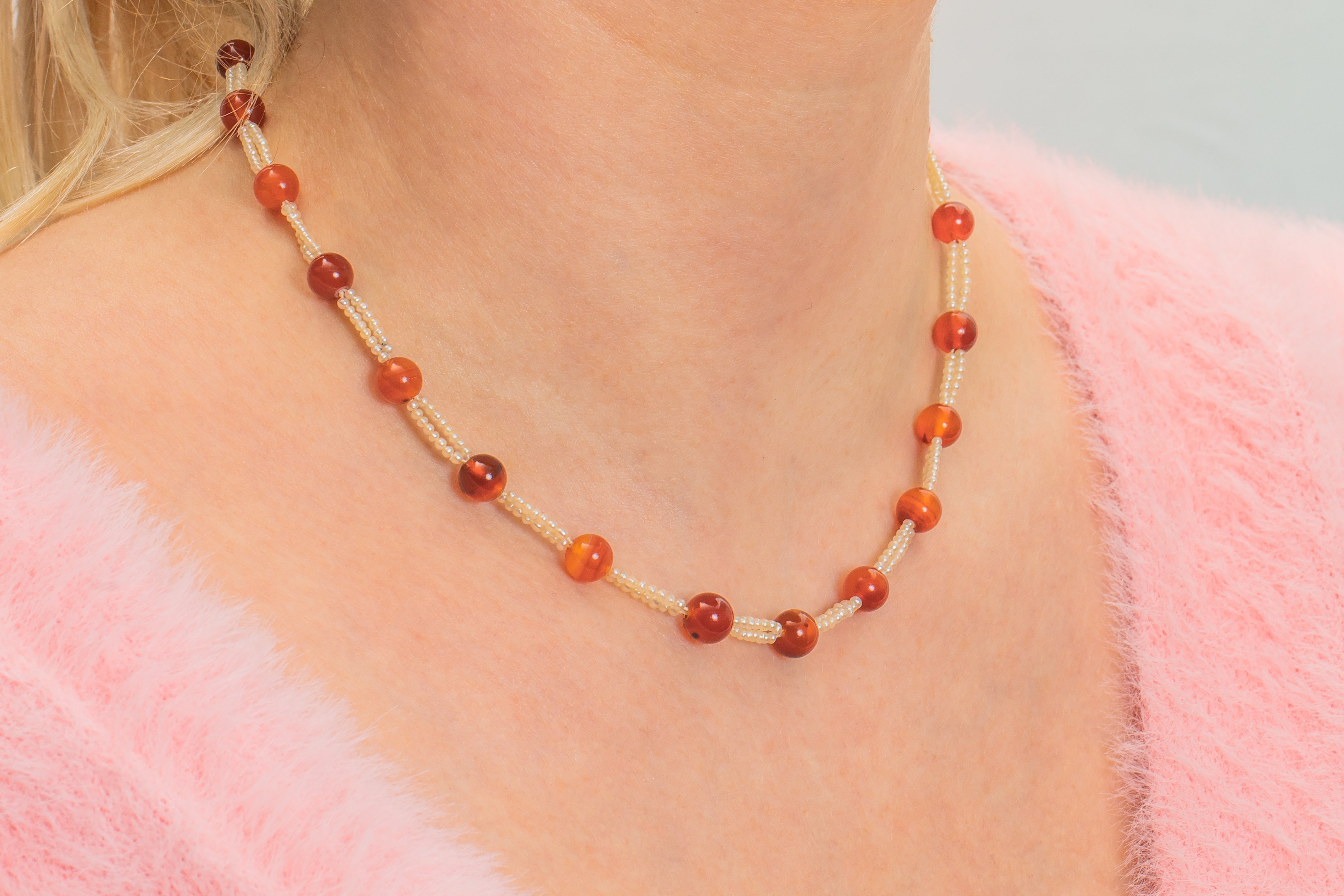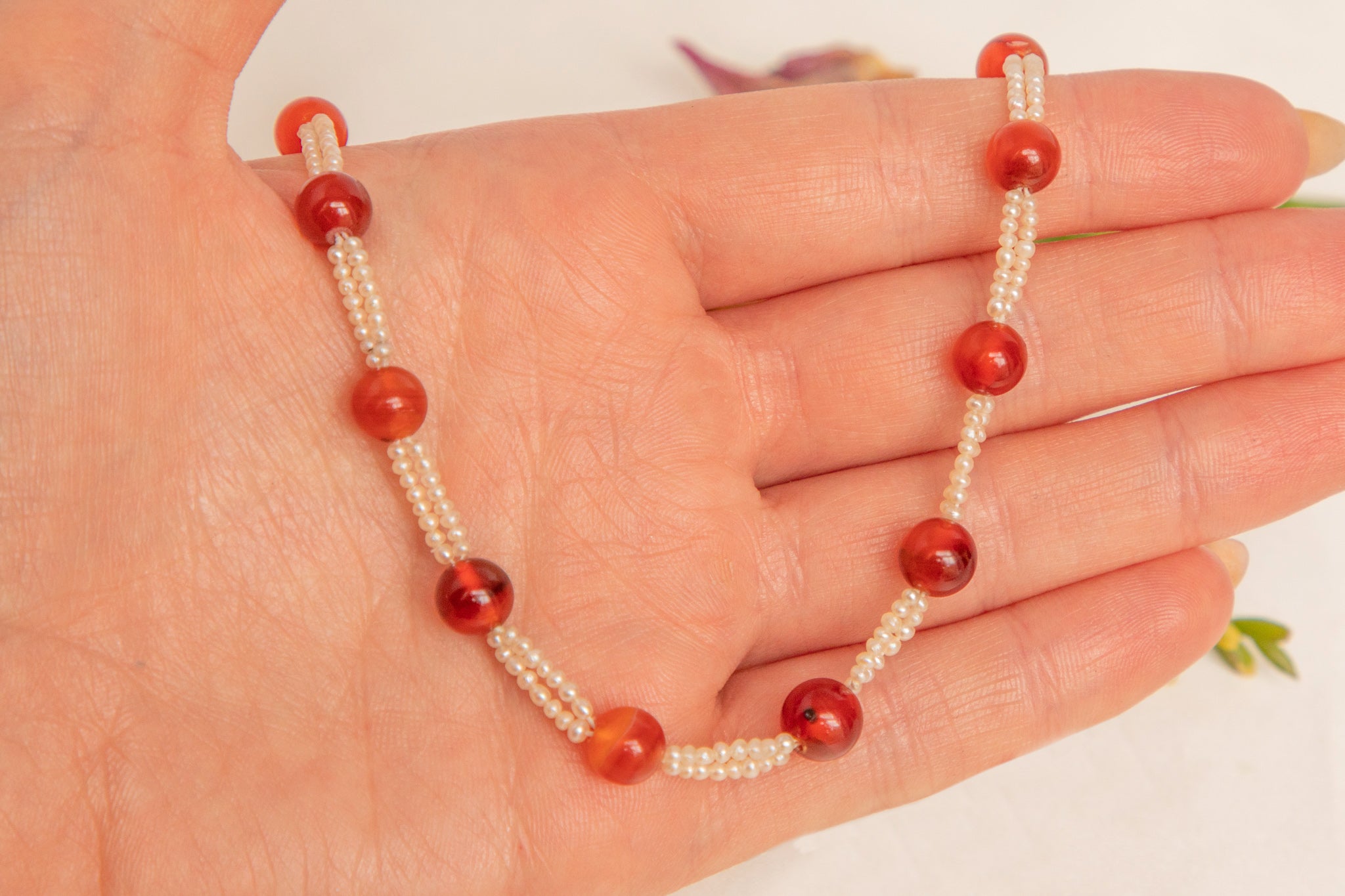 This divine antique Carnelian Pearl beaded necklace is an exemplary treasure from the Victorian period to have within your collection! Formed of Carnelian beads, rich with a myriad of burnt orange hues, they are intwined with dainty shimmering Pearls threaded onto two strands.