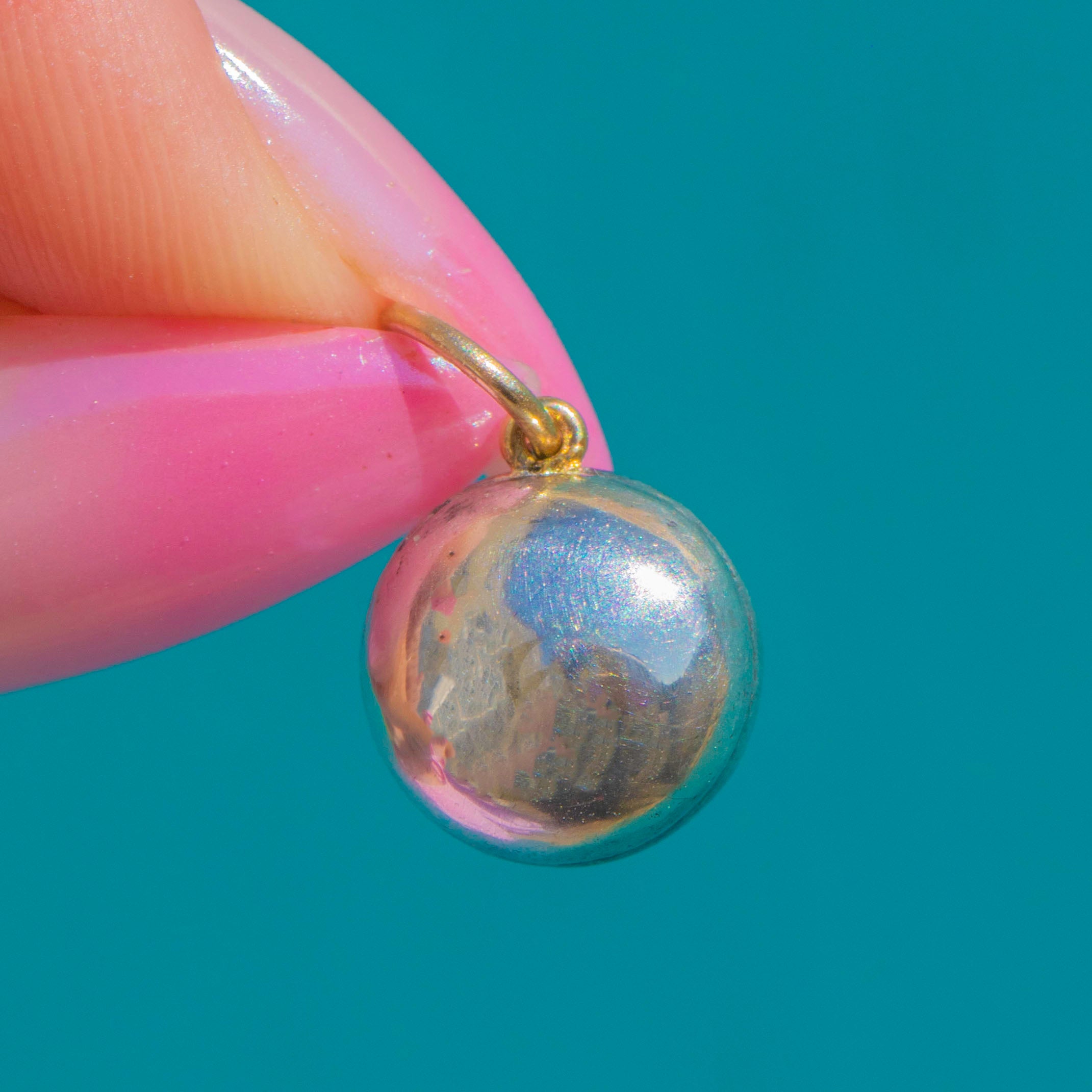 A luminous Georgian Silver foiled Rock Crystal charm, petite yet full of presence. The round Rock Crystal sits in a smooth bezel, its foil backing magnifying the stone’s watery brilliance with that soft, romantic glow collectors adore. Subtle mixed metals—Silver with a touch of 9ct Gold—lend an elegant contrast that feels timeless and chic.