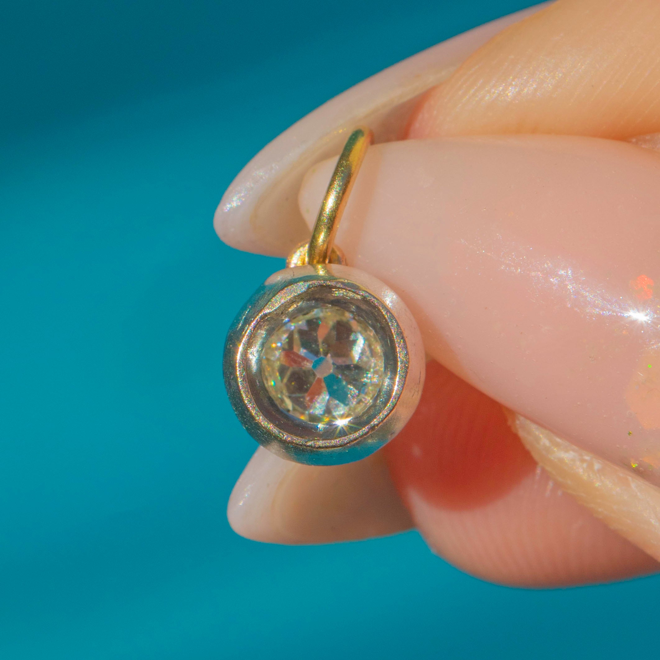 Antique Old Mine Cut Diamond Charm 0.30ct- 18ct Gold & Silver