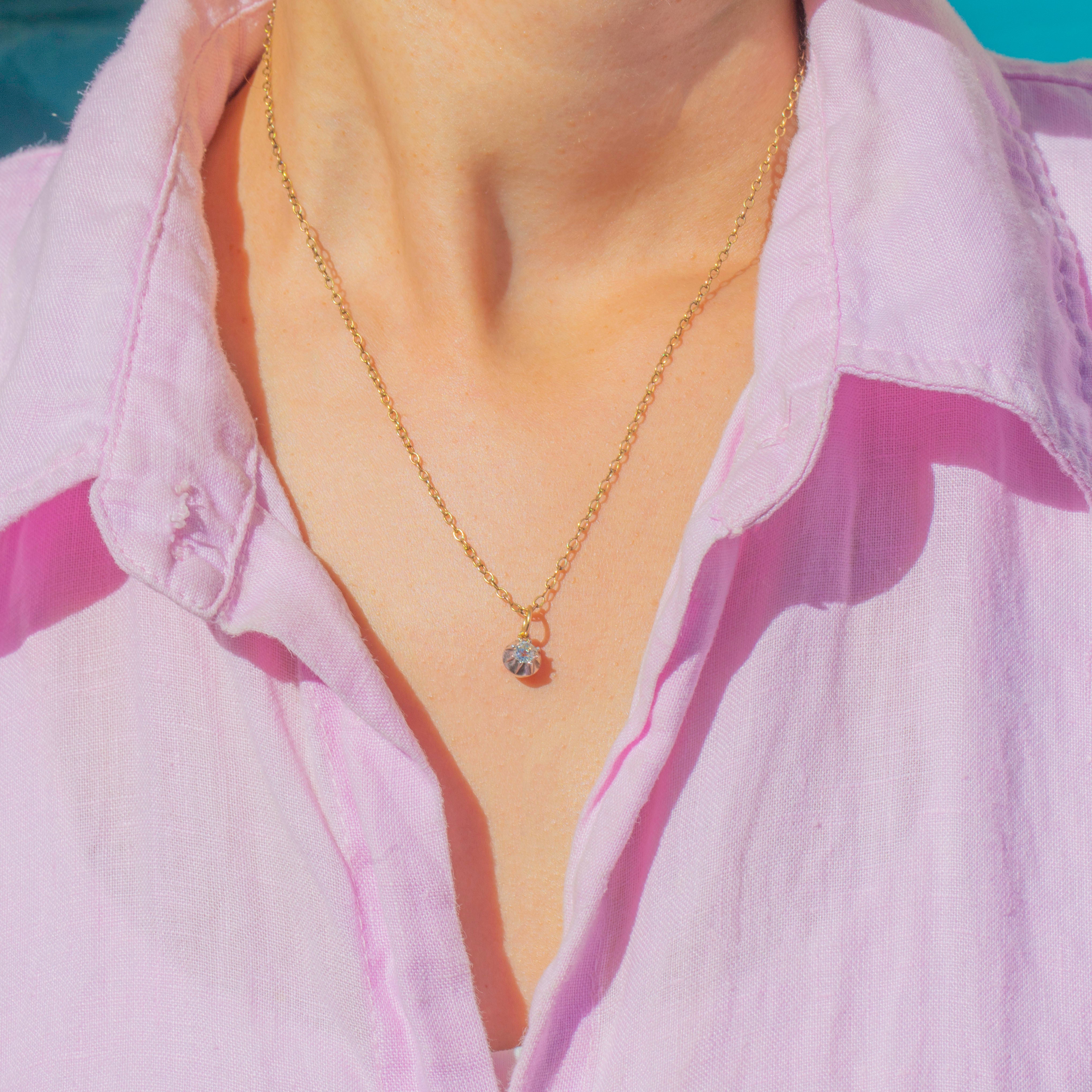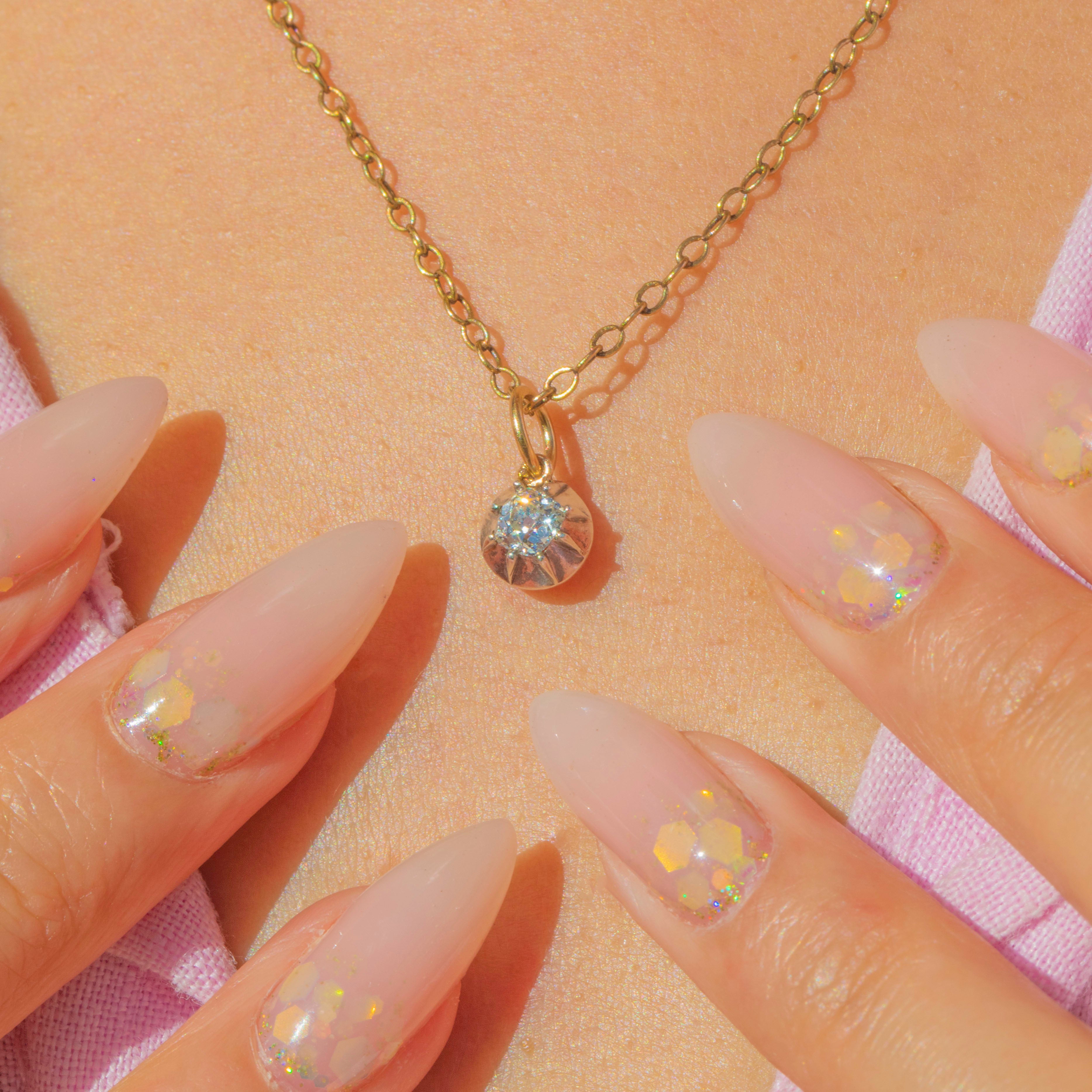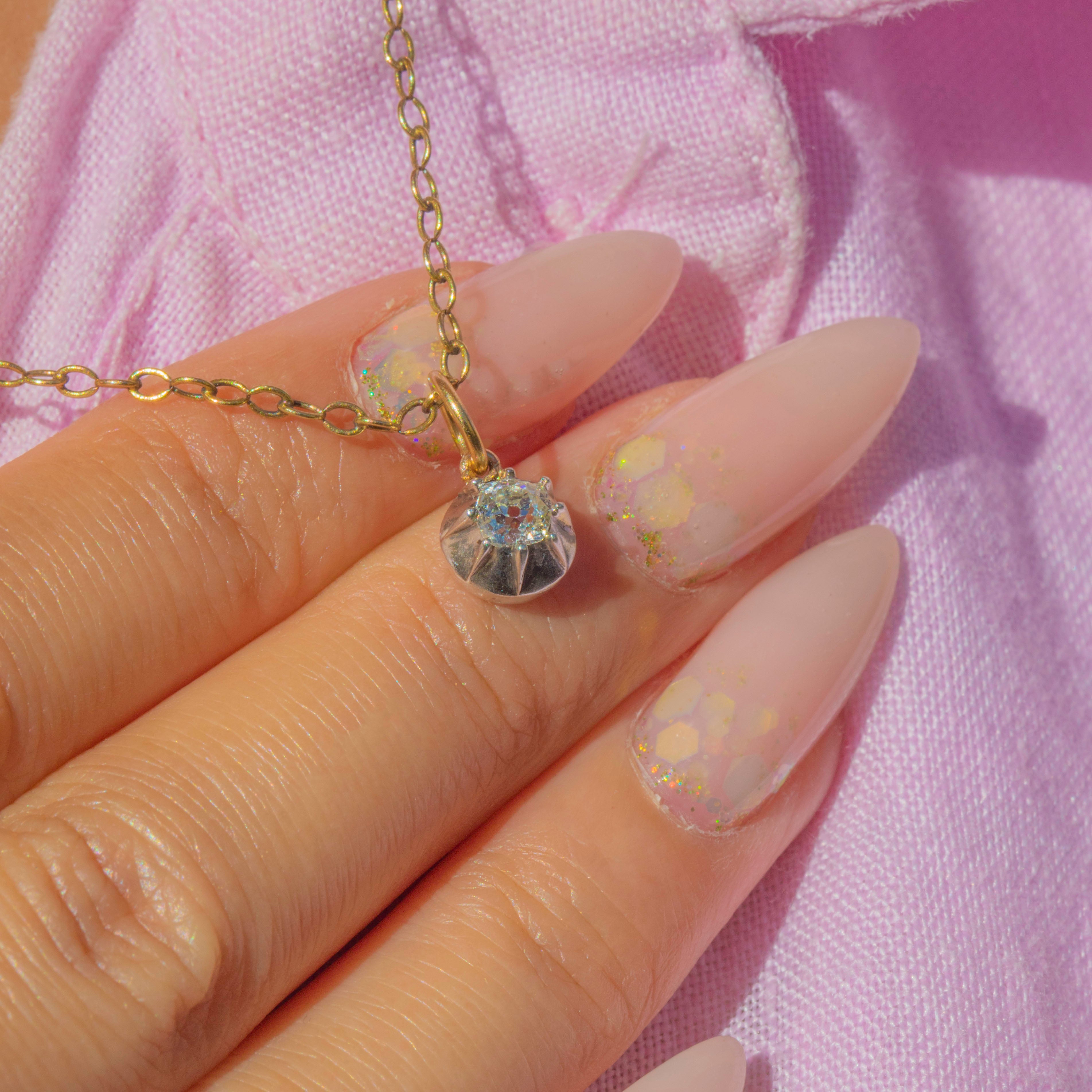 The Diamond is mounted in a traditional Sterling Silver collet backed in 18ct Gold and finished with an 18ct Gold jump ring. A petite yet striking piece, this charm would make a beautiful addition to a bracelet or look elegant worn on a fine antique chain.