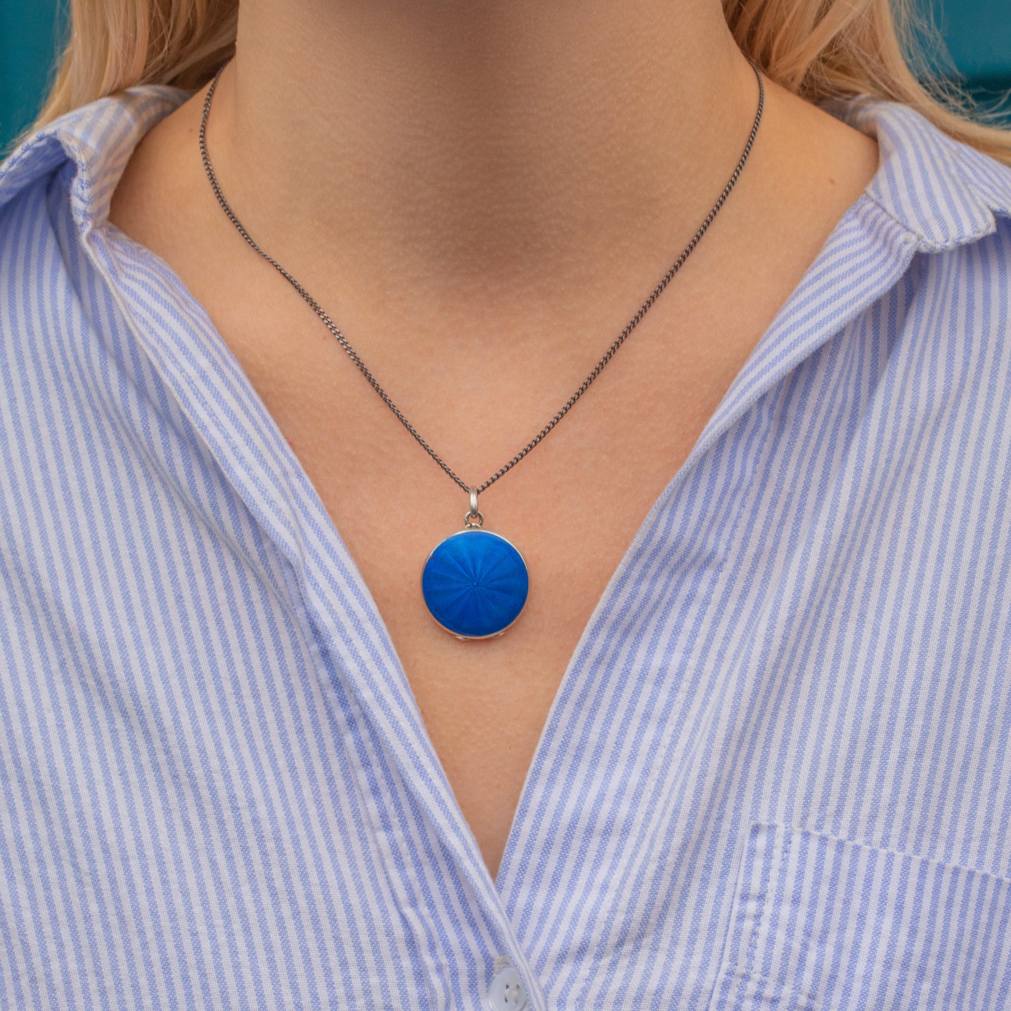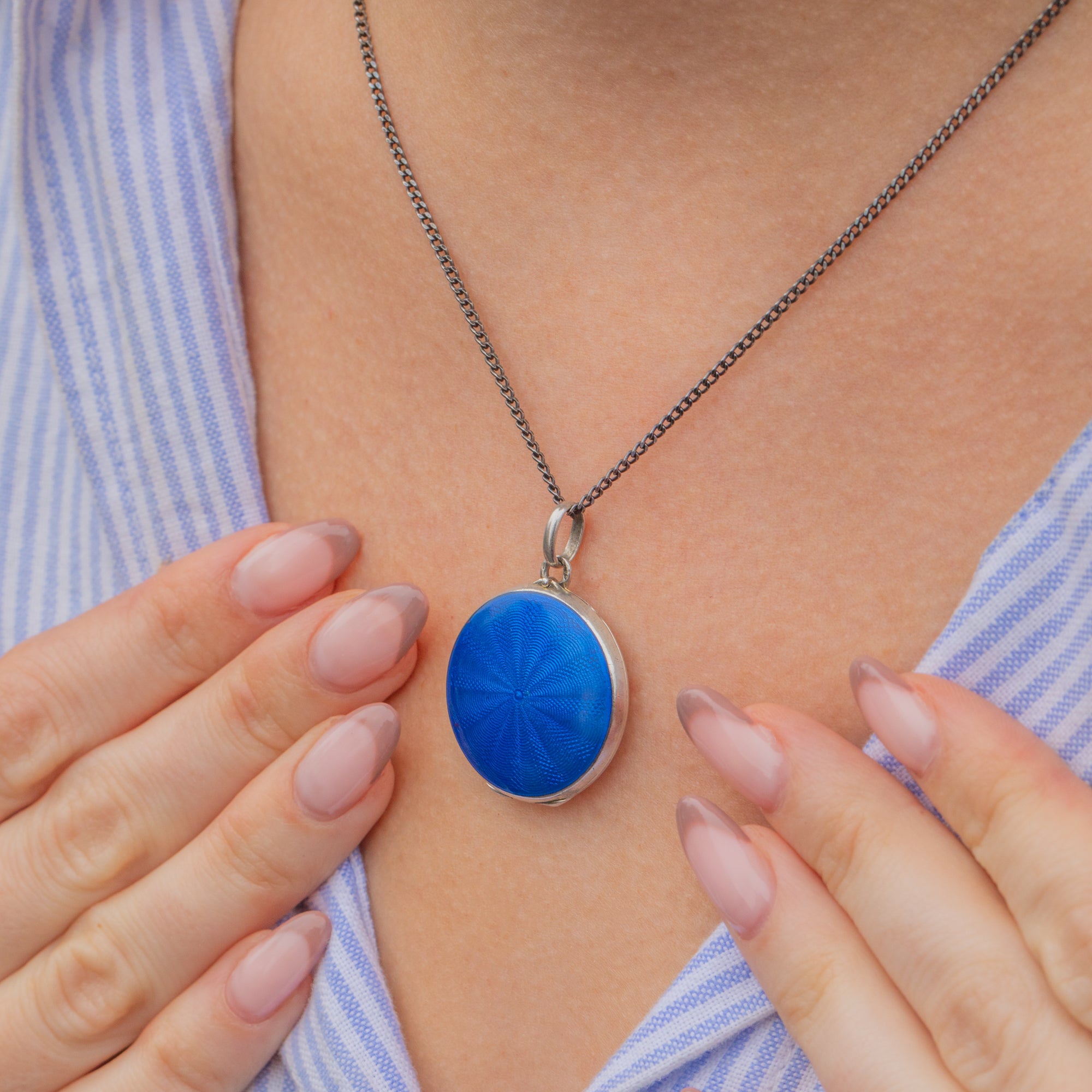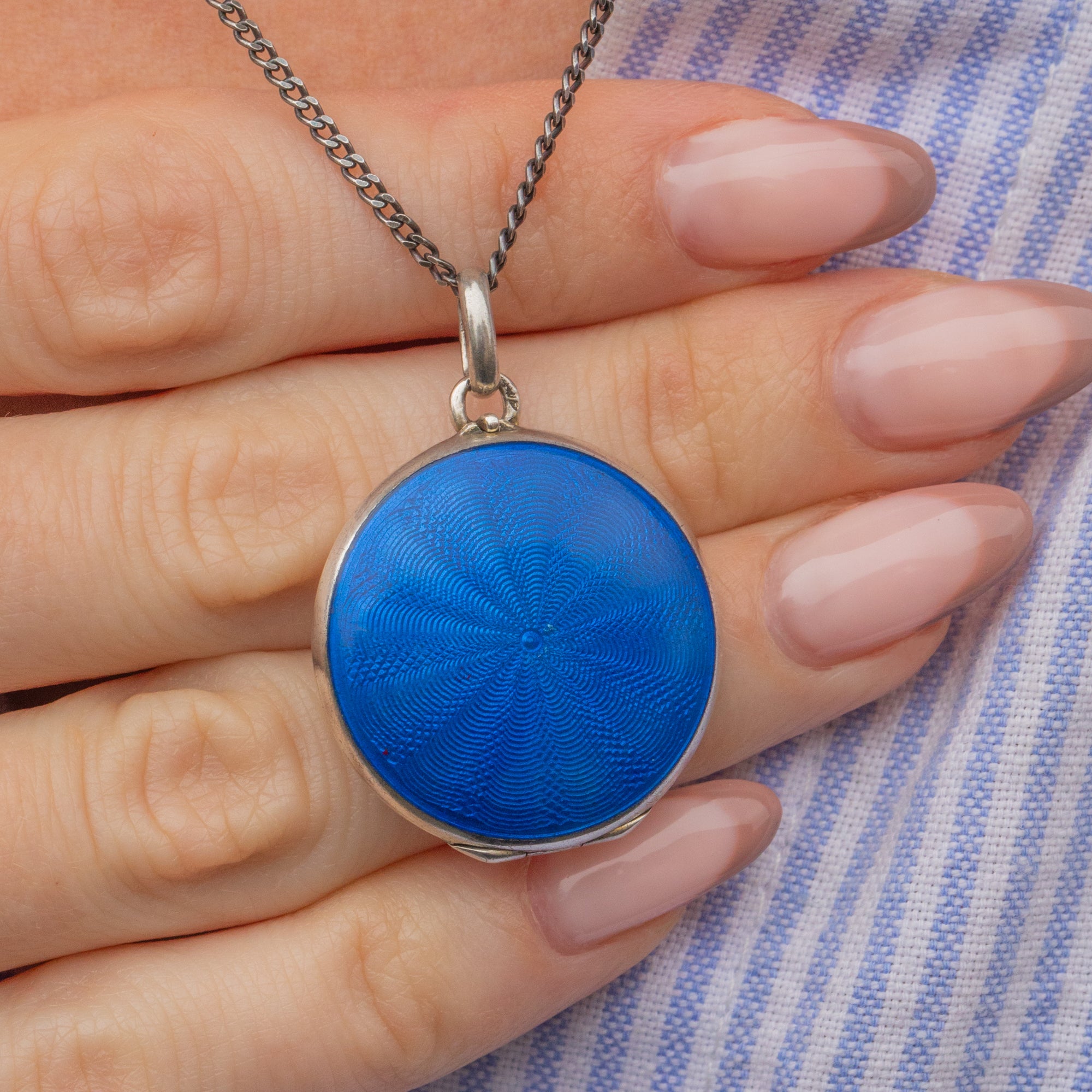 An eye-catching antique Silver Cobalt Blue Guilloche enamel locket to make your collection stand out!