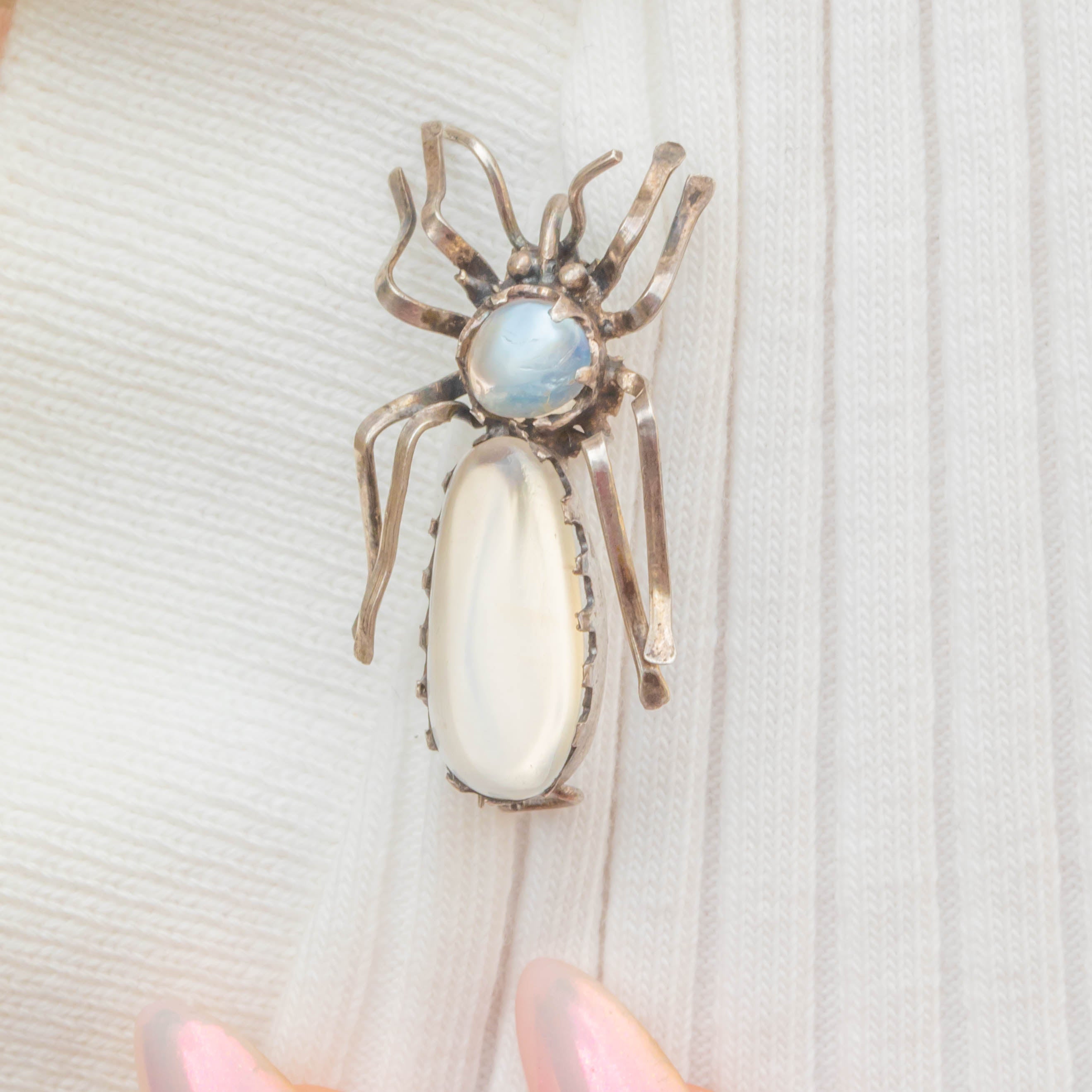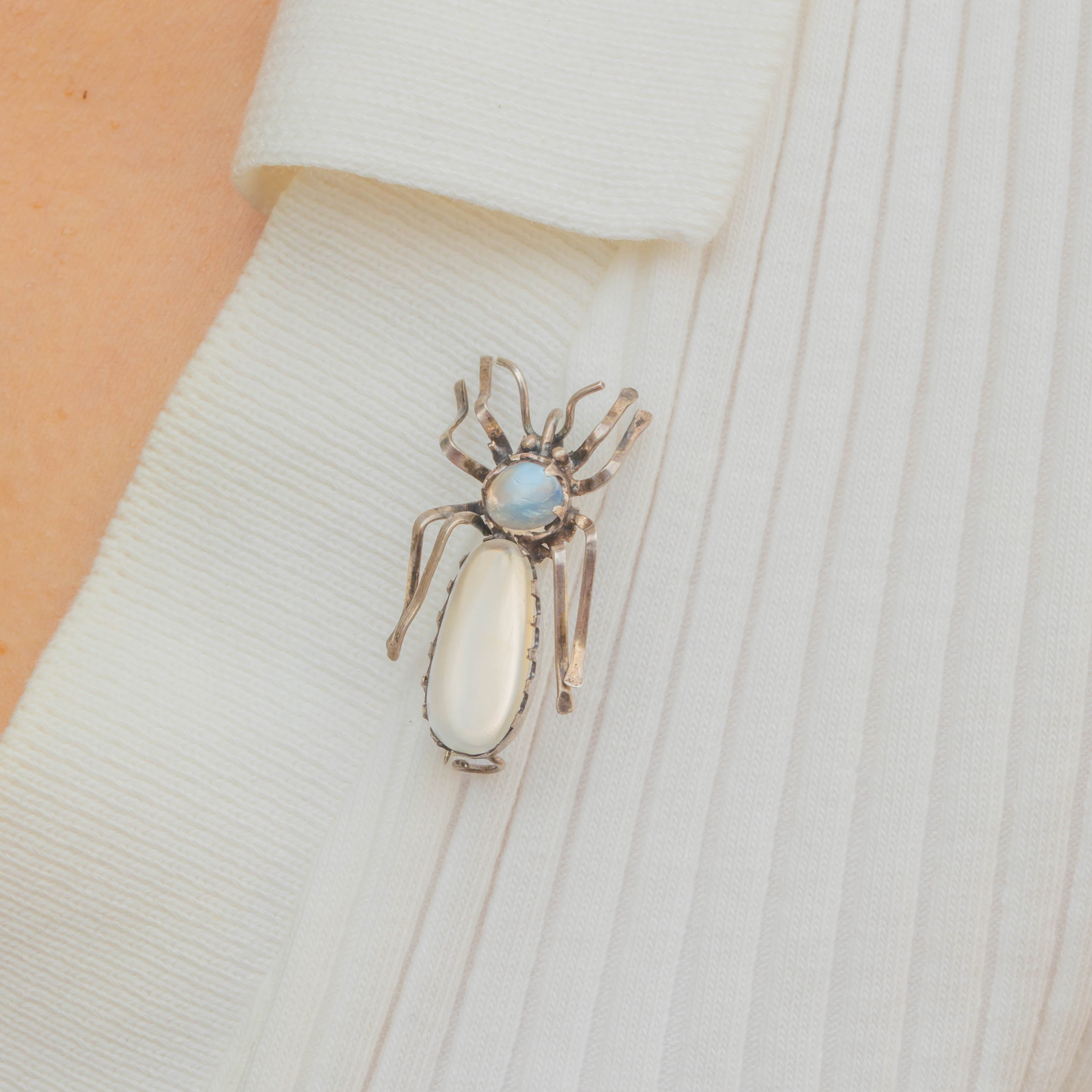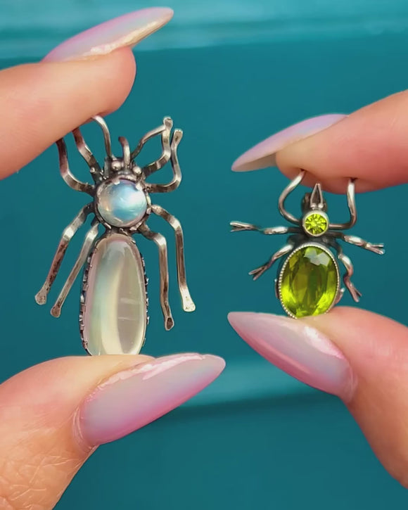 Antique Silver Moonstone Bug Brooch, 3.10ct
